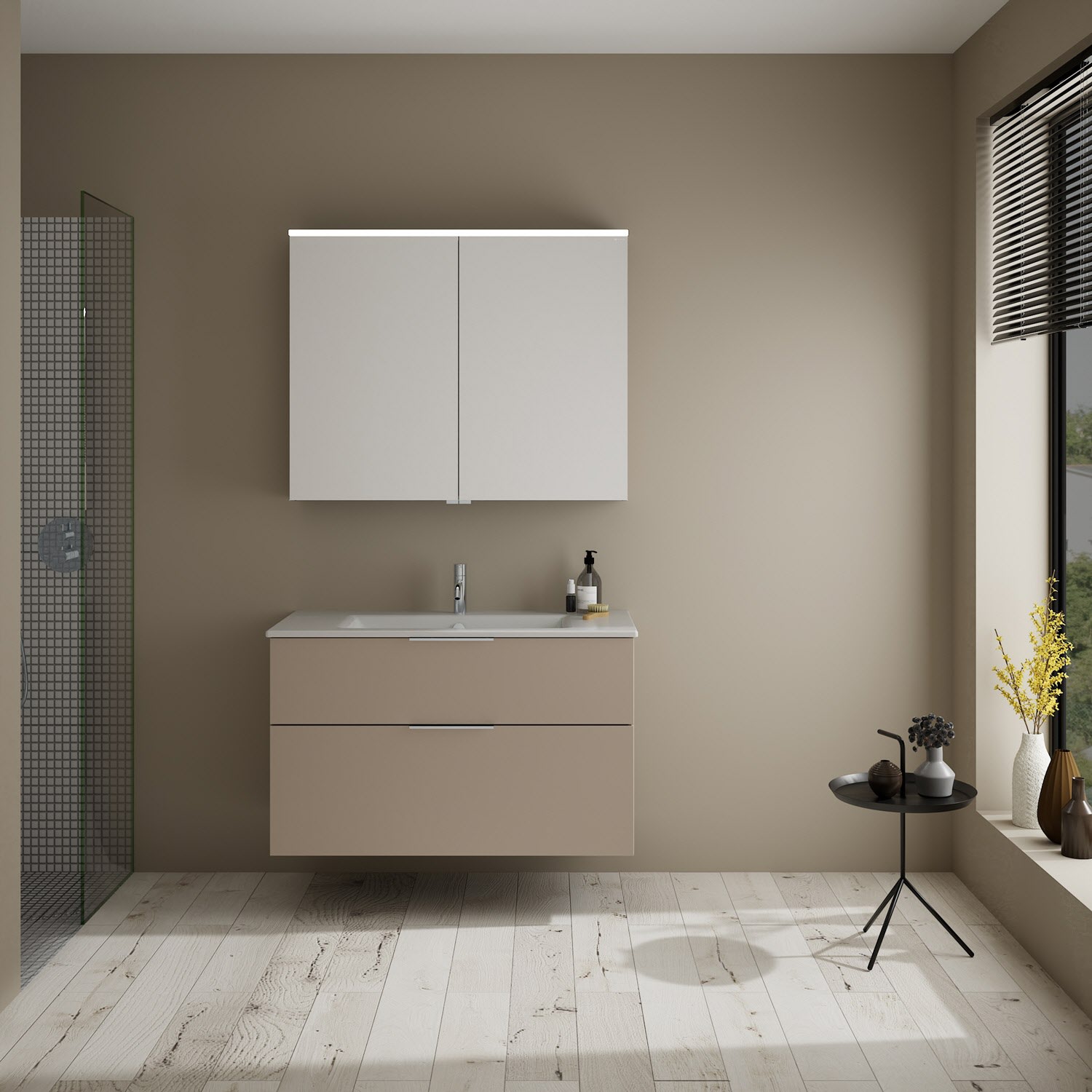 burgbad Eqio Badmöbel-Set 102 cm mit Keramik-Waschtisch Slim und Unterschrank mit Griff G0146, mit Spiegelschrank