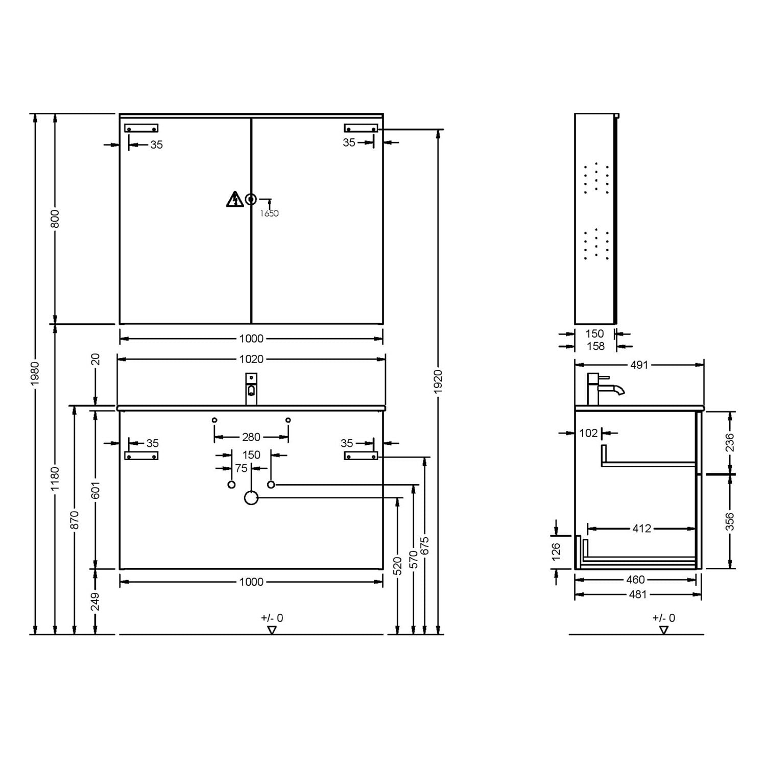 - Spiegelschrank, Waschtischunterschrank, Waschtisch, Befestigung außer Stockschrauben