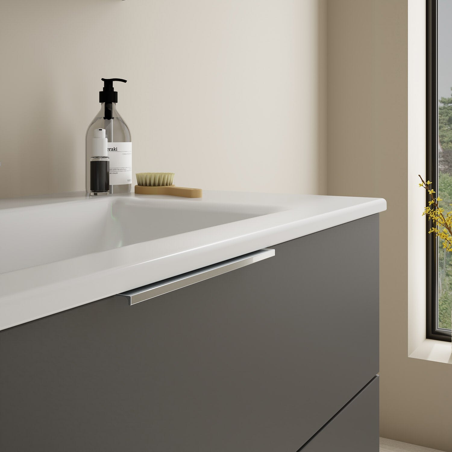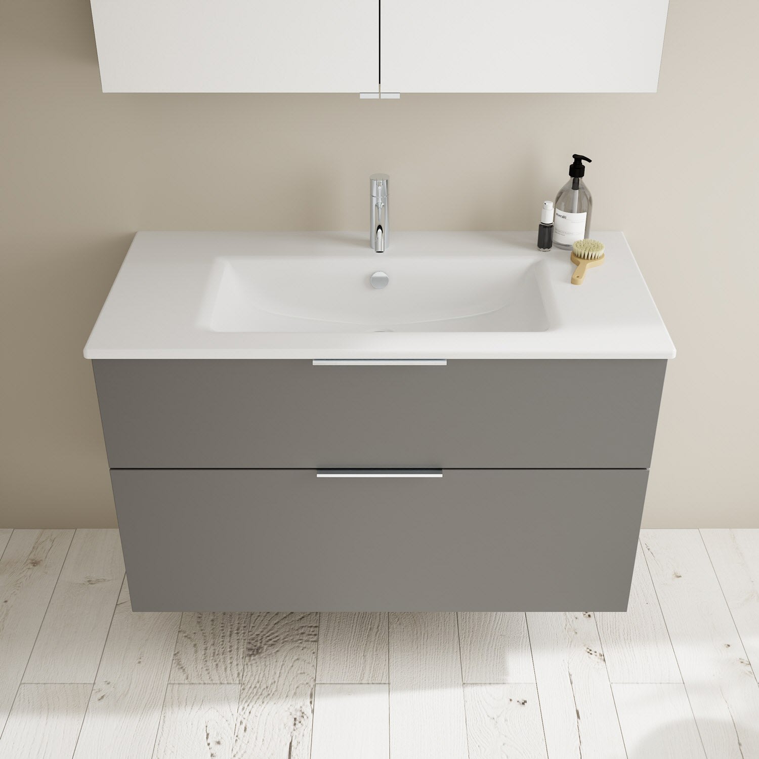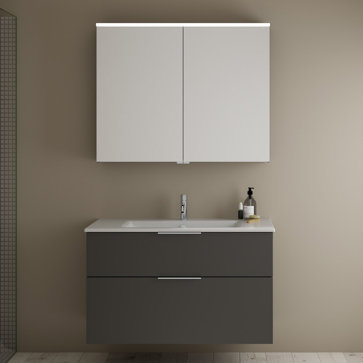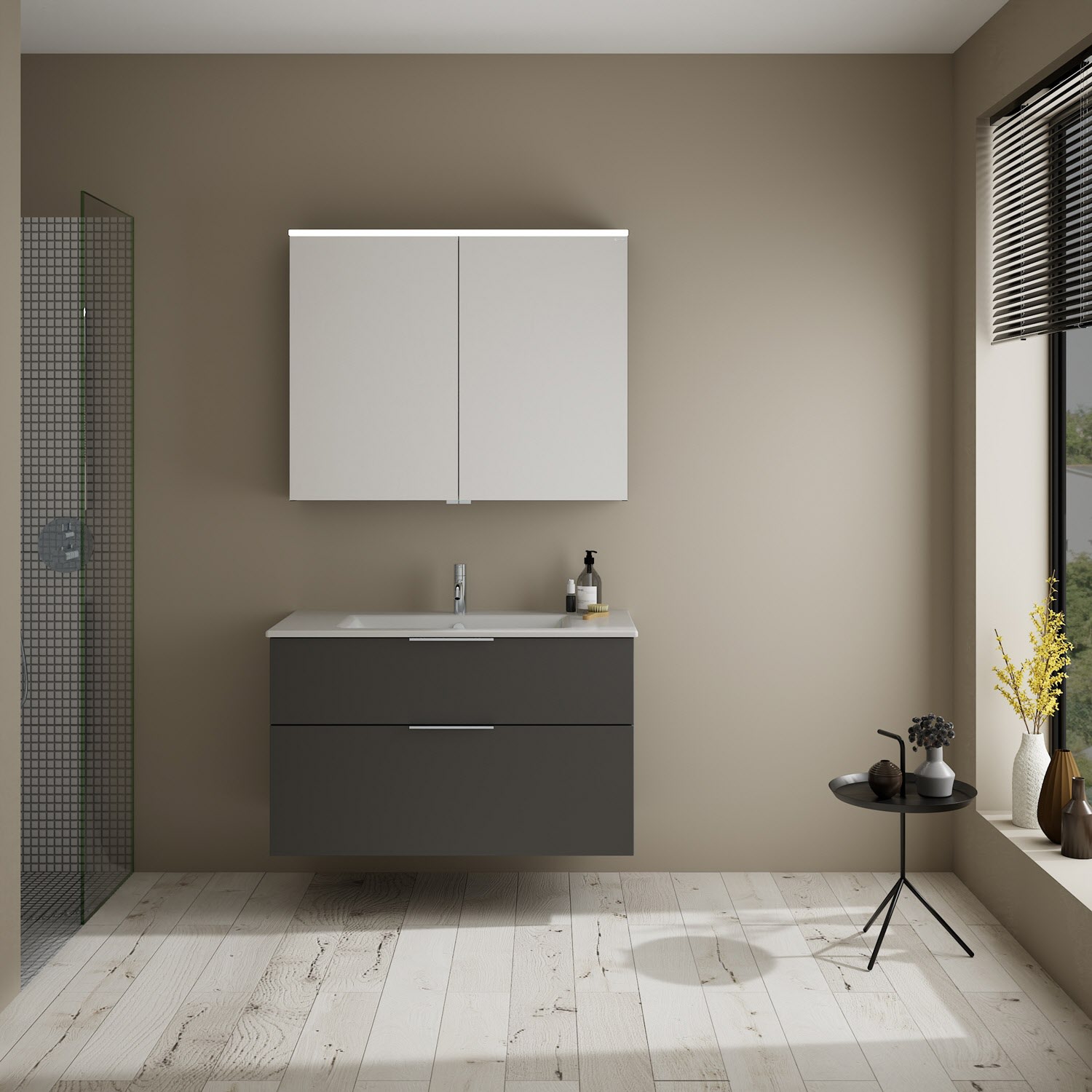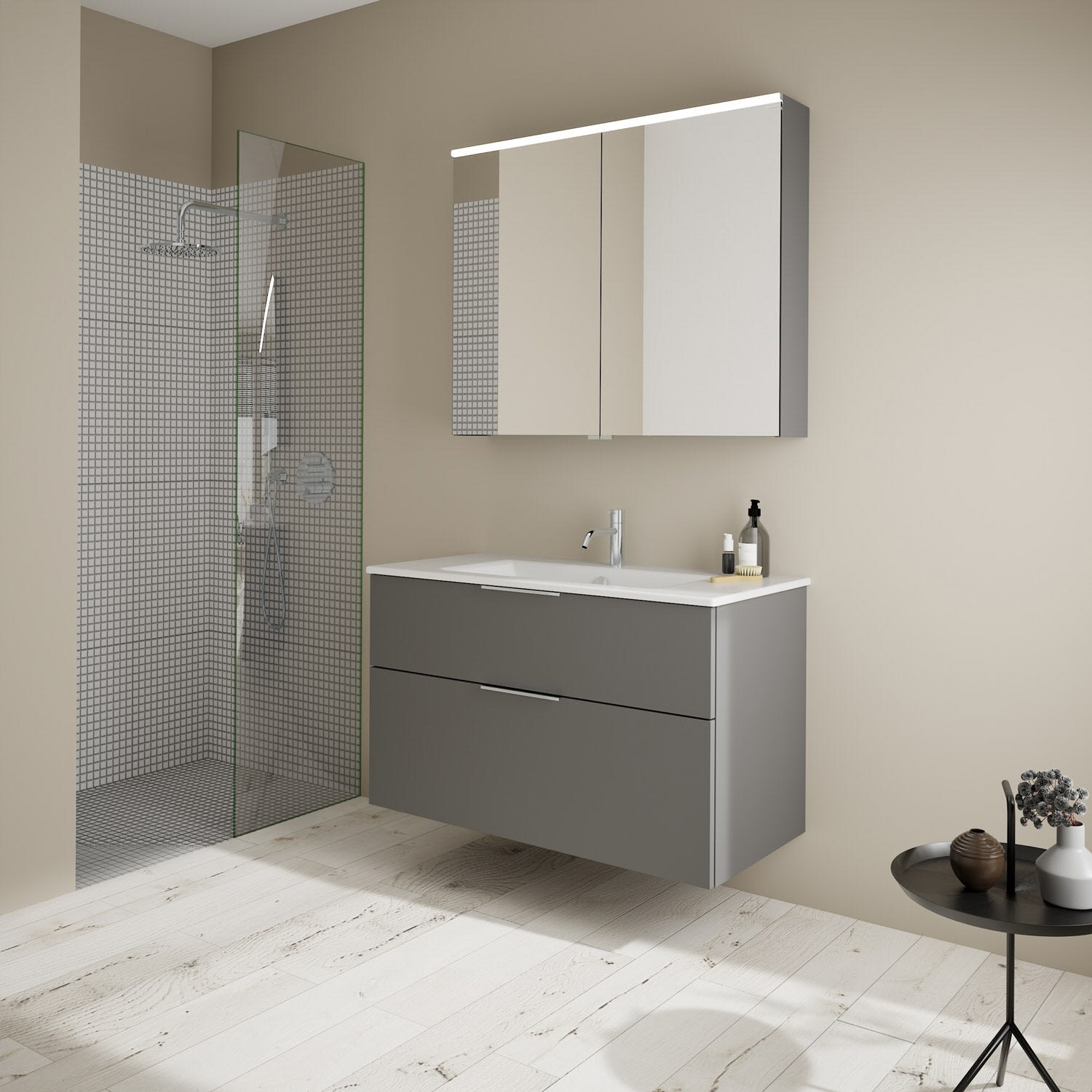 burgbad Eqio Badmöbel-Set 102 cm mit Keramik-Waschtisch Slim und Unterschrank mit Griff G0146, mit Spiegelschrank