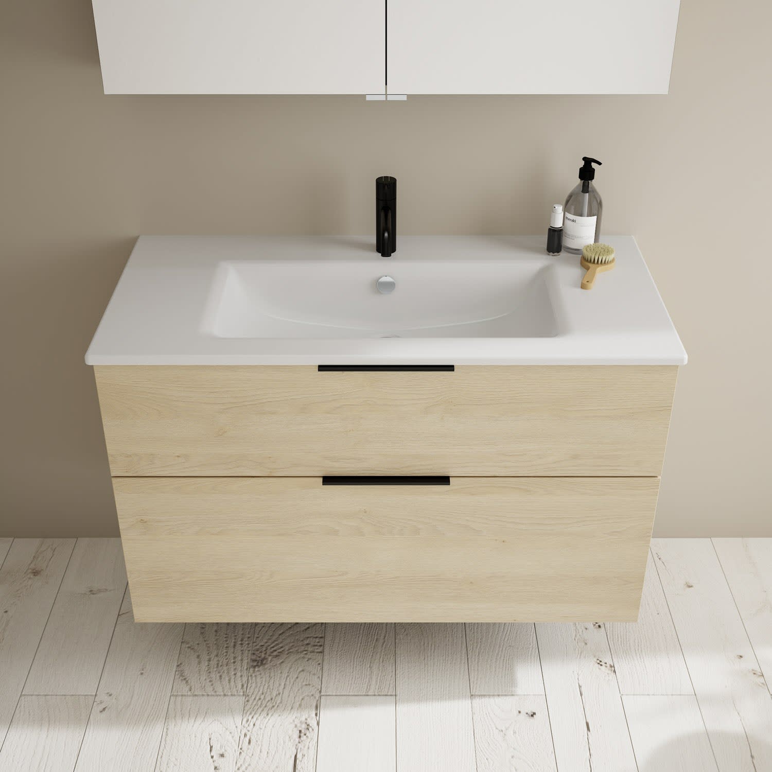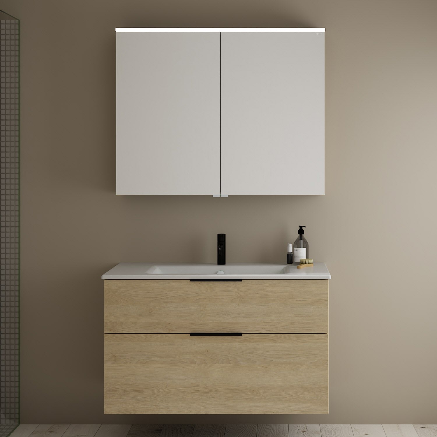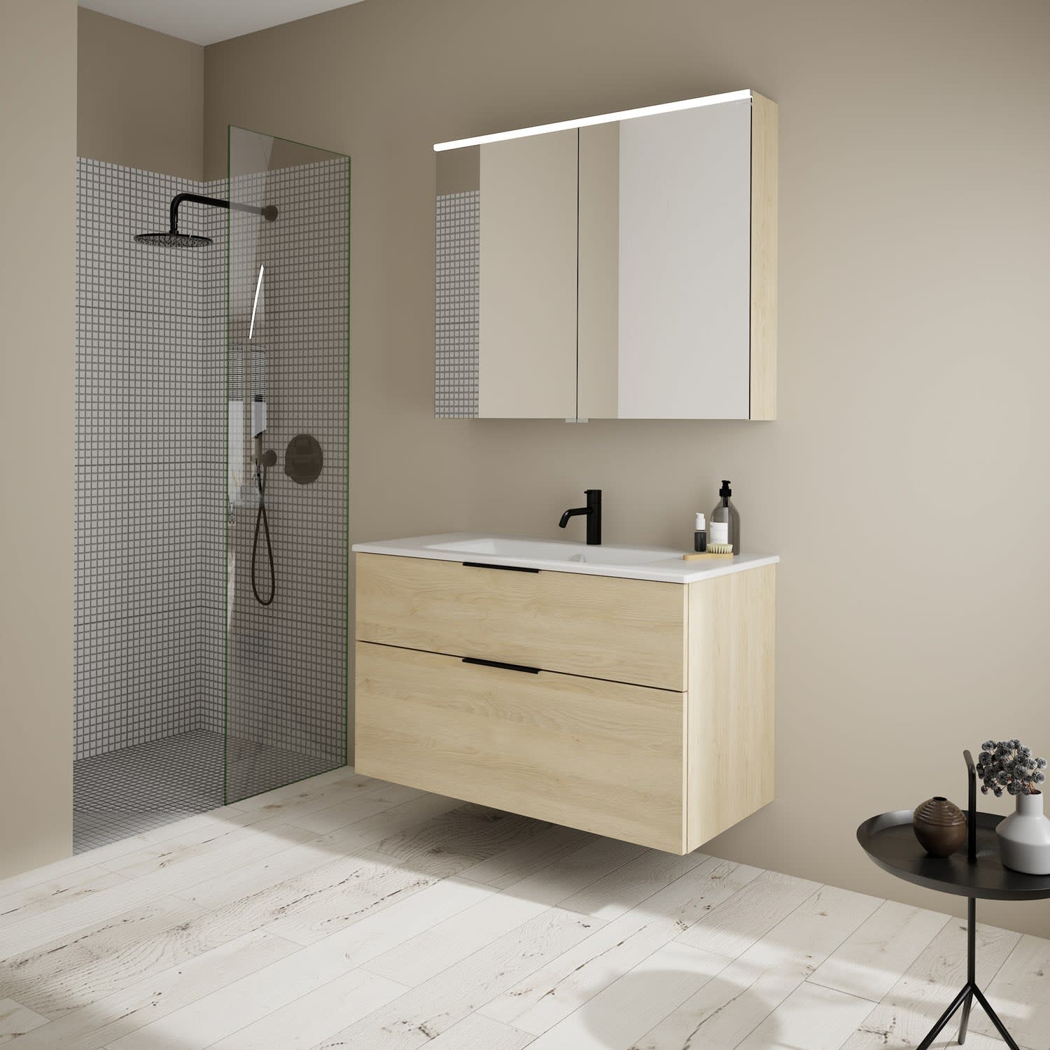 burgbad Eqio Badmöbel-Set 102 cm mit Keramik-Waschtisch Slim und Unterschrank mit Griff G0200, mit Spiegelschrank