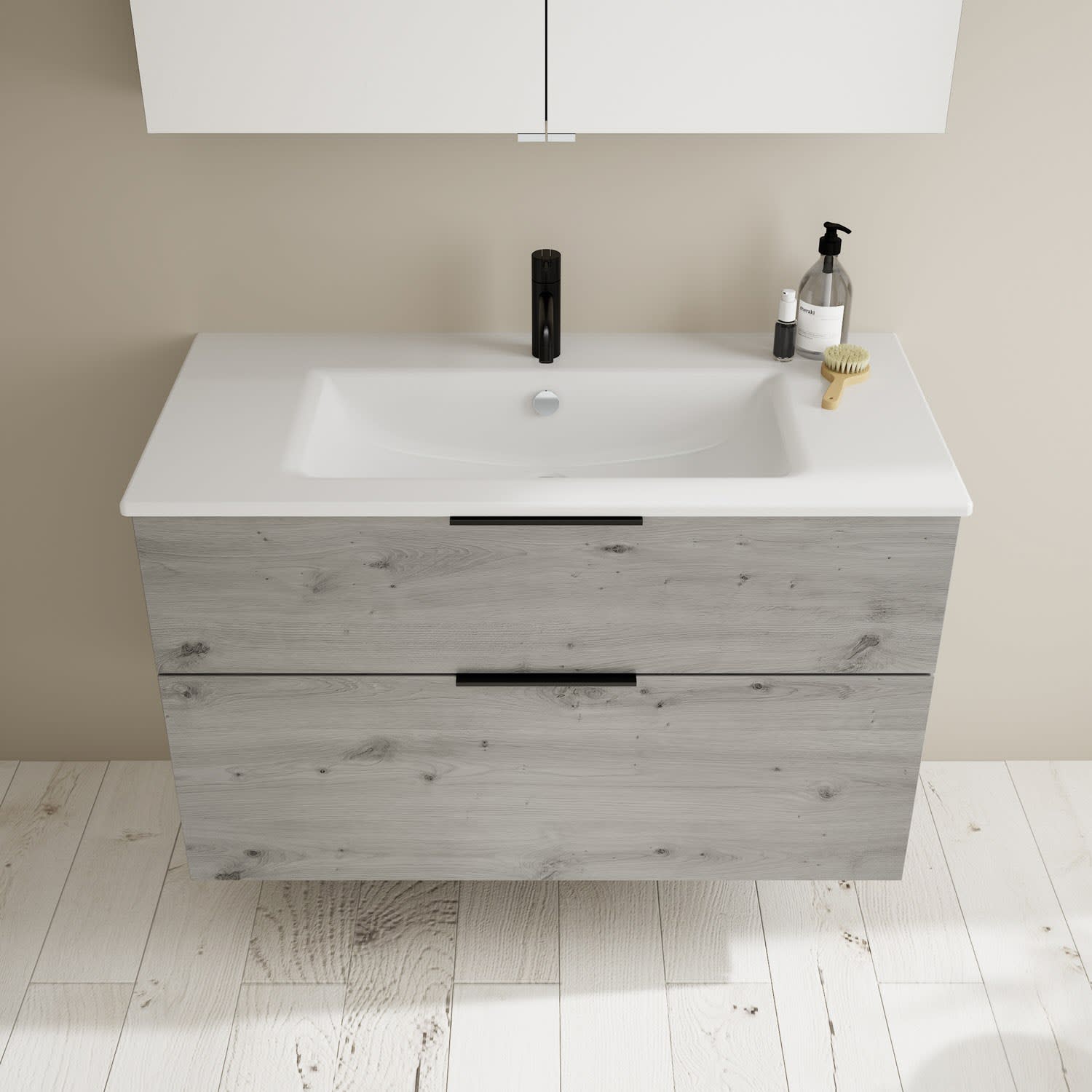 - Spiegelschrank, Waschtischunterschrank, Waschtisch, Befestigung außer Stockschrauben