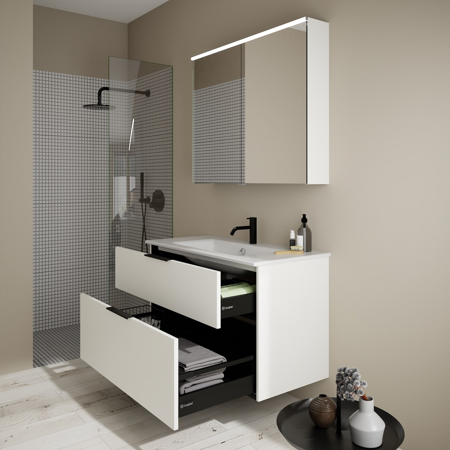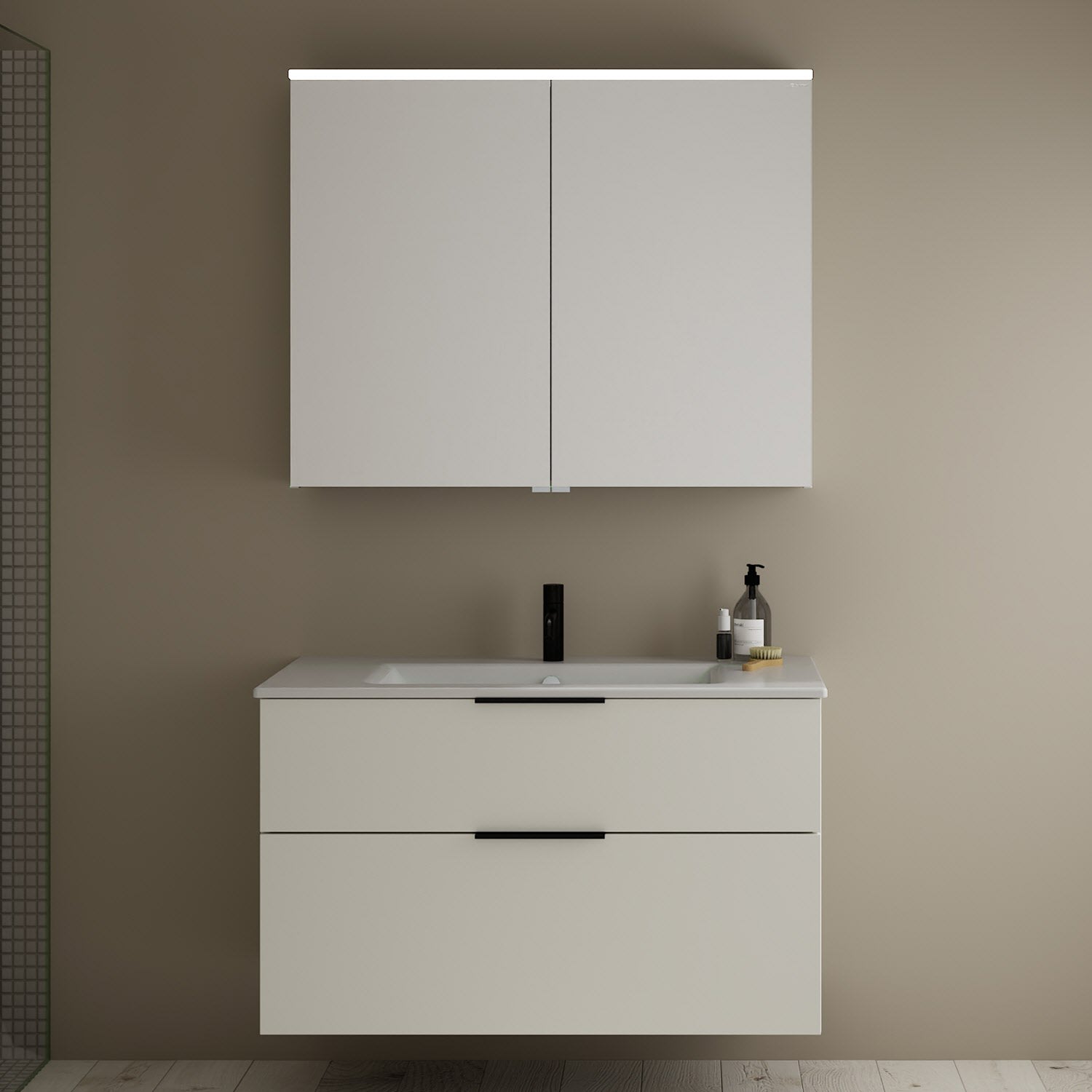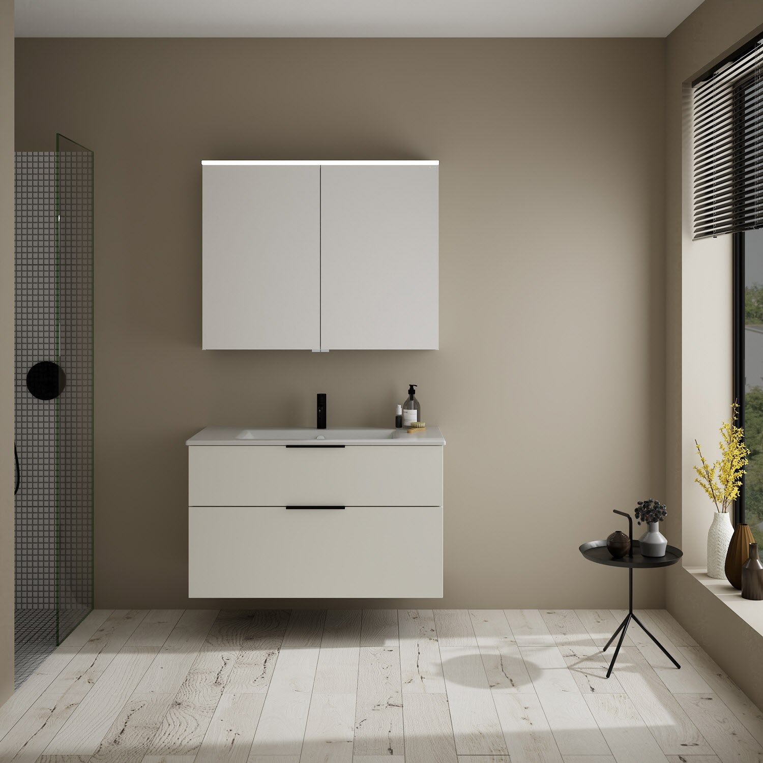 burgbad Eqio Badmöbel-Set 102 cm mit Keramik-Waschtisch Slim und Unterschrank mit Griff G0200, mit Spiegelschrank