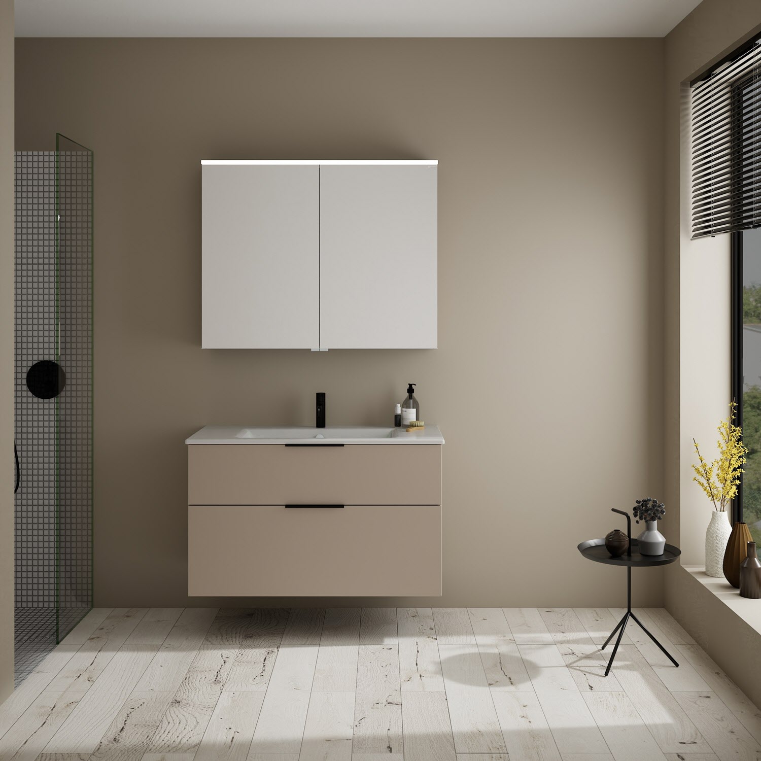 burgbad Eqio Badmöbel-Set 102 cm mit Keramik-Waschtisch Slim und Unterschrank mit Griff G0200, mit Spiegelschrank