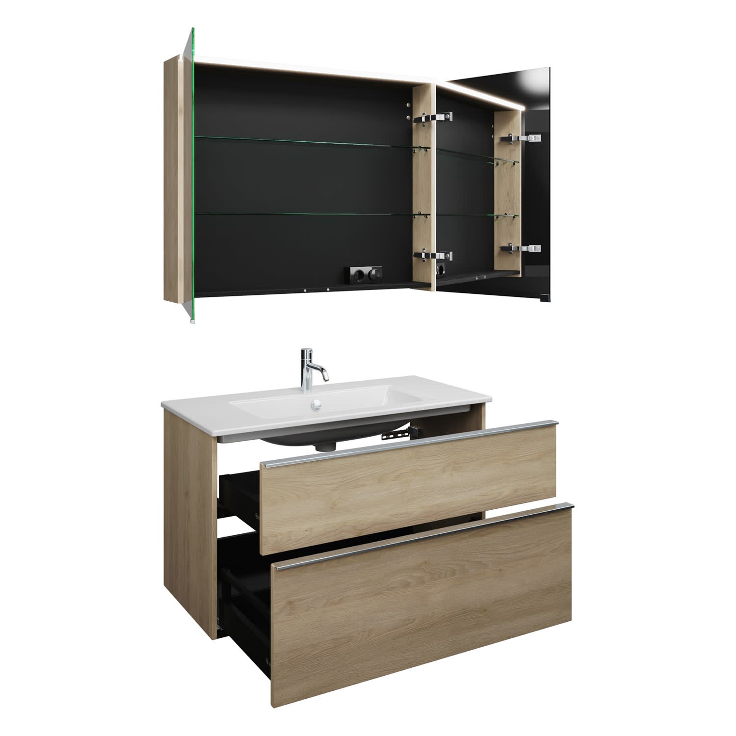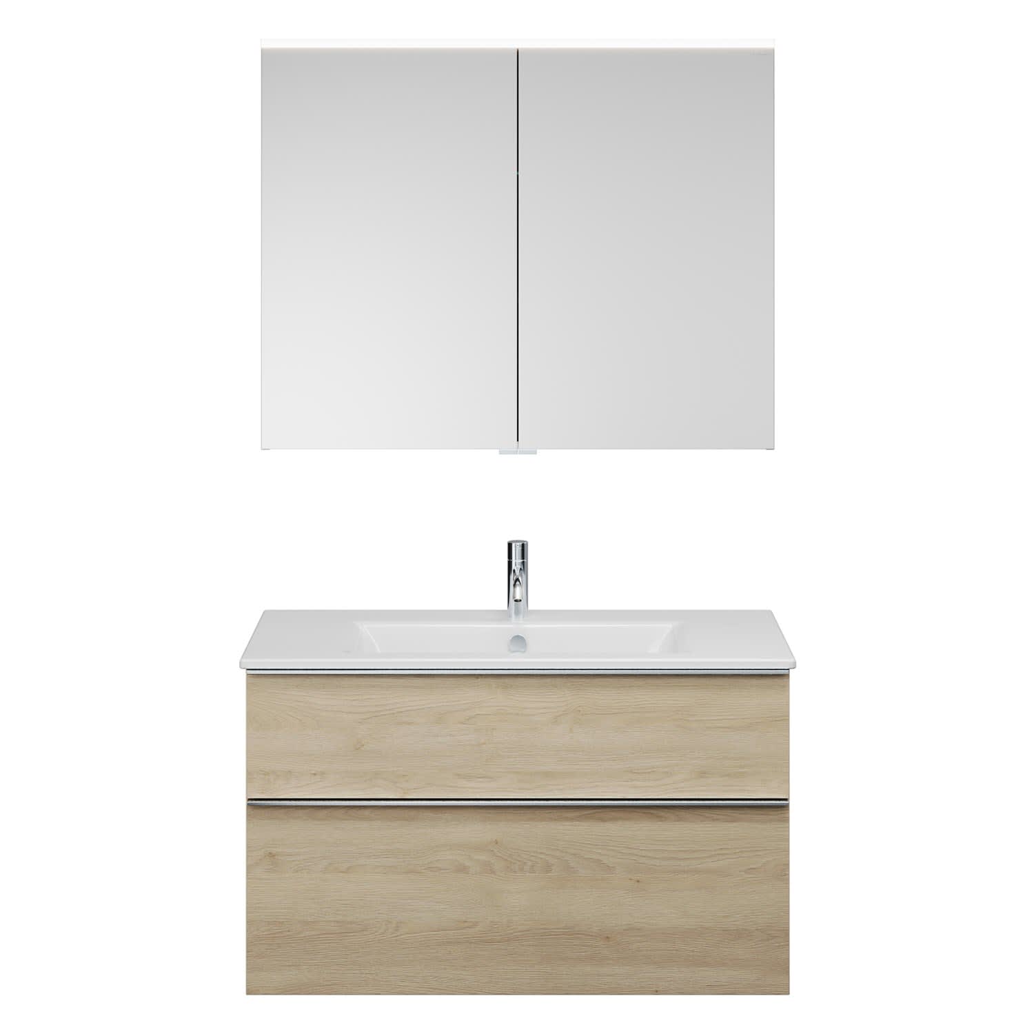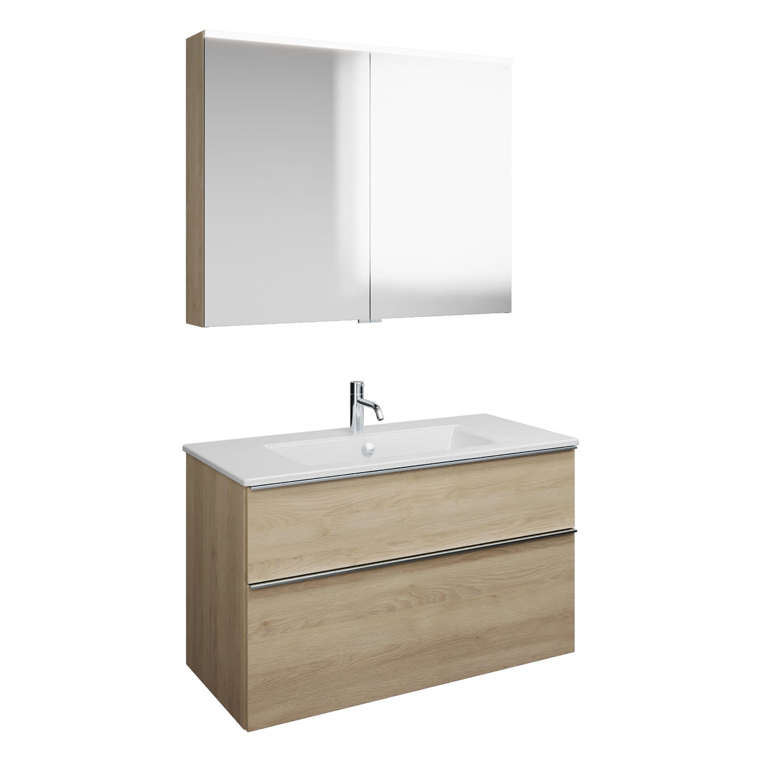 burgbad Eqio Badmöbel-Set 102 cm mit Keramik-Waschtisch Slim und Unterschrank mit Griffleiste G0251, mit Spiegelschrank