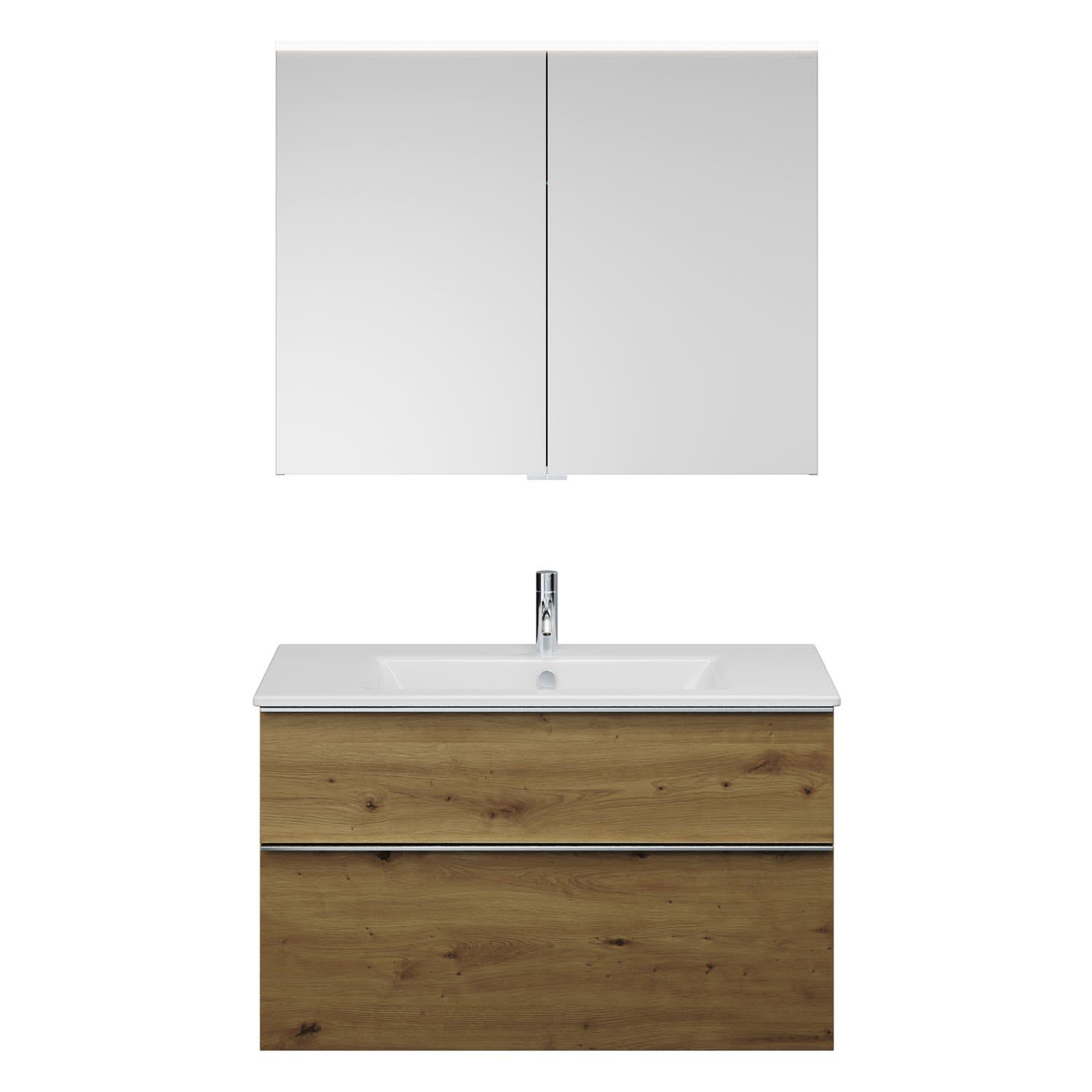 burgbad Eqio Badmöbel-Set 102 cm mit Keramik-Waschtisch Slim und Unterschrank mit Griffleiste G0251, mit Spiegelschrank