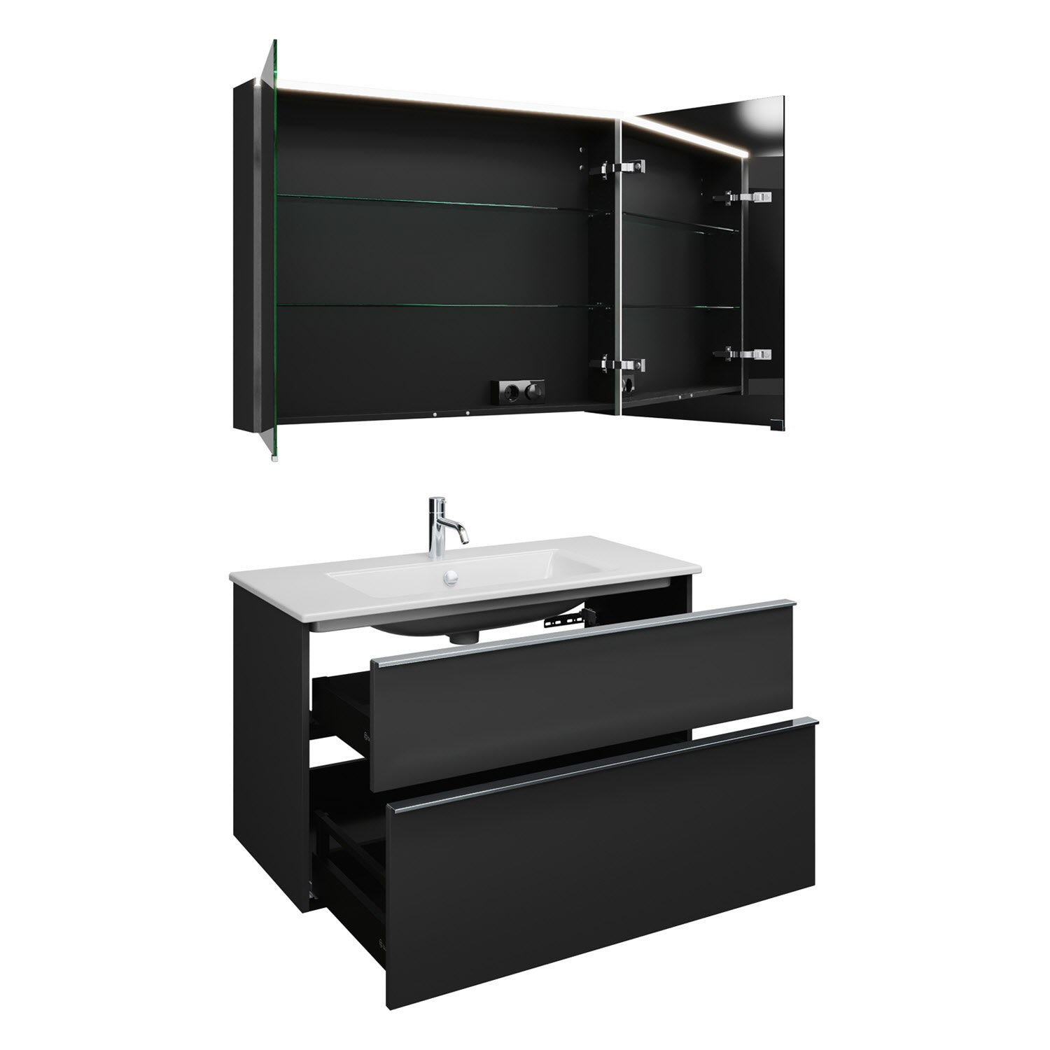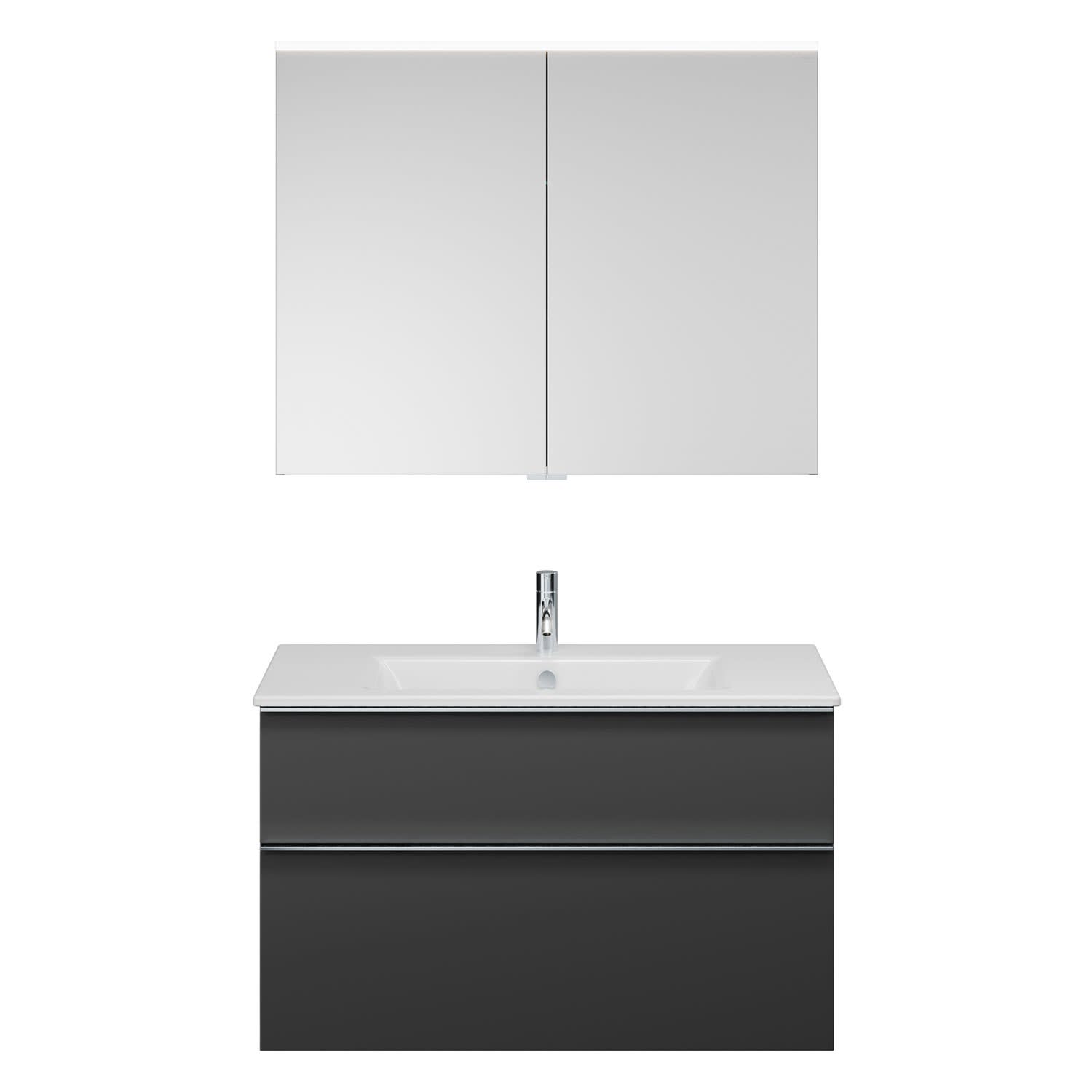 burgbad Eqio Badmöbel-Set 102 cm mit Keramik-Waschtisch Slim und Unterschrank mit Griffleiste G0251, mit Spiegelschrank