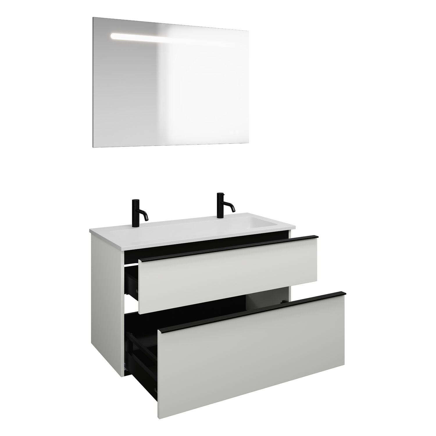 burgbad Eqio Badmöbel Set 102 cm Waschtisch und Unterschrank mit Griff G0252, mit LED-Leuchtspiegel