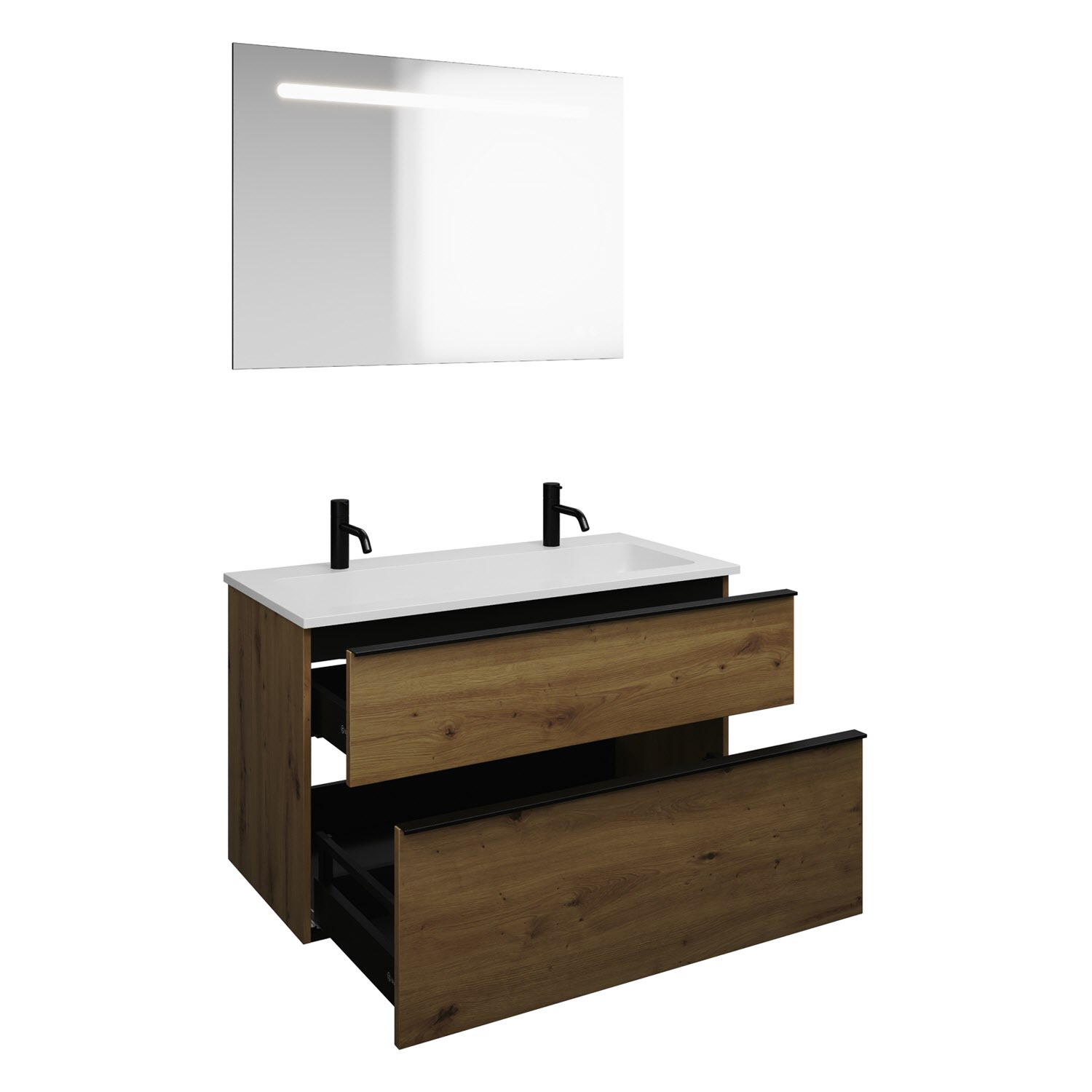 burgbad Eqio Badmöbel Set 102 cm Waschtisch und Unterschrank mit Griff G0252, mit LED-Leuchtspiegel
