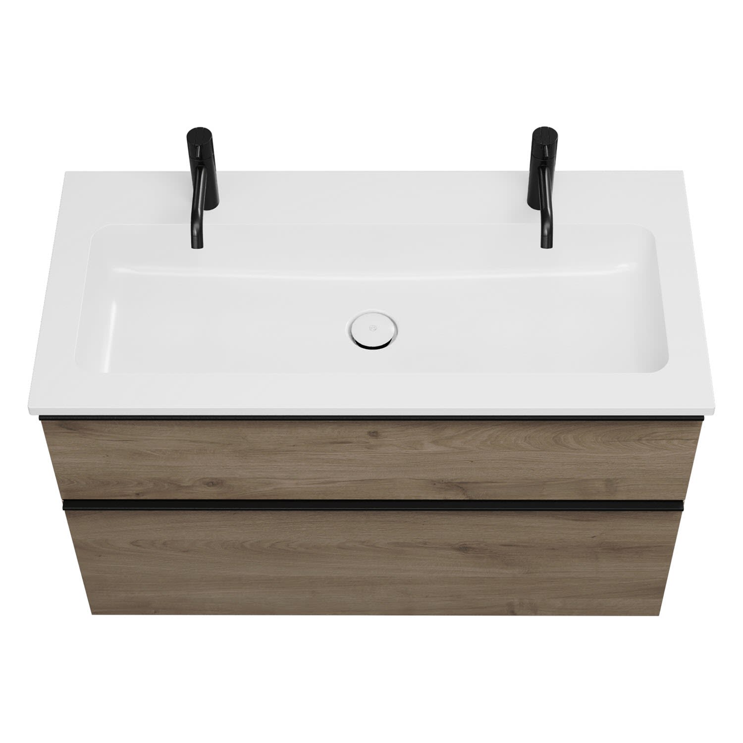 - 1 Schublade oben, 35 cm tief, mit Siphonausschnitt und Inneneinteilung