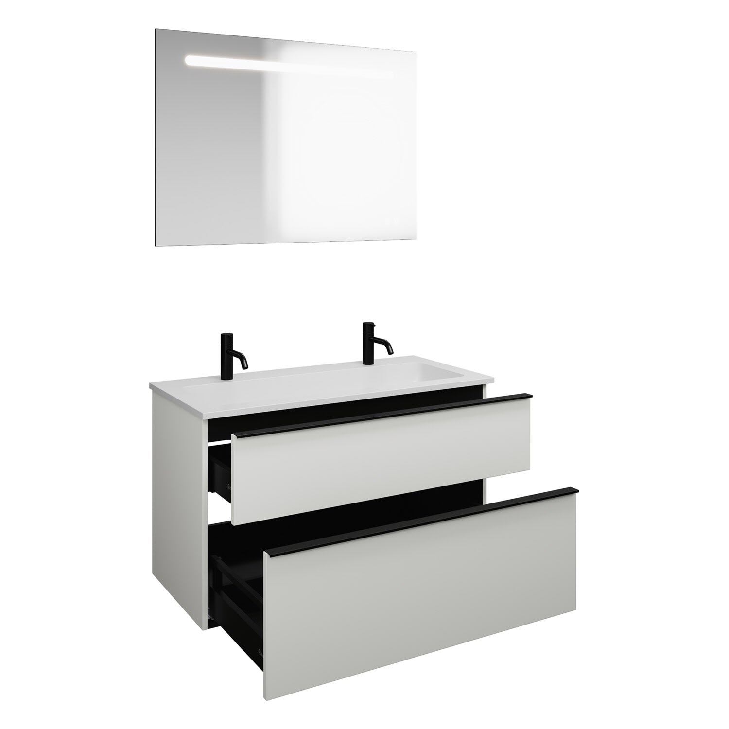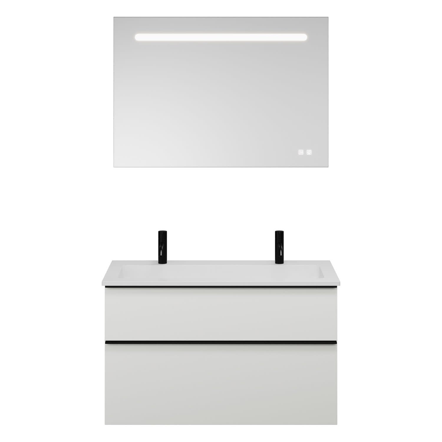 burgbad Eqio Badmöbel Set 102 cm Waschtisch und Unterschrank mit Griff G0252, mit LED-Leuchtspiegel