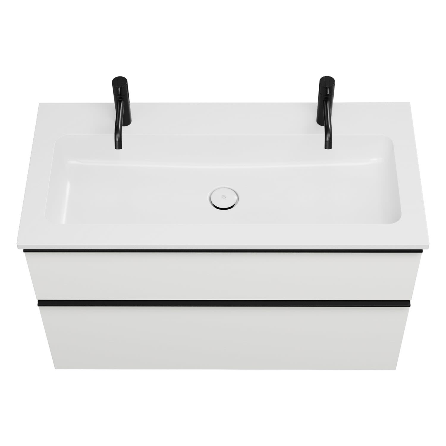 - 1 Schublade oben, 35 cm tief, mit Siphonausschnitt und Inneneinteilung