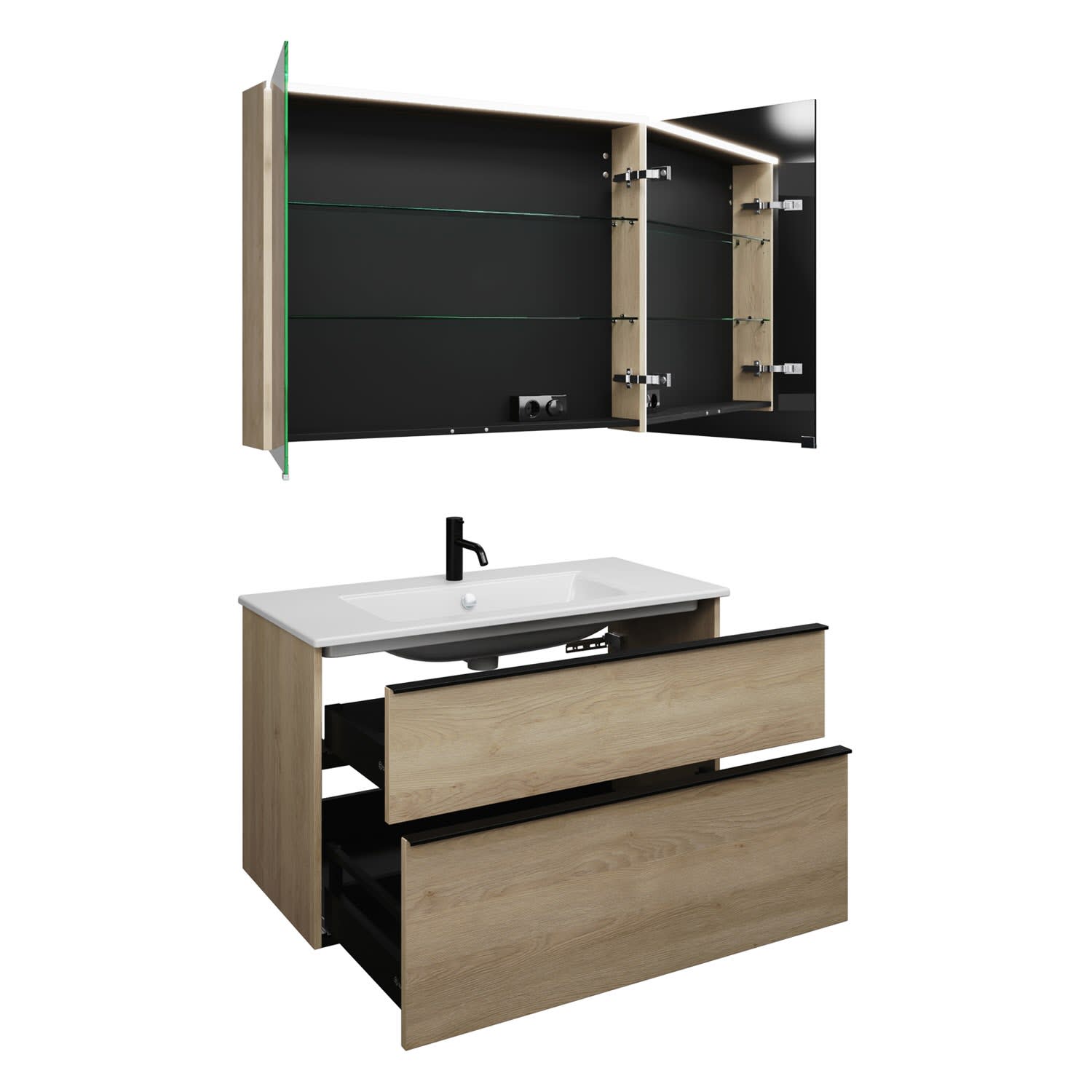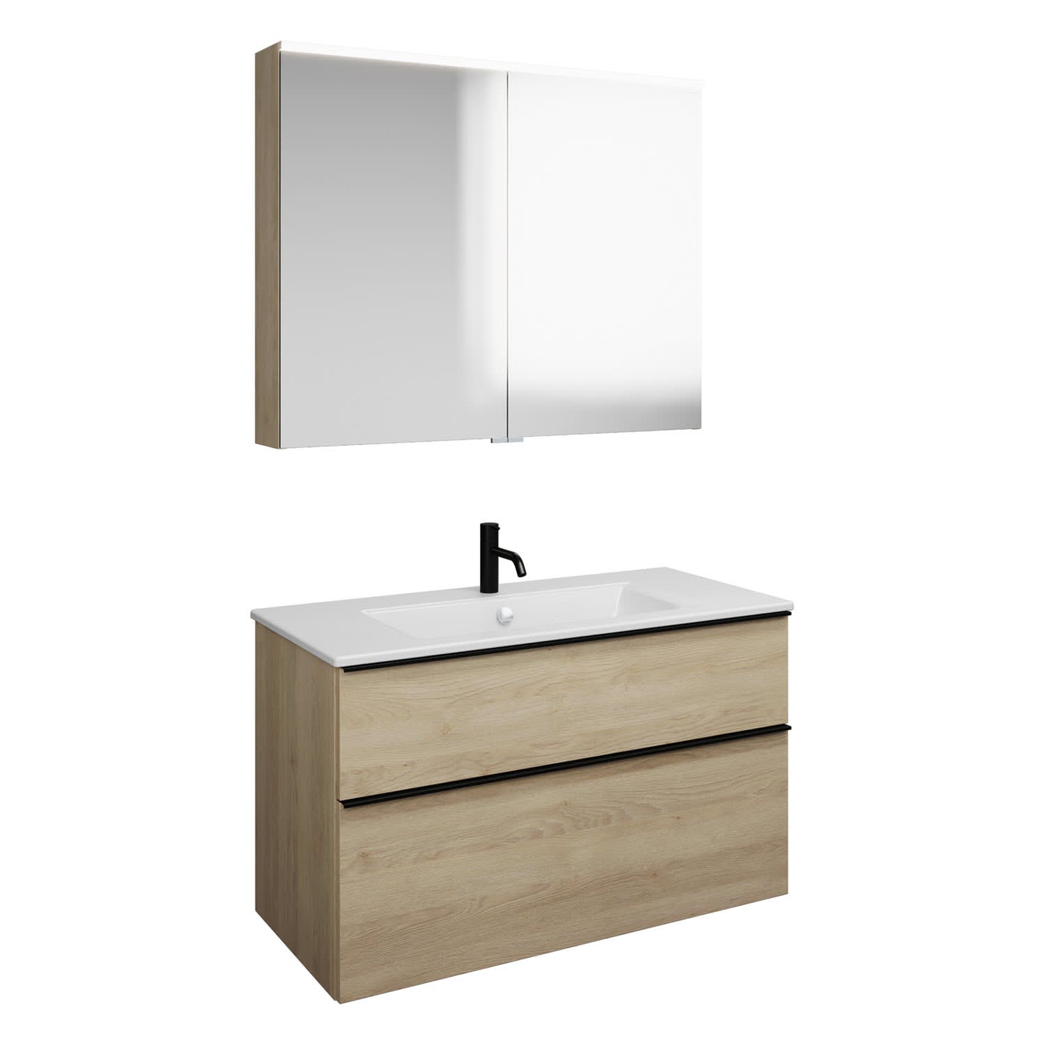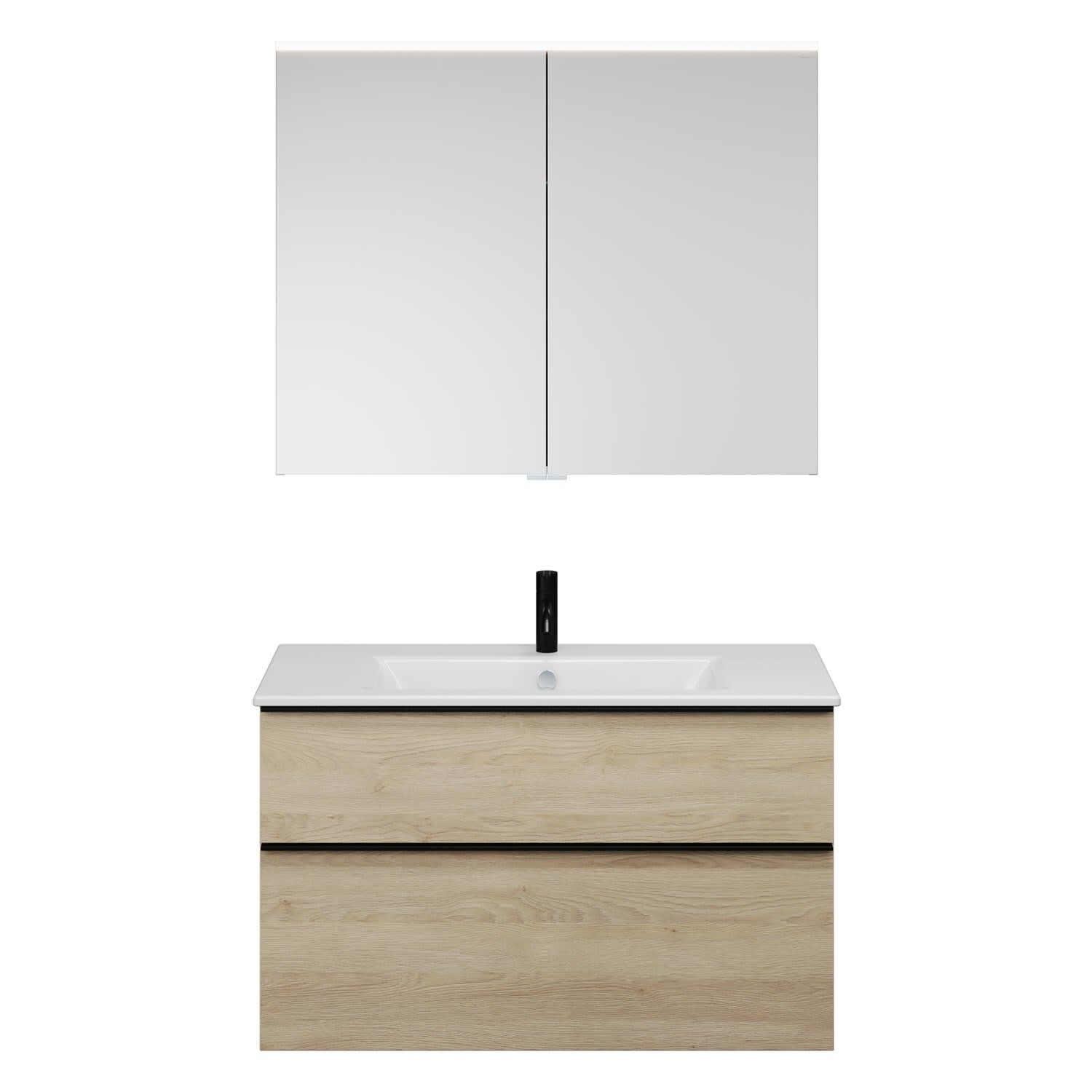 burgbad Eqio Badmöbel-Set 102 cm mit Keramik-Waschtisch Slim und Unterschrank mit Griffleiste G0252, mit Spiegelschrank