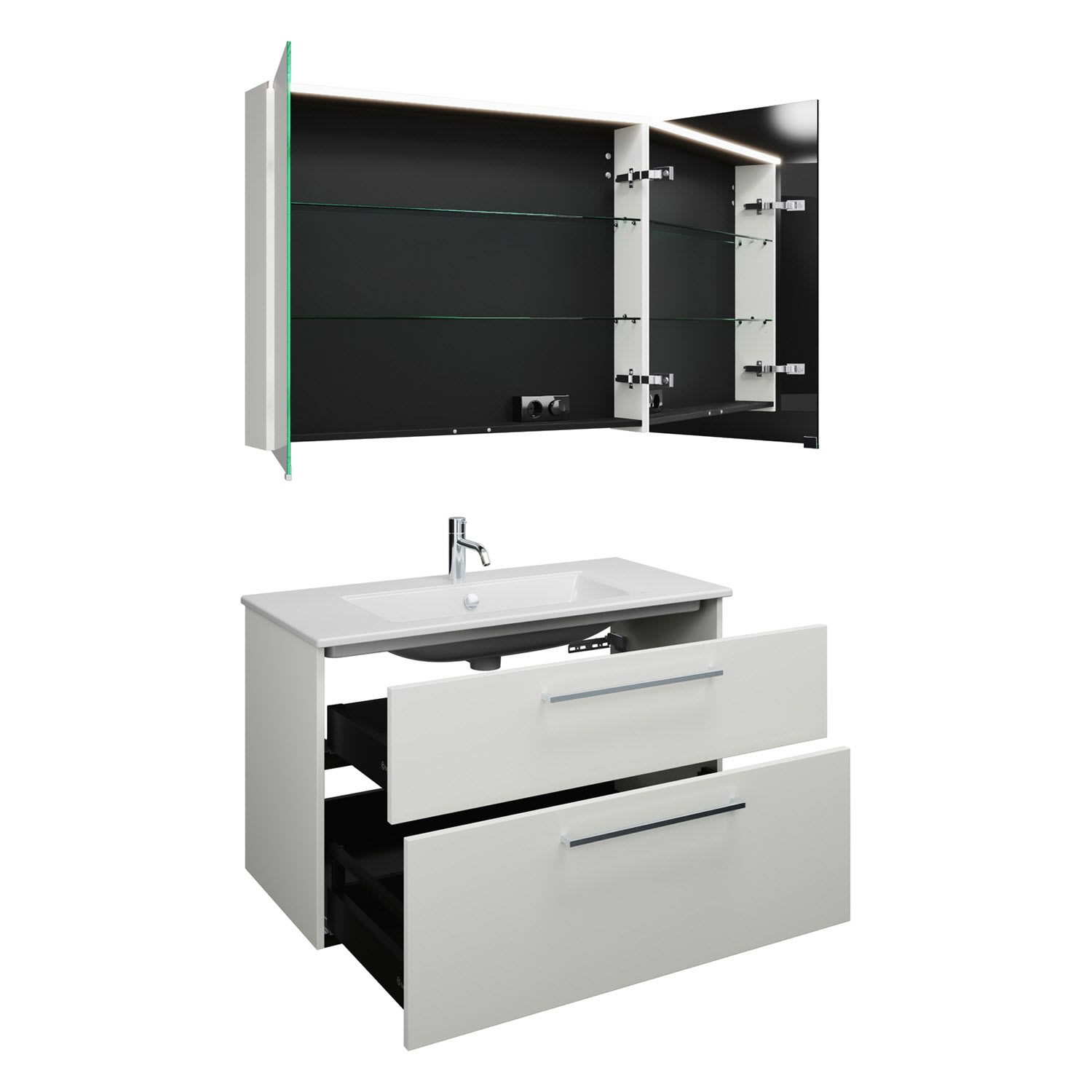 burgbad Eqio Badmöbel-Set 102 cm mit Keramik-Waschtisch Slim und Unterschrank mit Stangengriff P95, mit Spiegelschrank