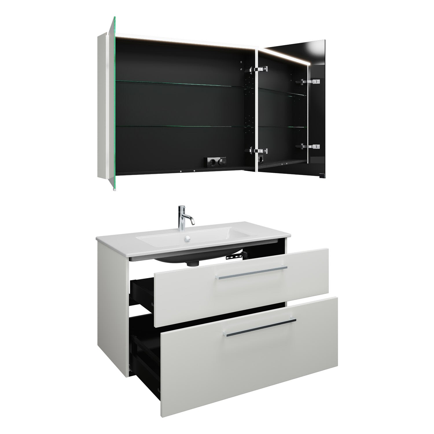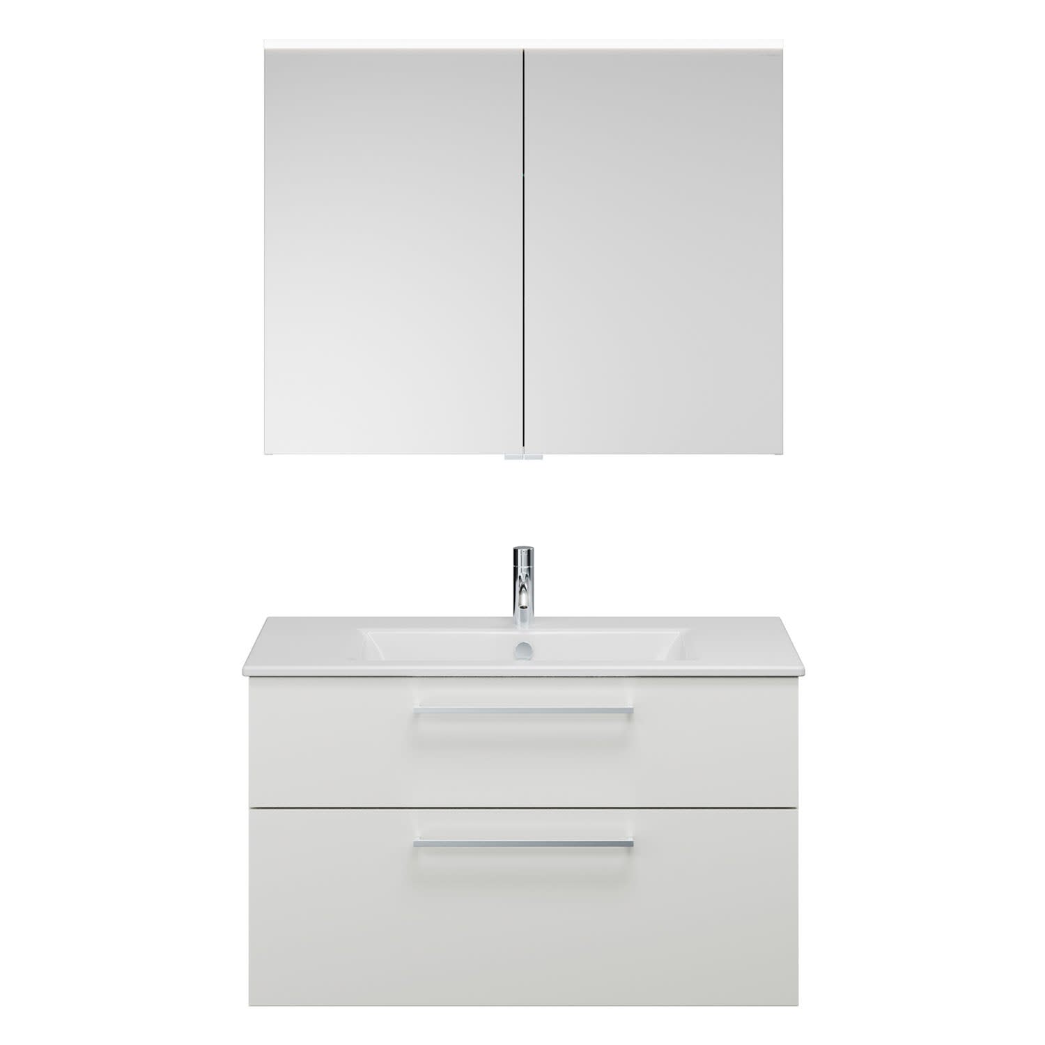 burgbad Eqio Badmöbel-Set 102 cm mit Keramik-Waschtisch Slim und Unterschrank mit Stangengriff P95, mit Spiegelschrank