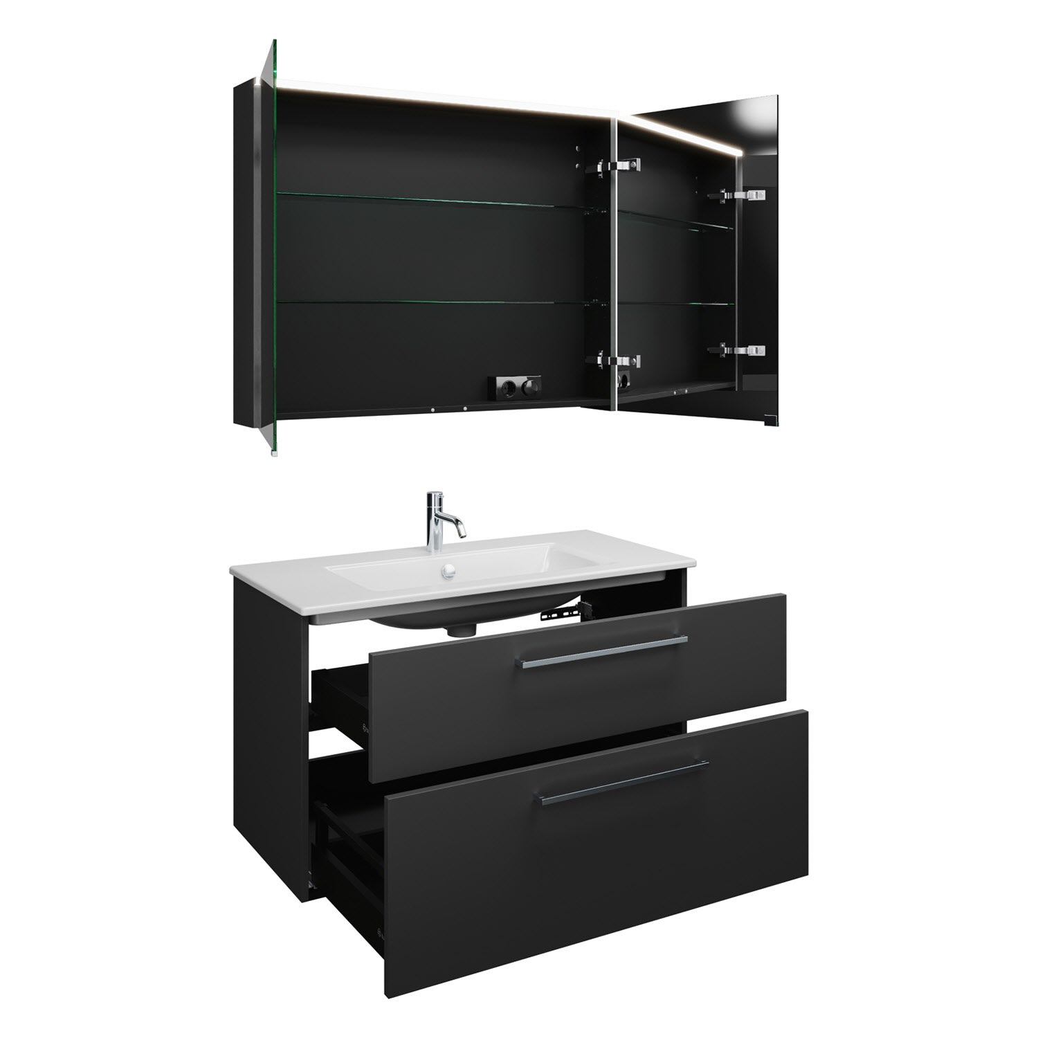 burgbad Eqio Badmöbel-Set 102 cm mit Keramik-Waschtisch Slim und Unterschrank mit Stangengriff P95, mit Spiegelschrank