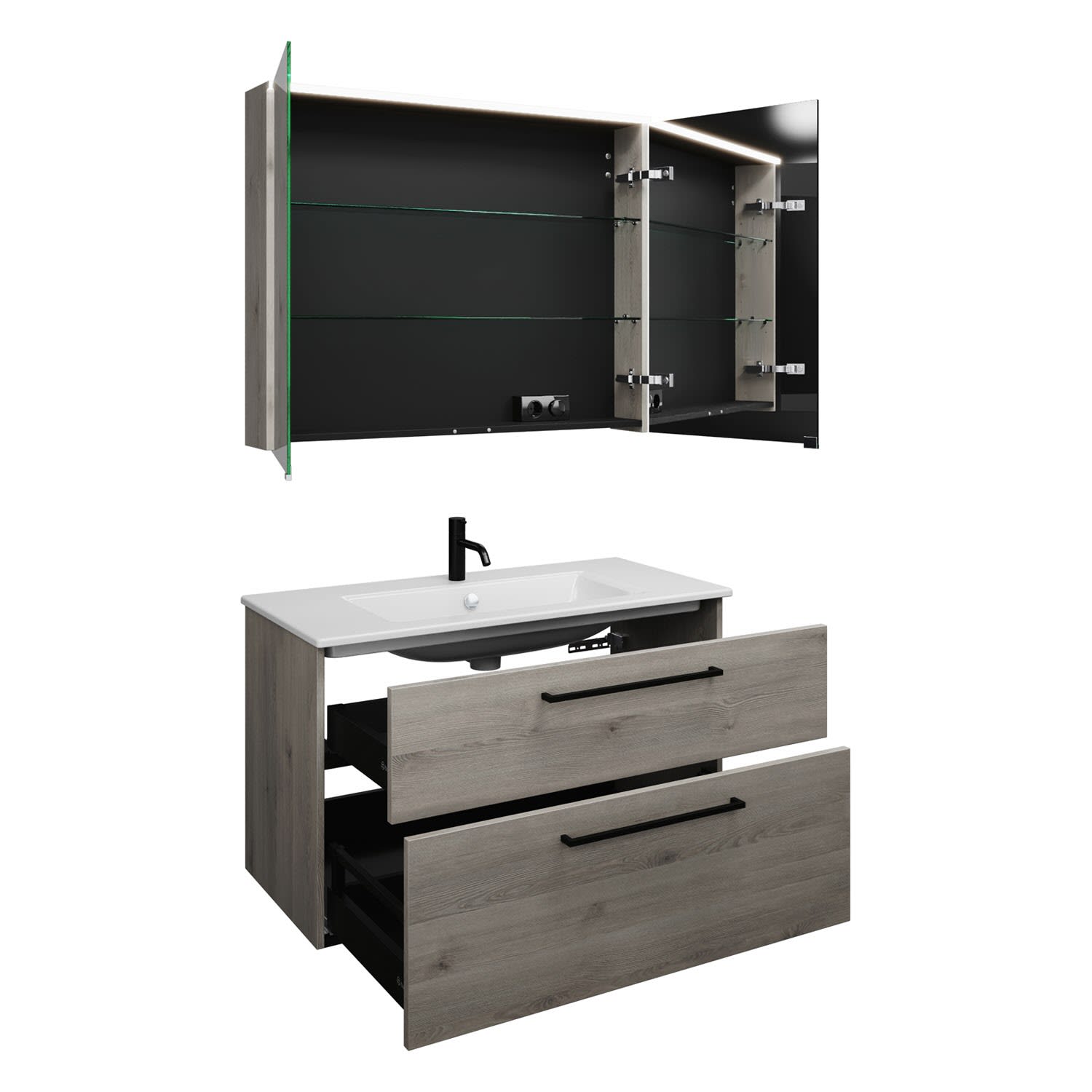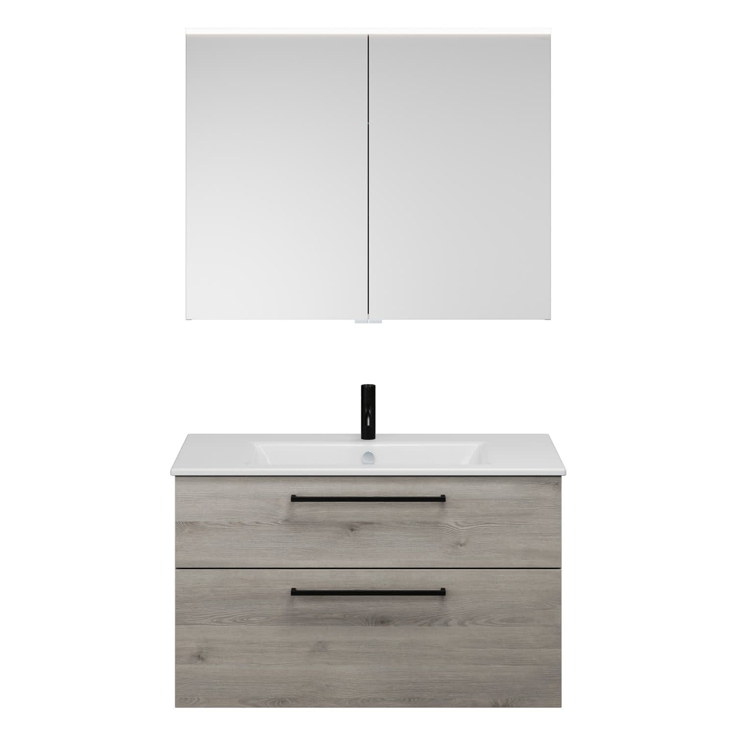 burgbad Eqio Badmöbel-Set 102 cm mit Keramik-Waschtisch Slim und Unterschrank mit Stangengriff G0234, mit Spiegelschrank