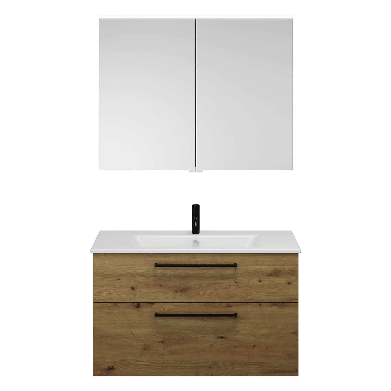 burgbad Eqio Badmöbel-Set 102 cm mit Keramik-Waschtisch Slim und Unterschrank mit Stangengriff G0234, mit Spiegelschrank