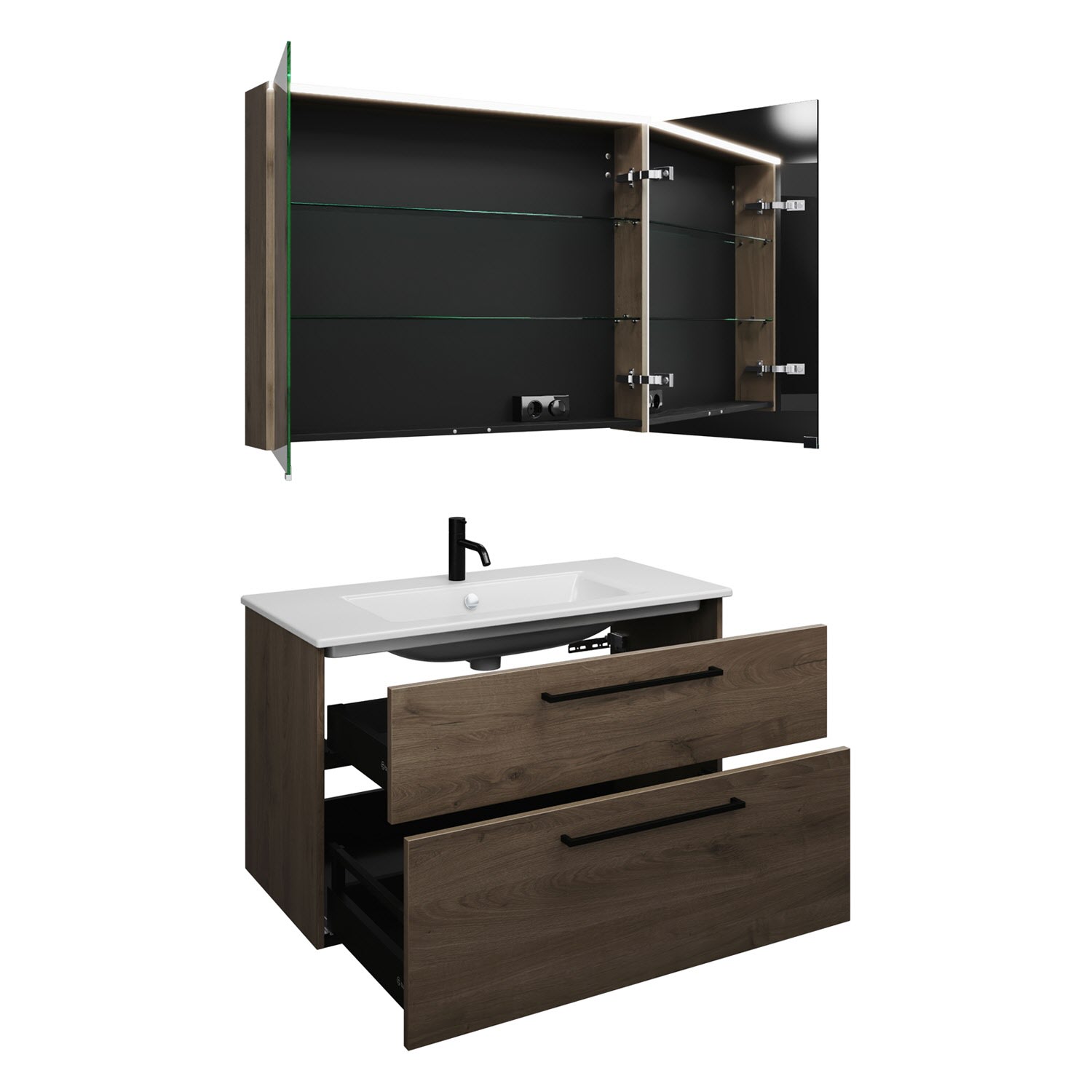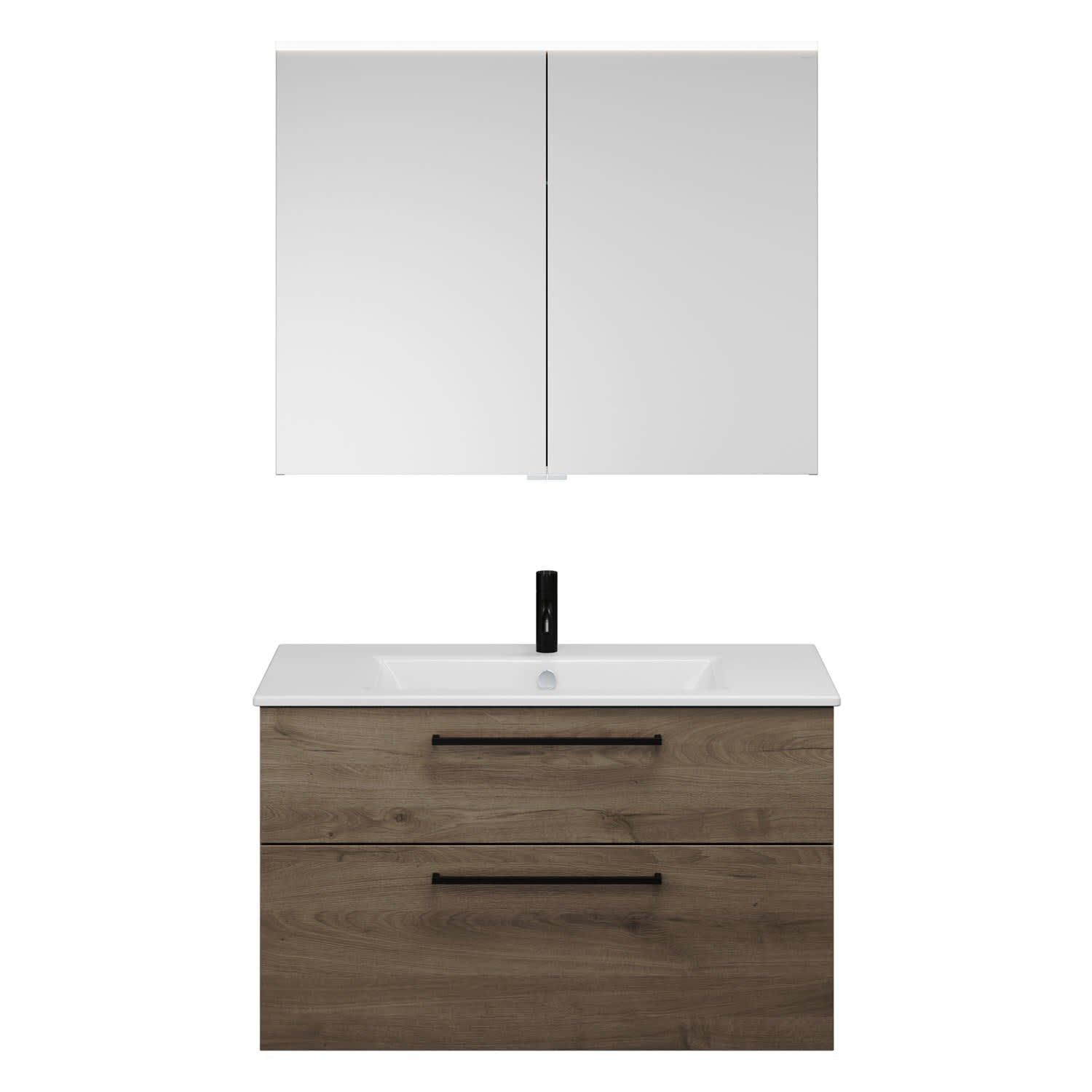 burgbad Eqio Badmöbel-Set 102 cm mit Keramik-Waschtisch Slim und Unterschrank mit Stangengriff G0234, mit Spiegelschrank