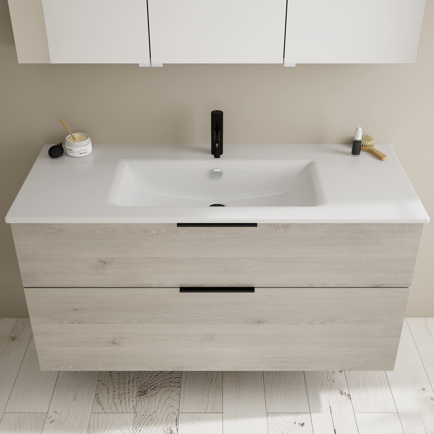 - Spiegelschrank, Waschtischunterschrank, Waschtisch, Befestigung außer Stockschrauben