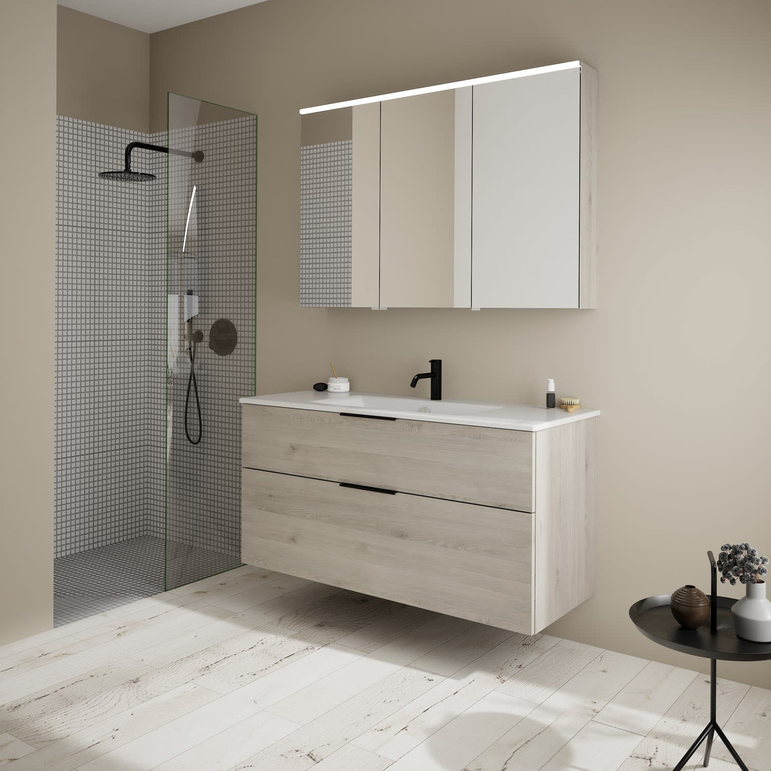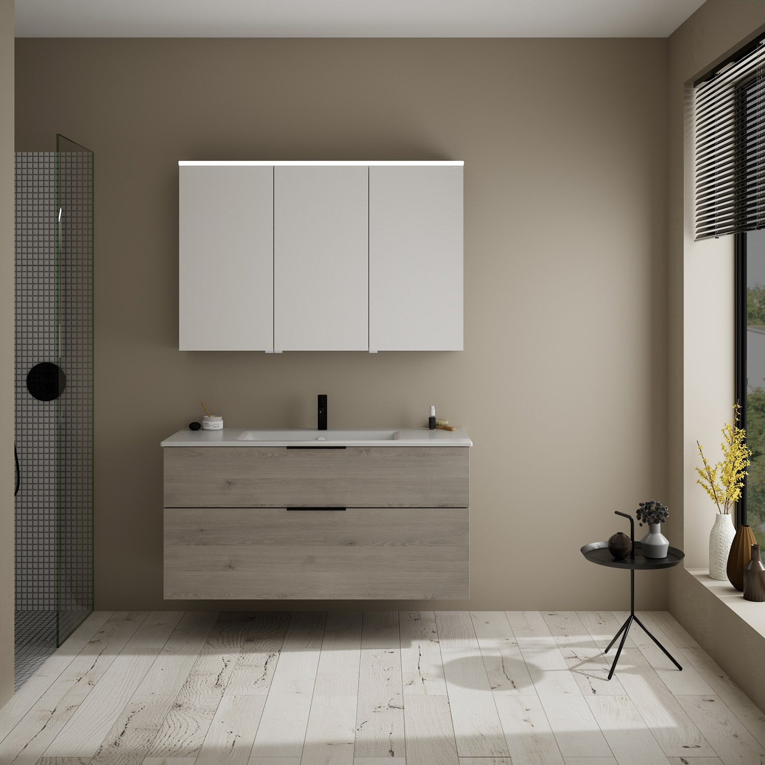 burgbad Eqio Badmöbel-Set 122 cm mit Keramik-Waschtisch Slim und Unterschrank mit Griff G0200, mit Spiegelschrank