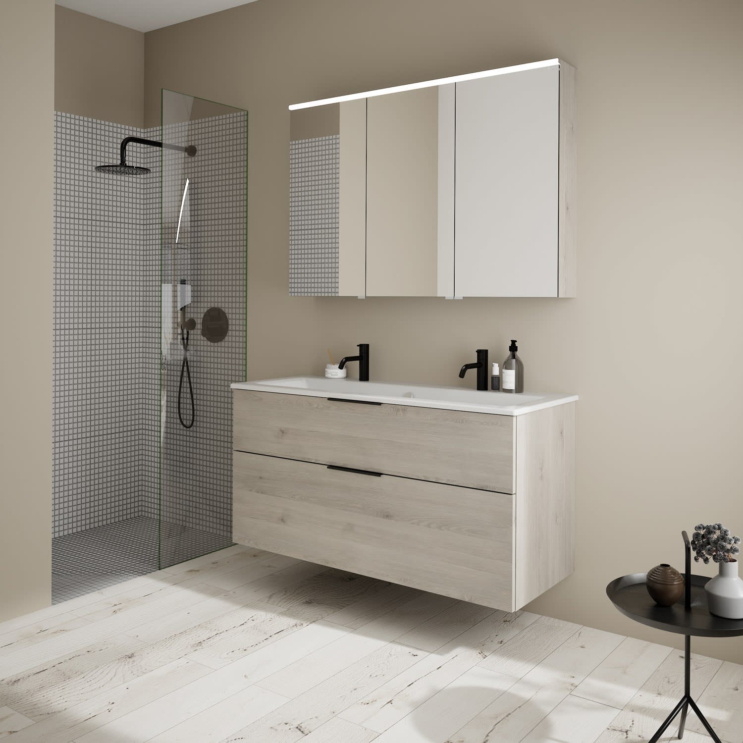 burgbad Eqio Badmöbel-Set 122 cm mit Keramik-Waschtisch Slim und Unterschrank mit Griff G0200, mit Spiegelschrank