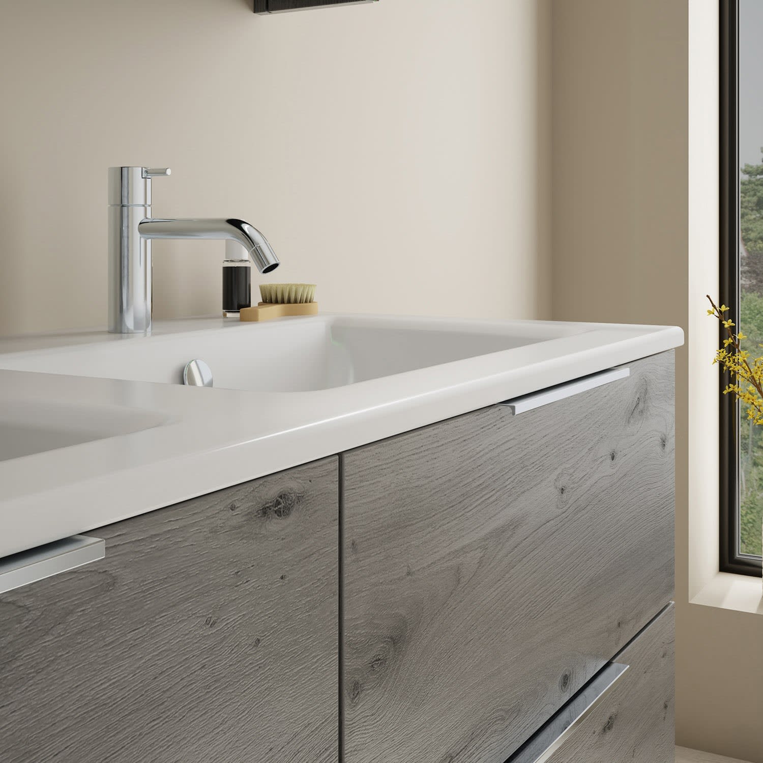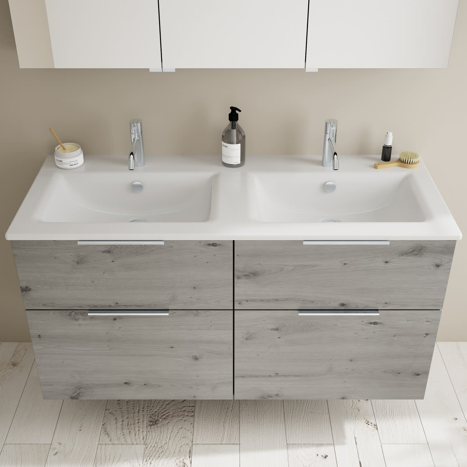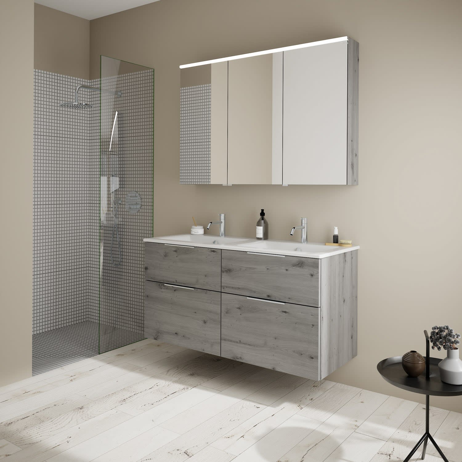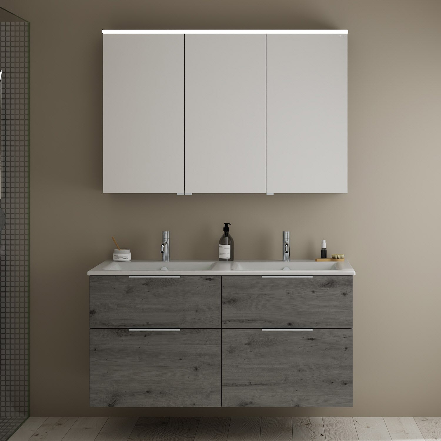 burgbad Eqio Badmöbel-Set 122 cm mit Keramik-Doppelwaschtisch Slim und Unterschrank mit Griff G0146, mit Spiegelschrank