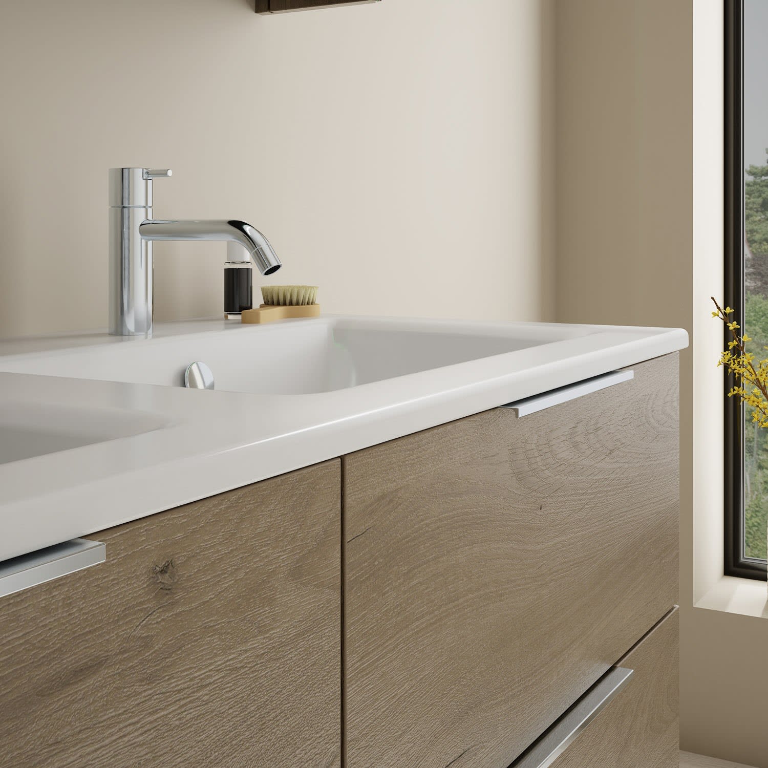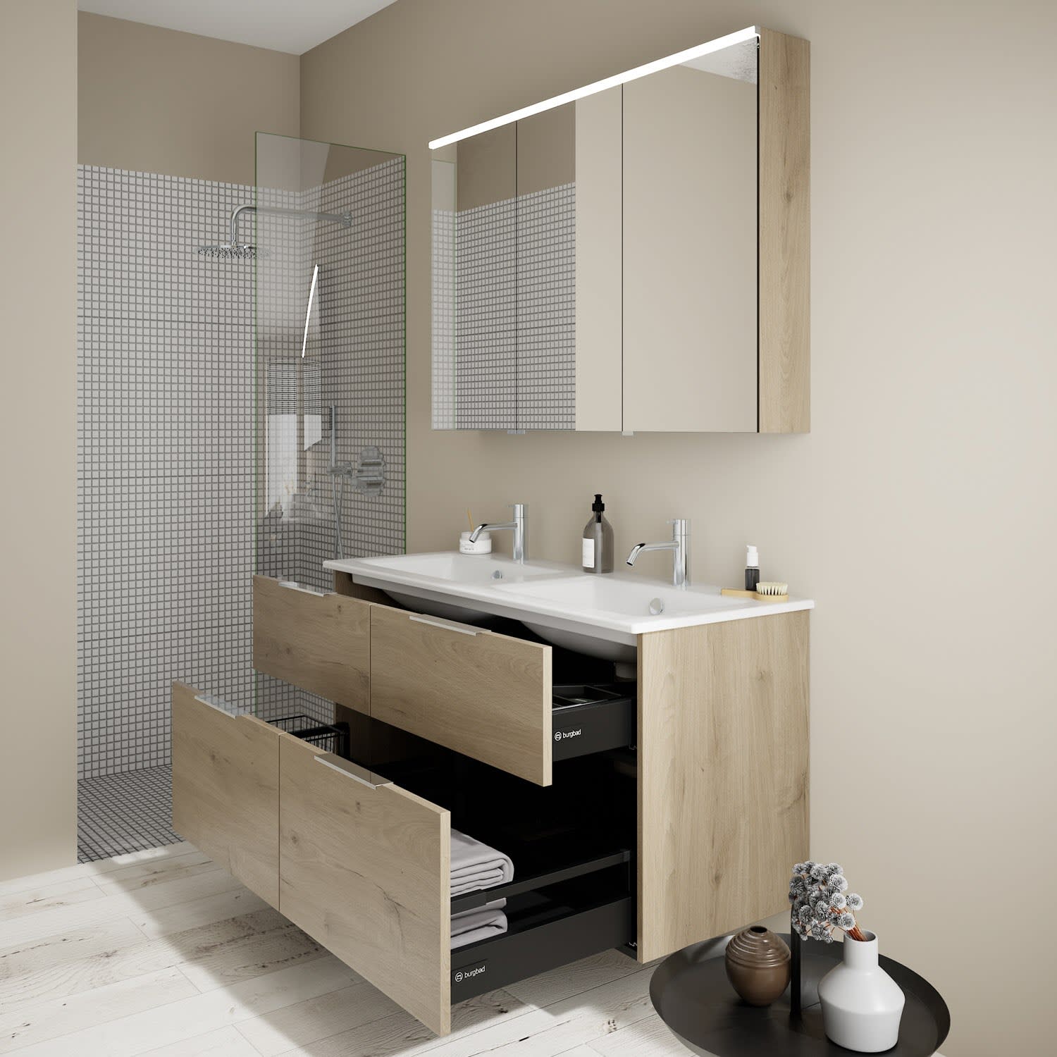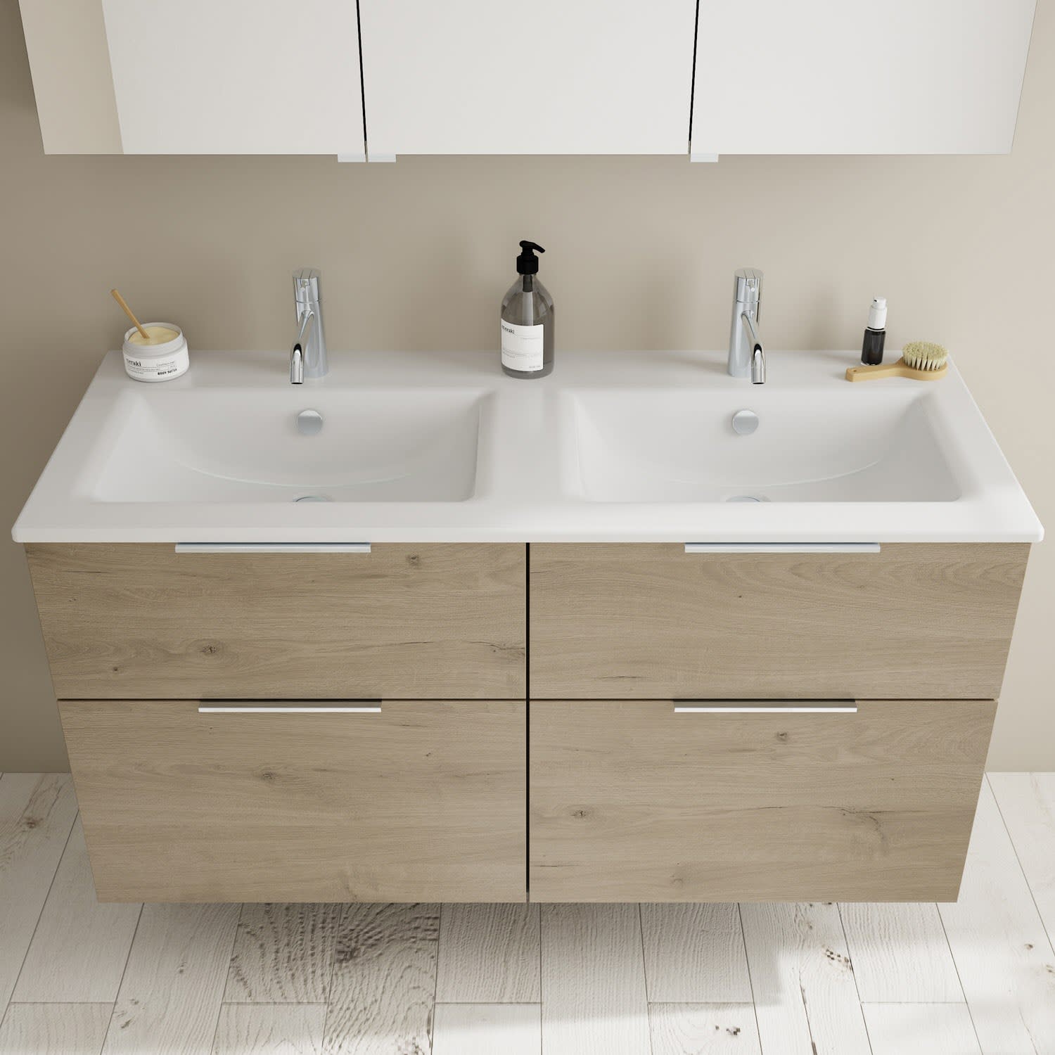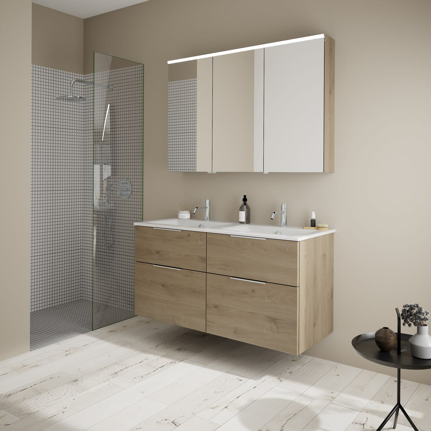 burgbad Eqio Badmöbel-Set 122 cm mit Keramik-Doppelwaschtisch Slim und Unterschrank mit Griff G0146, mit Spiegelschrank