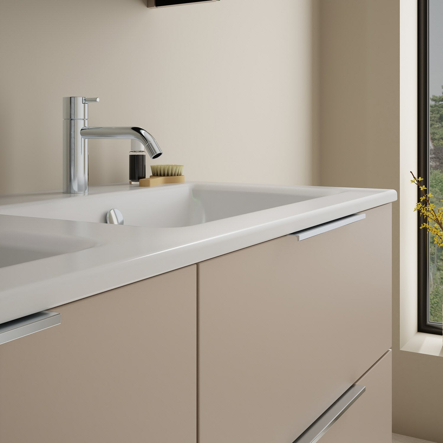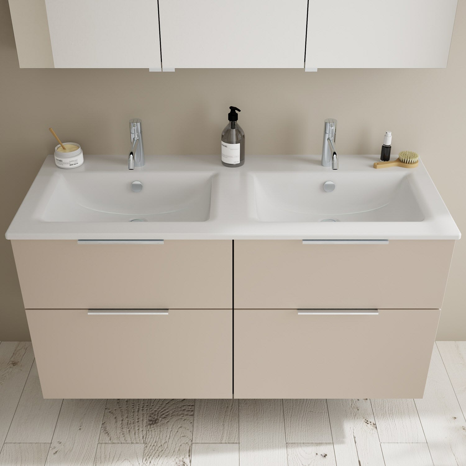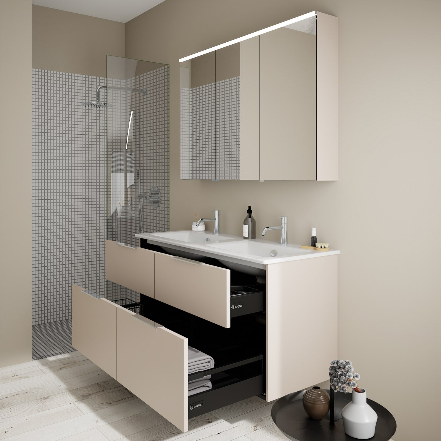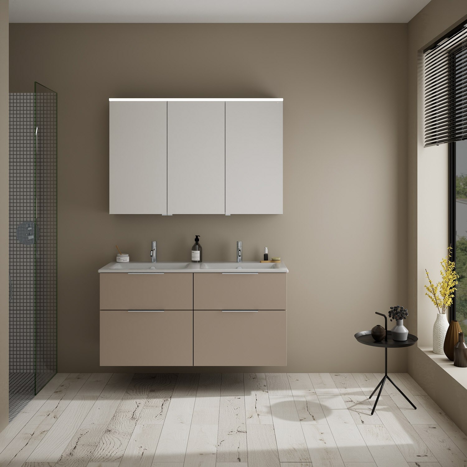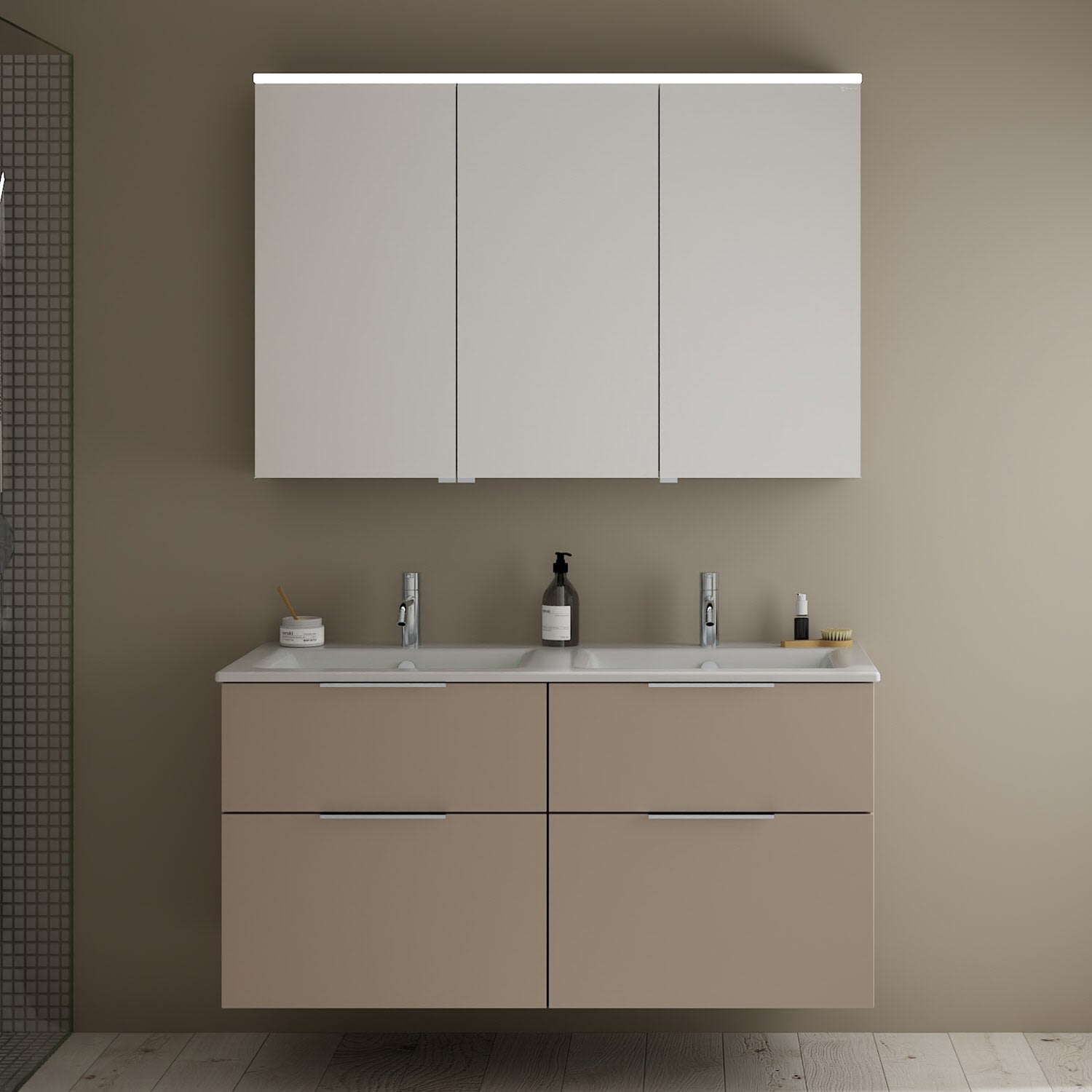 burgbad Eqio Badmöbel-Set 122 cm mit Keramik-Doppelwaschtisch Slim und Unterschrank mit Griff G0146, mit Spiegelschrank