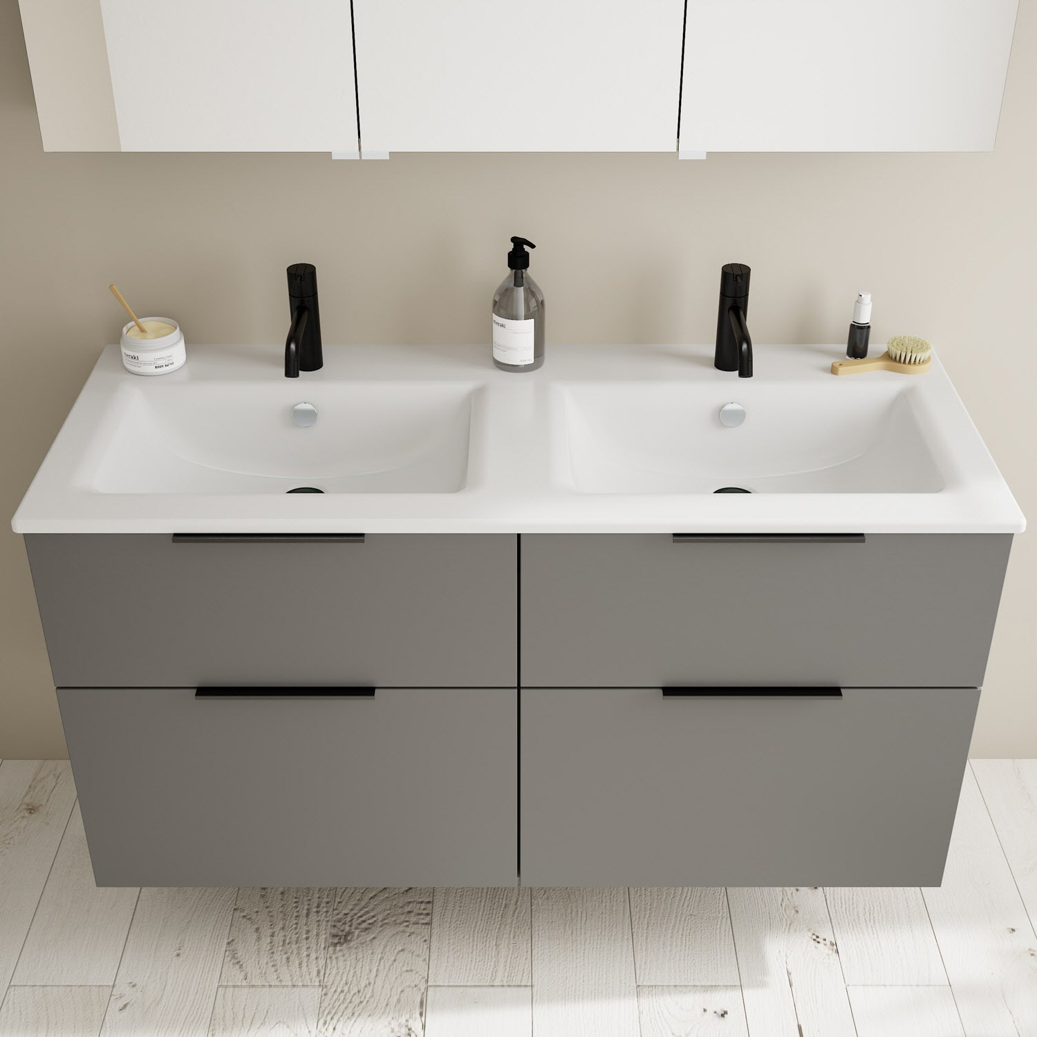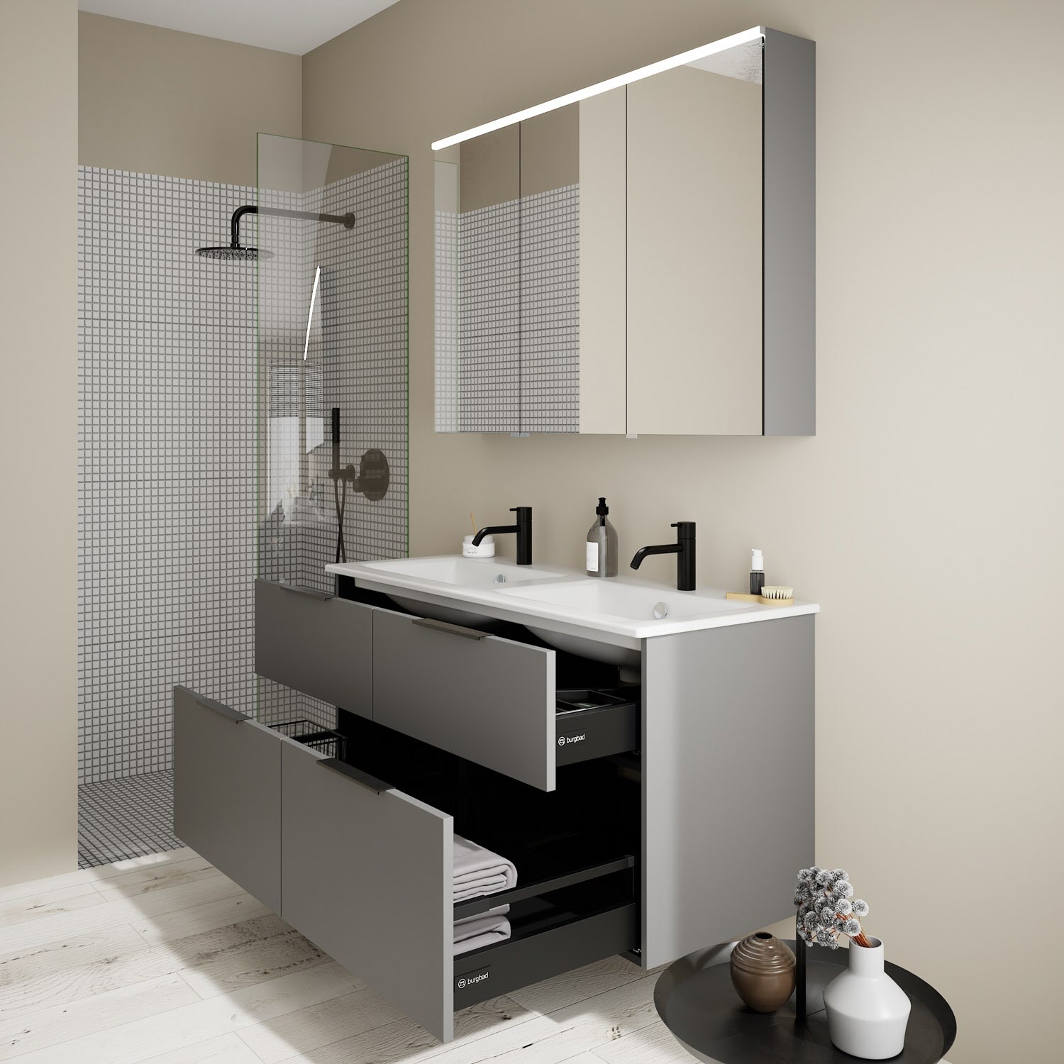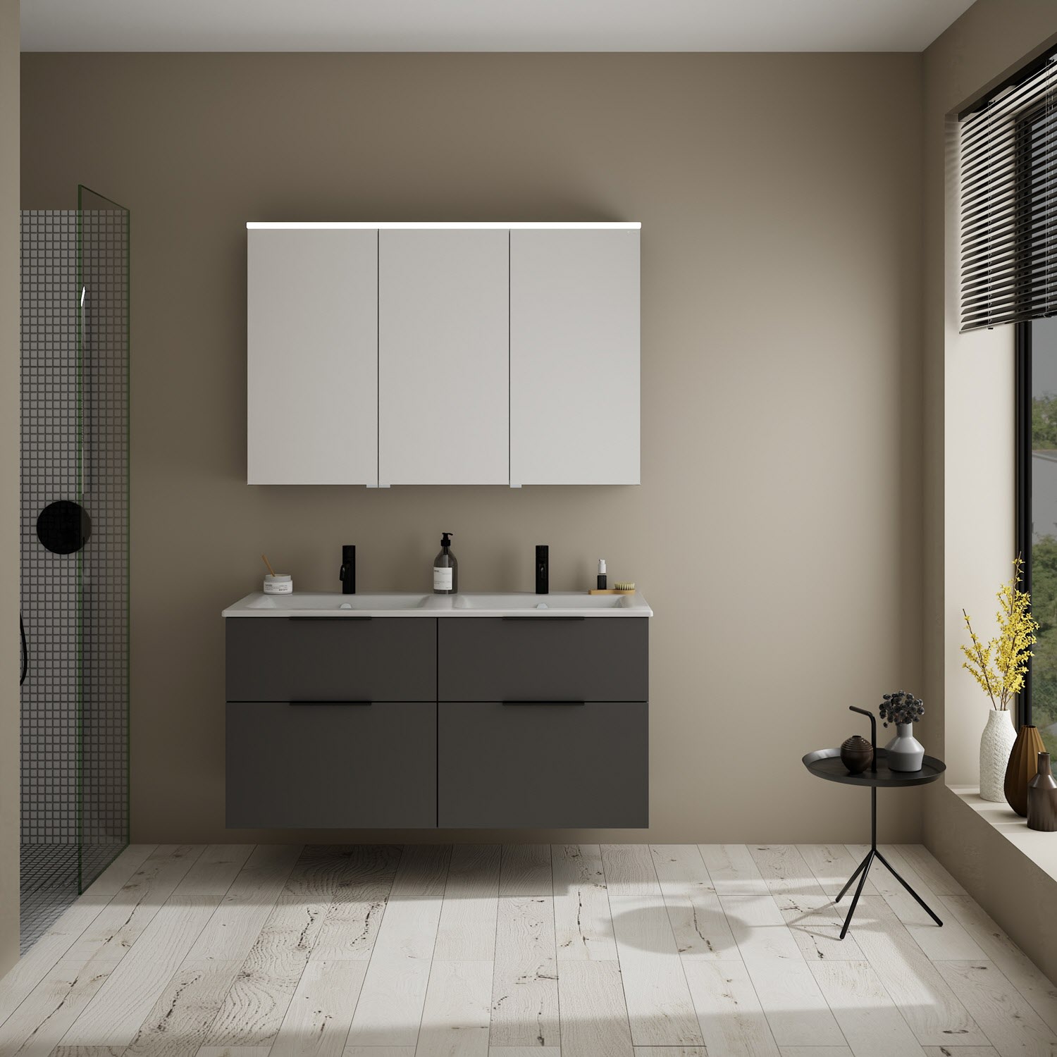 burgbad Eqio Badmöbel-Set 122 cm mit Keramik-Doppelwaschtisch Slim und Unterschrank mit Griff G0200, mit Spiegelschrank