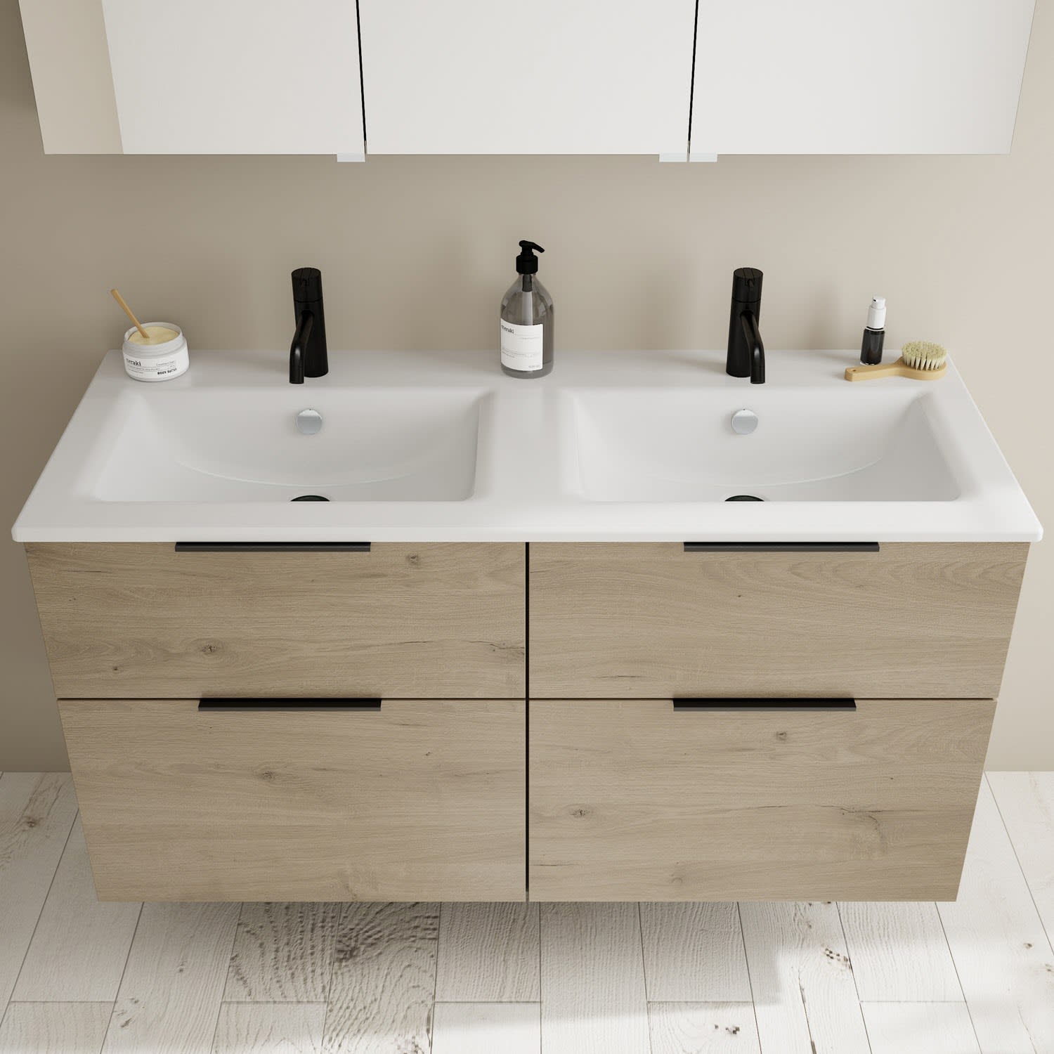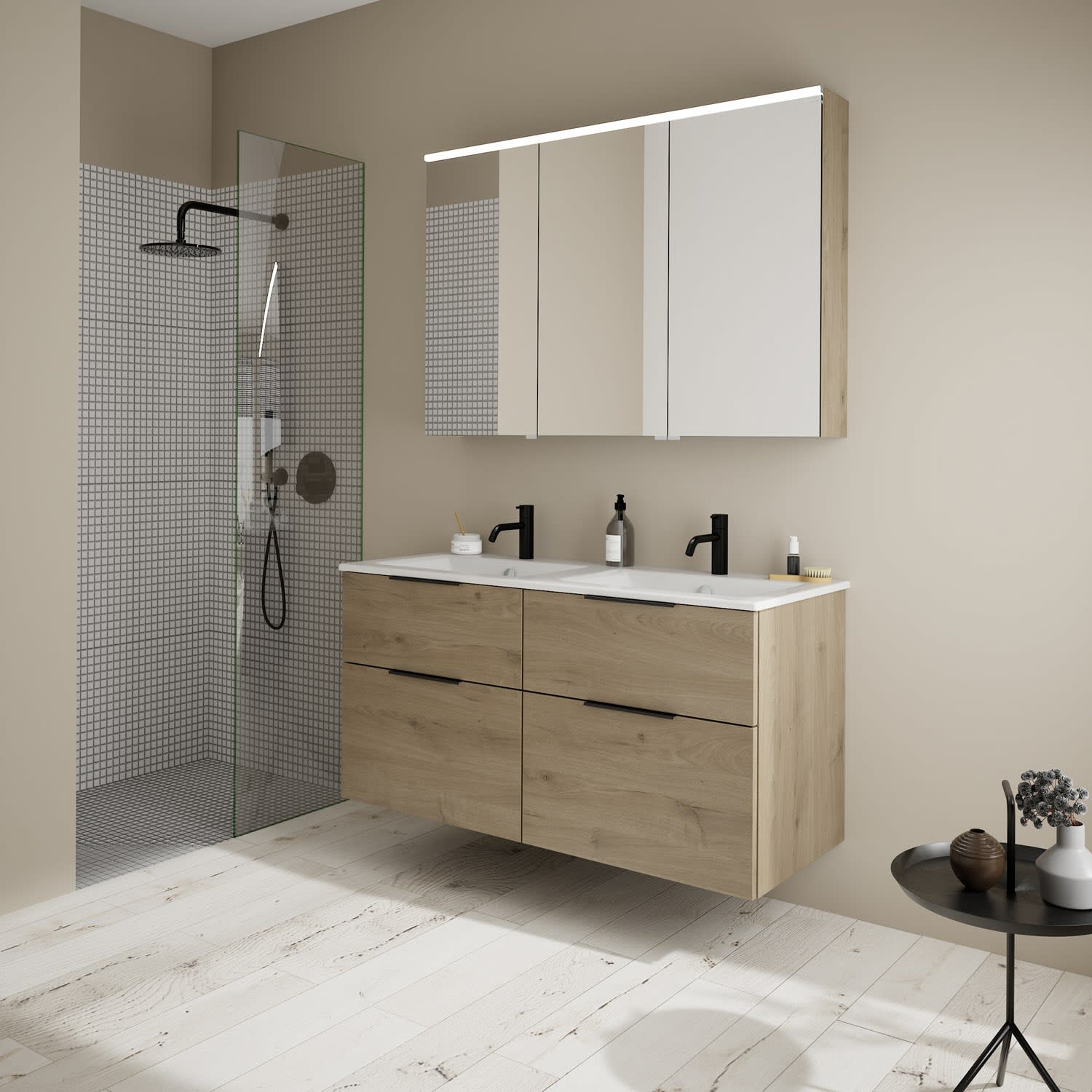 burgbad Eqio Badmöbel-Set 122 cm mit Keramik-Doppelwaschtisch Slim und Unterschrank mit Griff G0200, mit Spiegelschrank