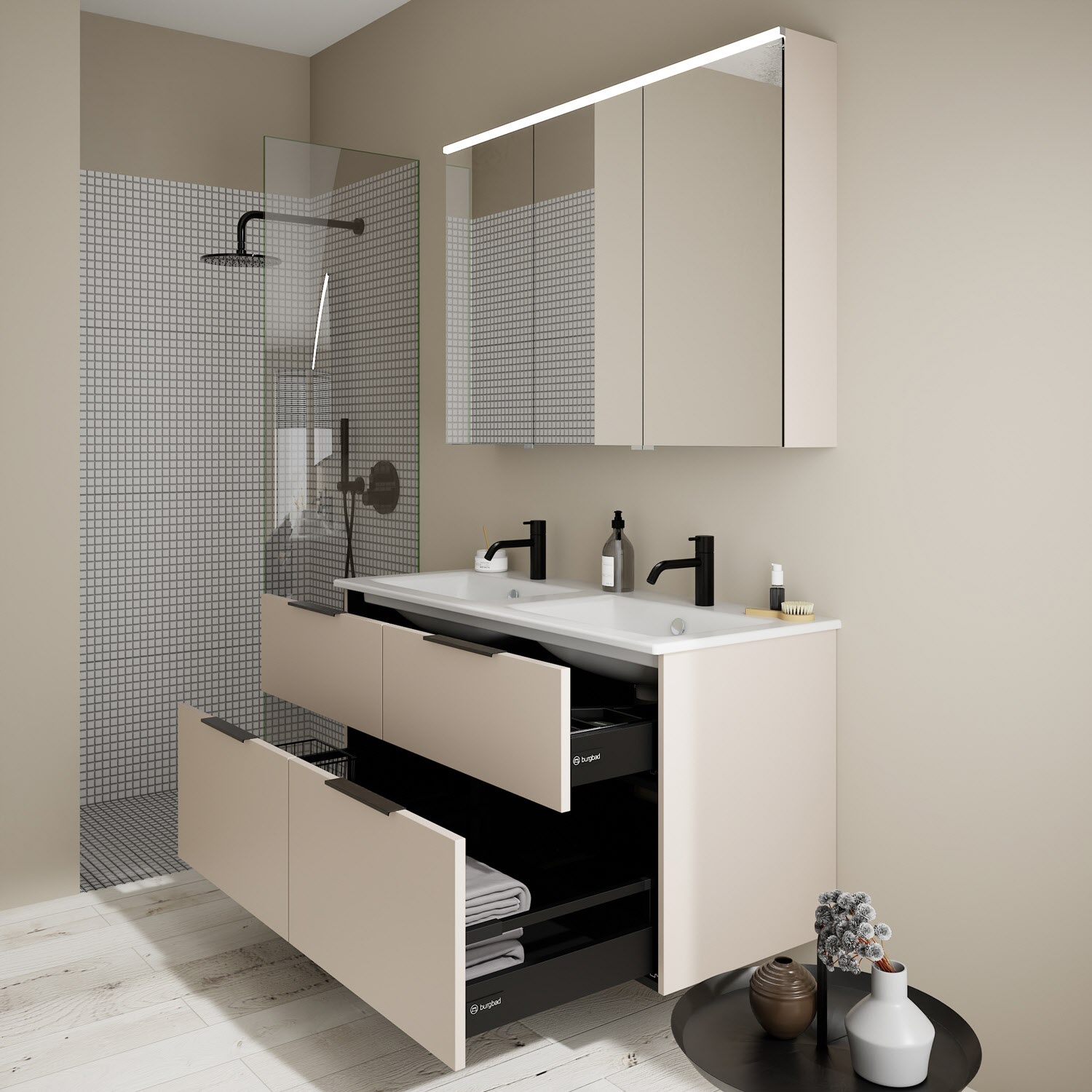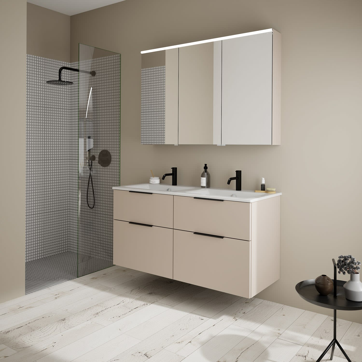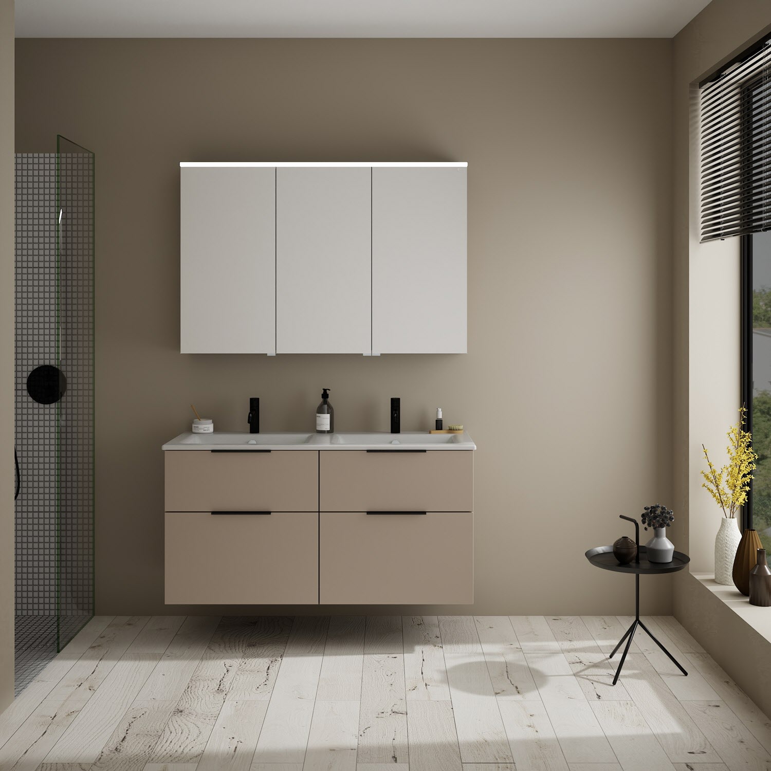 burgbad Eqio Badmöbel-Set 122 cm mit Keramik-Doppelwaschtisch Slim und Unterschrank mit Griff G0200, mit Spiegelschrank