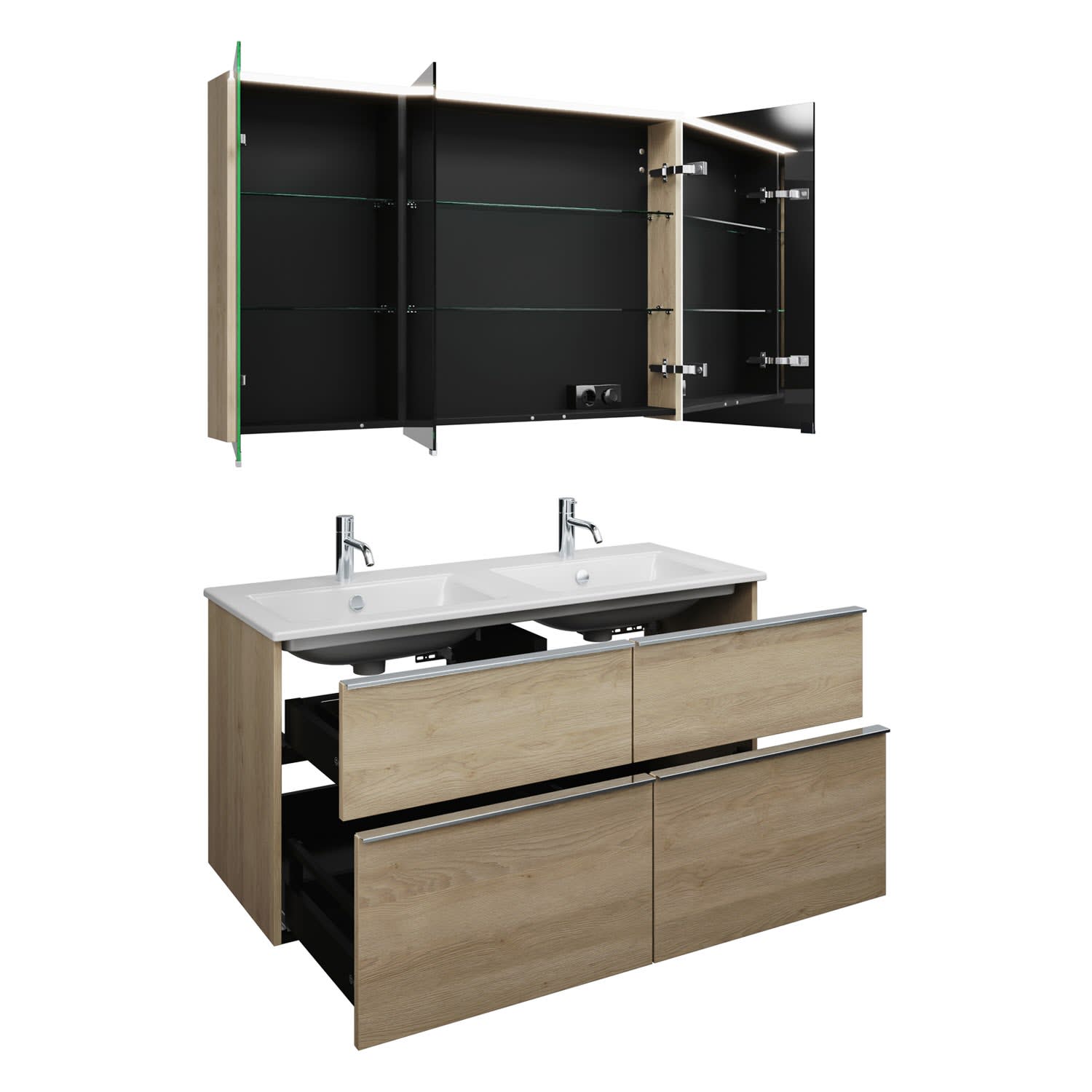 burgbad Eqio Badmöbel-Set 122 cm mit Keramik-Doppelwaschtisch Slim und Unterschrank mit Griffleiste G0251, mit Spiegelschrank