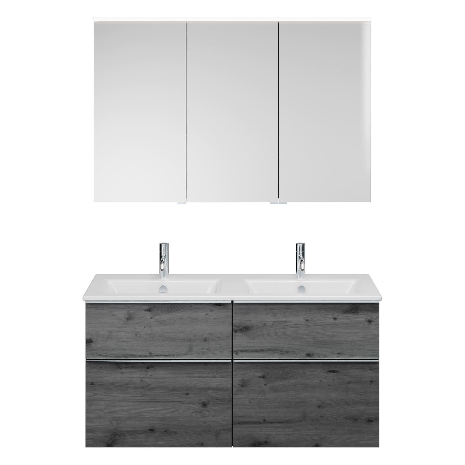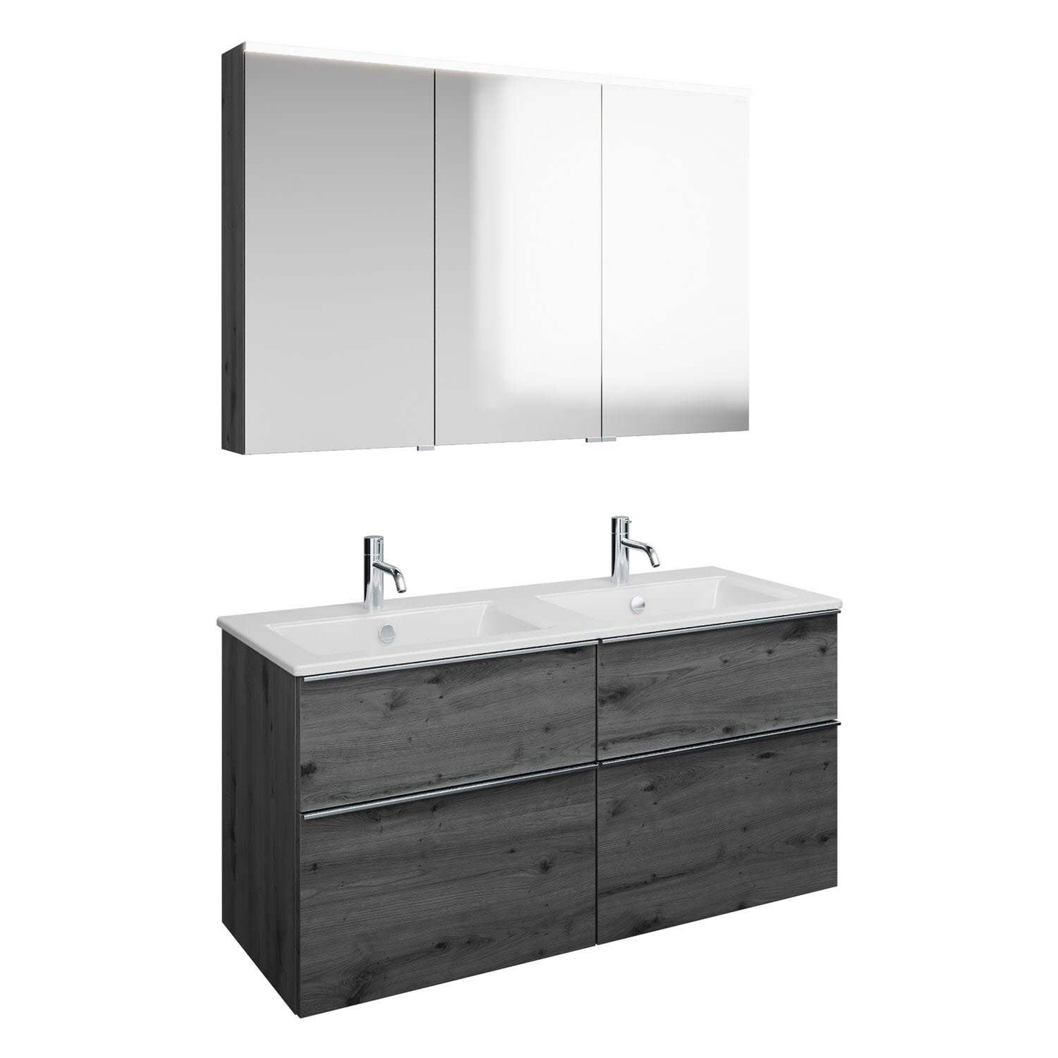 burgbad Eqio Badmöbel-Set 122 cm mit Keramik-Doppelwaschtisch Slim und Unterschrank mit Griffleiste G0251, mit Spiegelschrank