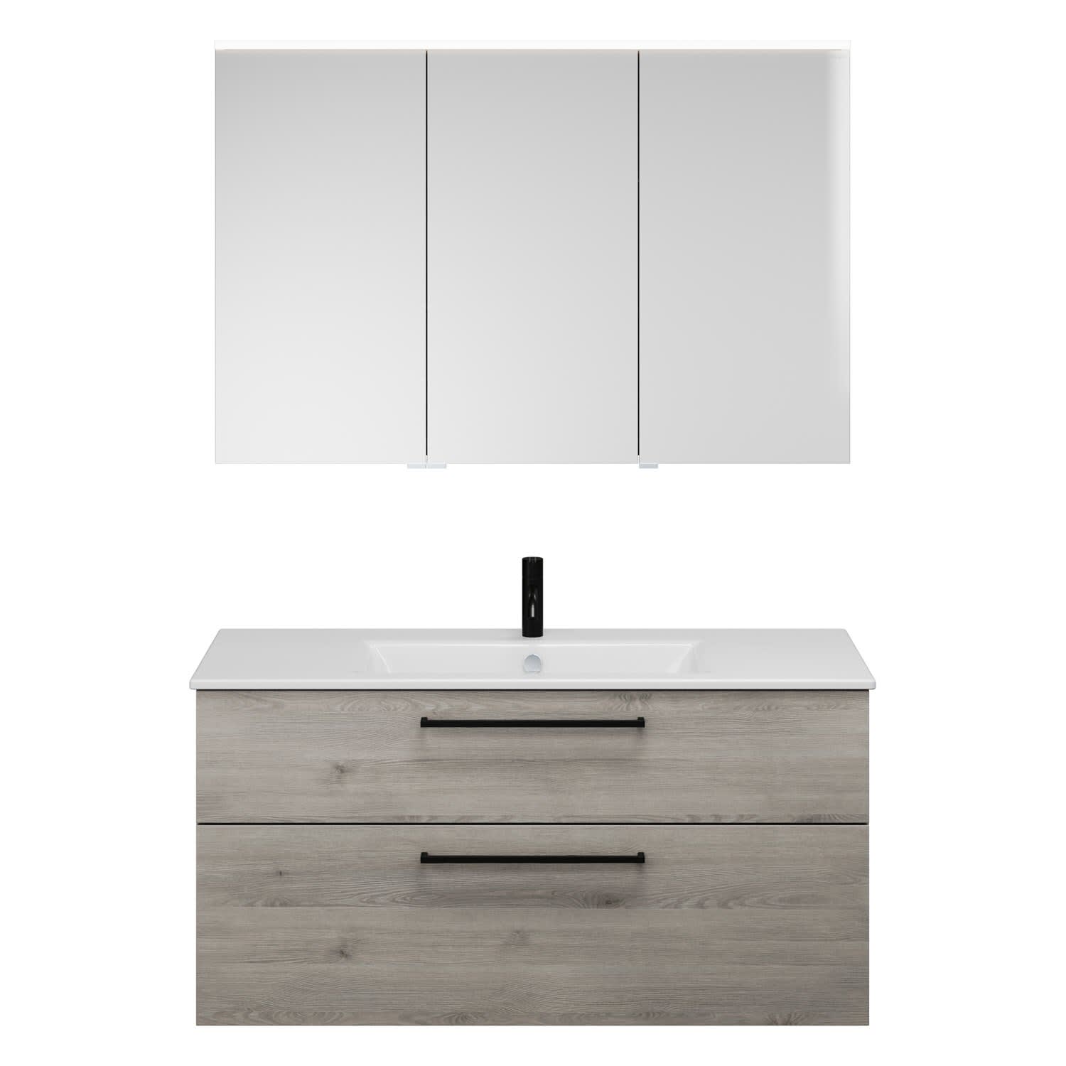 burgbad Eqio Badmöbel-Set 122 cm mit Keramik-Waschtisch Slim und Unterschrank mit Stangengriff G0234, mit Spiegelschrank