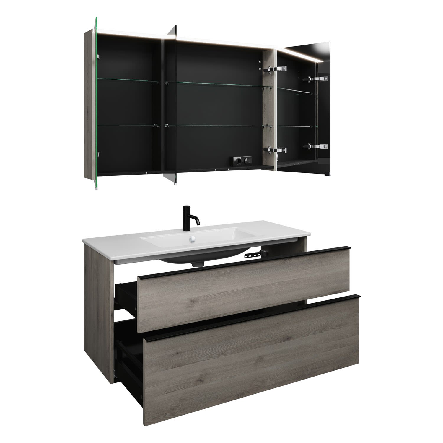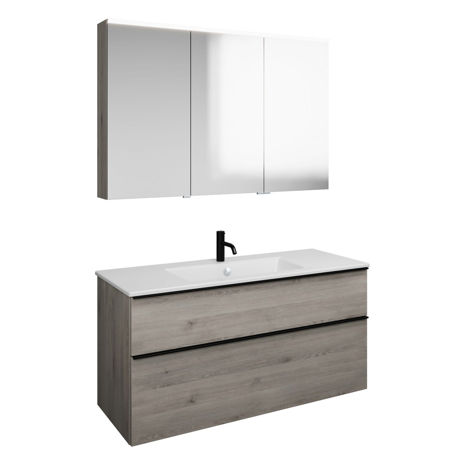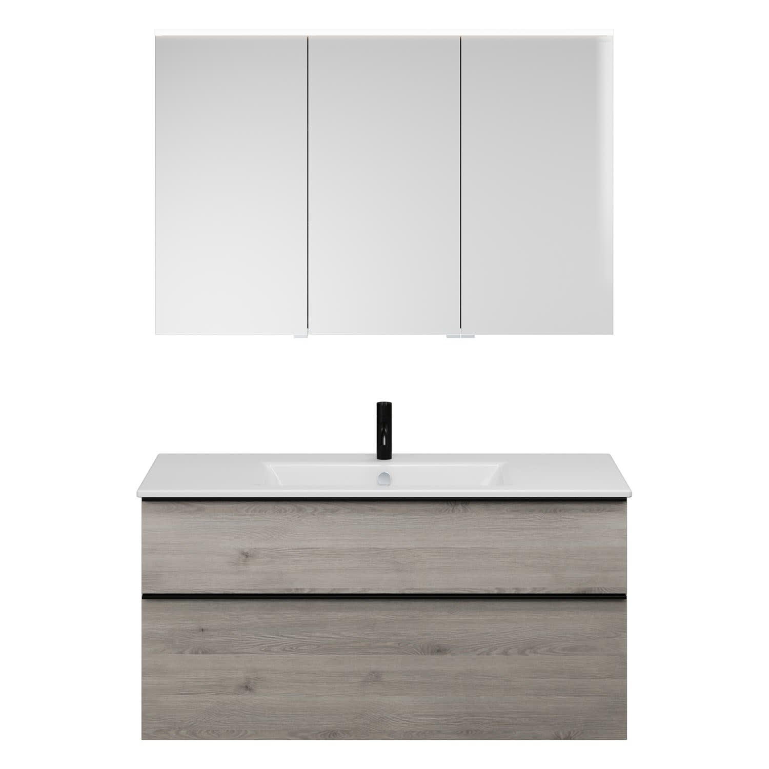 burgbad Eqio Badmöbel-Set 122 cm mit Keramik-Waschtisch Slim und Unterschrank mit Griffleiste G0252, mit Spiegelschrank