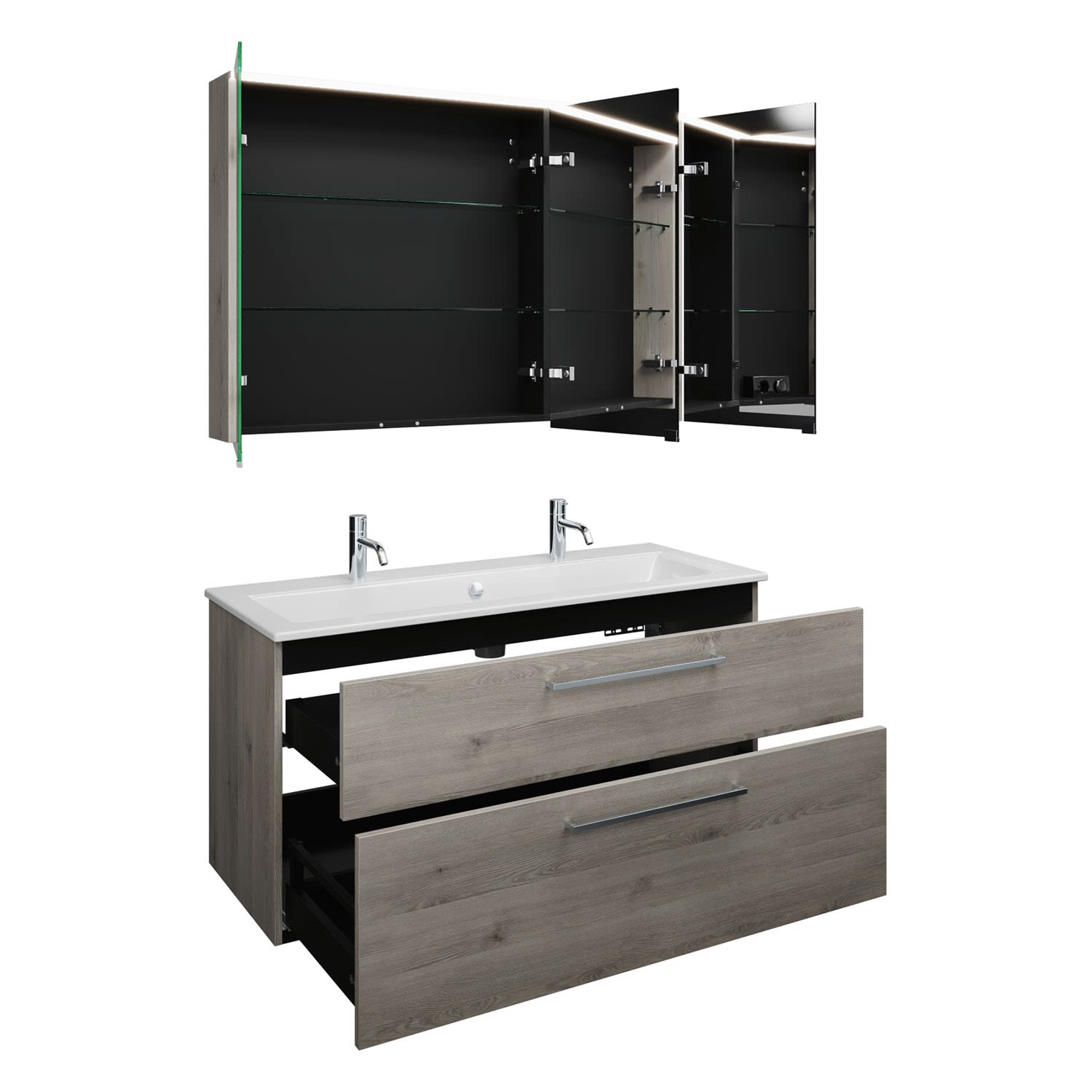 burgbad Eqio Badmöbel-Set 122 cm mit Keramik-Waschtisch Slim und Unterschrank mit Stangengriff P95, mit Spiegelschrank