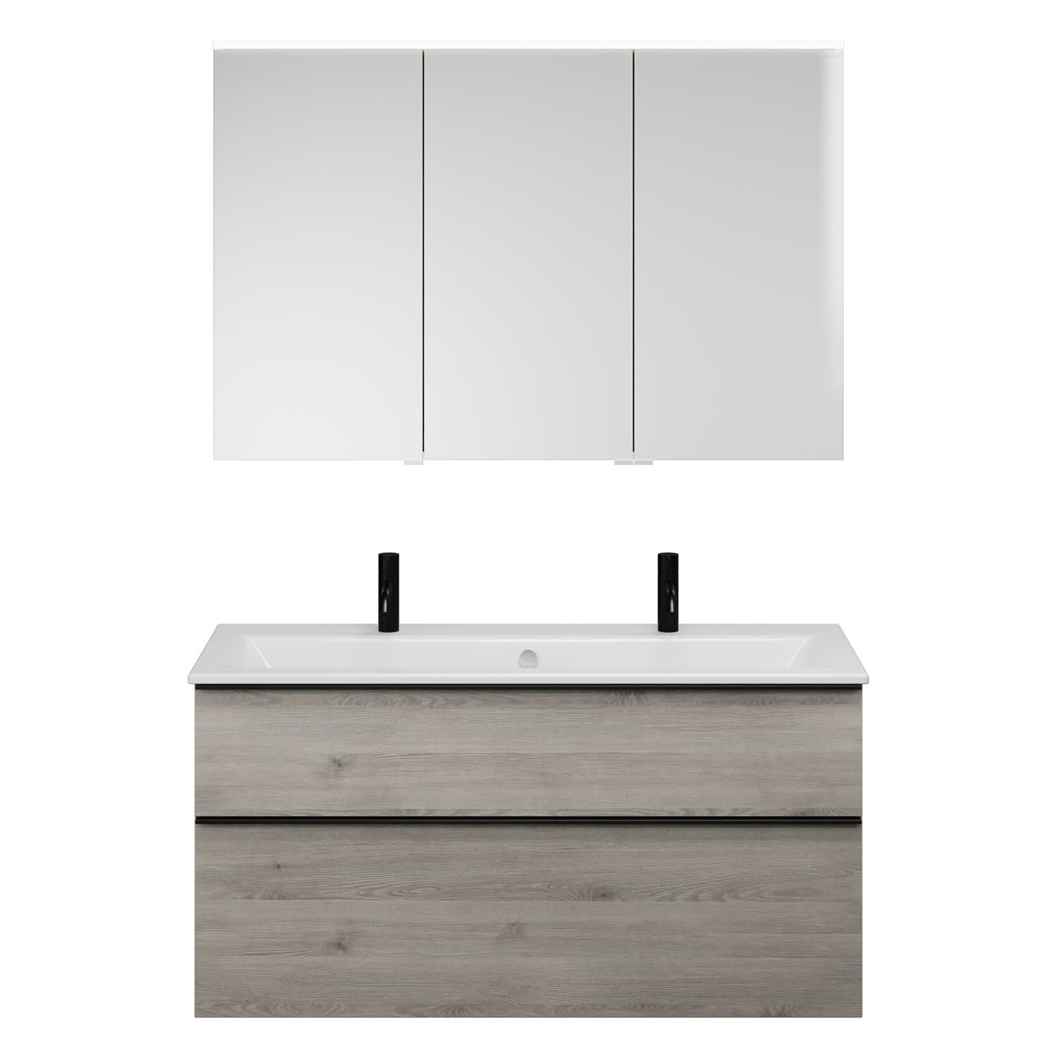 burgbad Eqio Badmöbel-Set 122 cm mit Keramik-Waschtisch Slim und Unterschrank mit Griffleiste G0252, mit Spiegelschrank