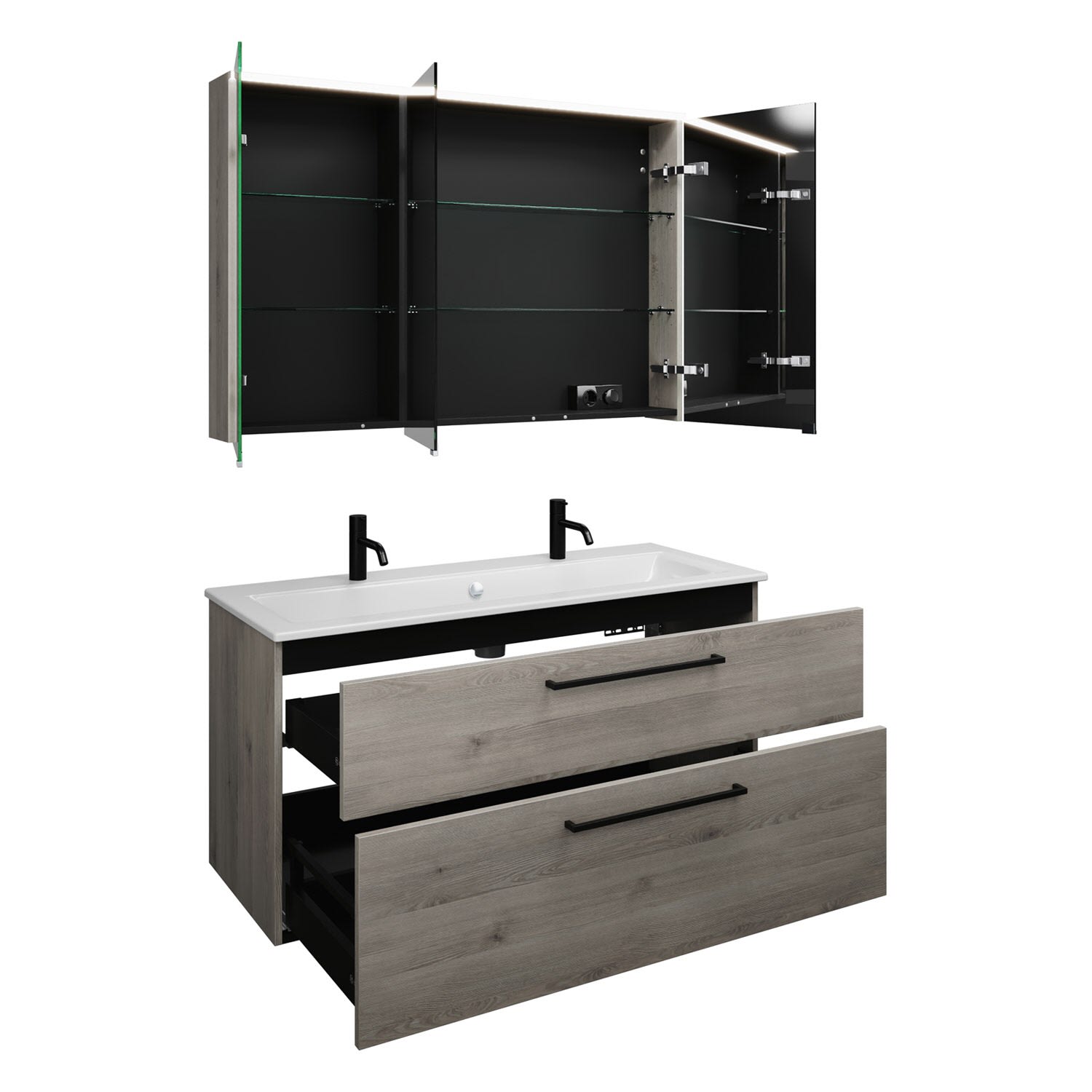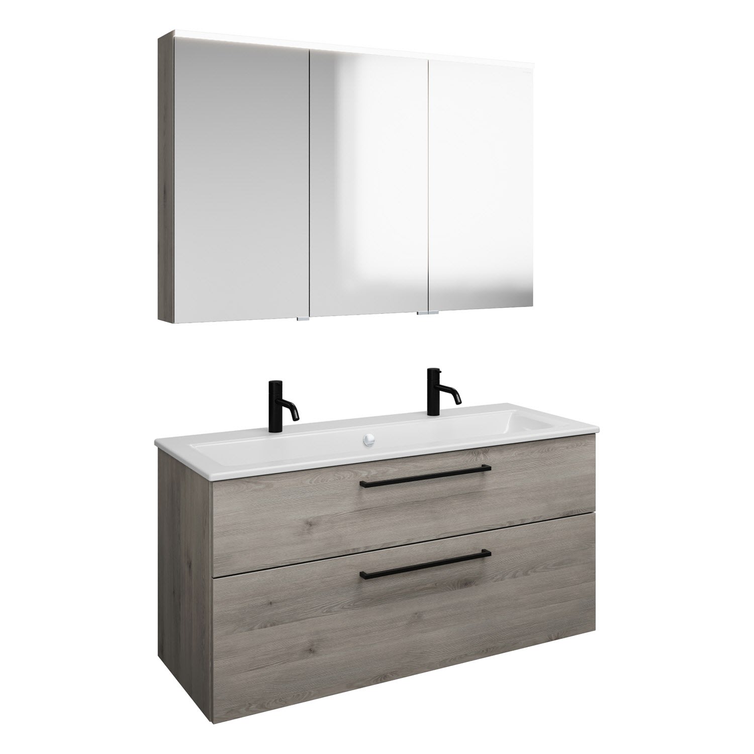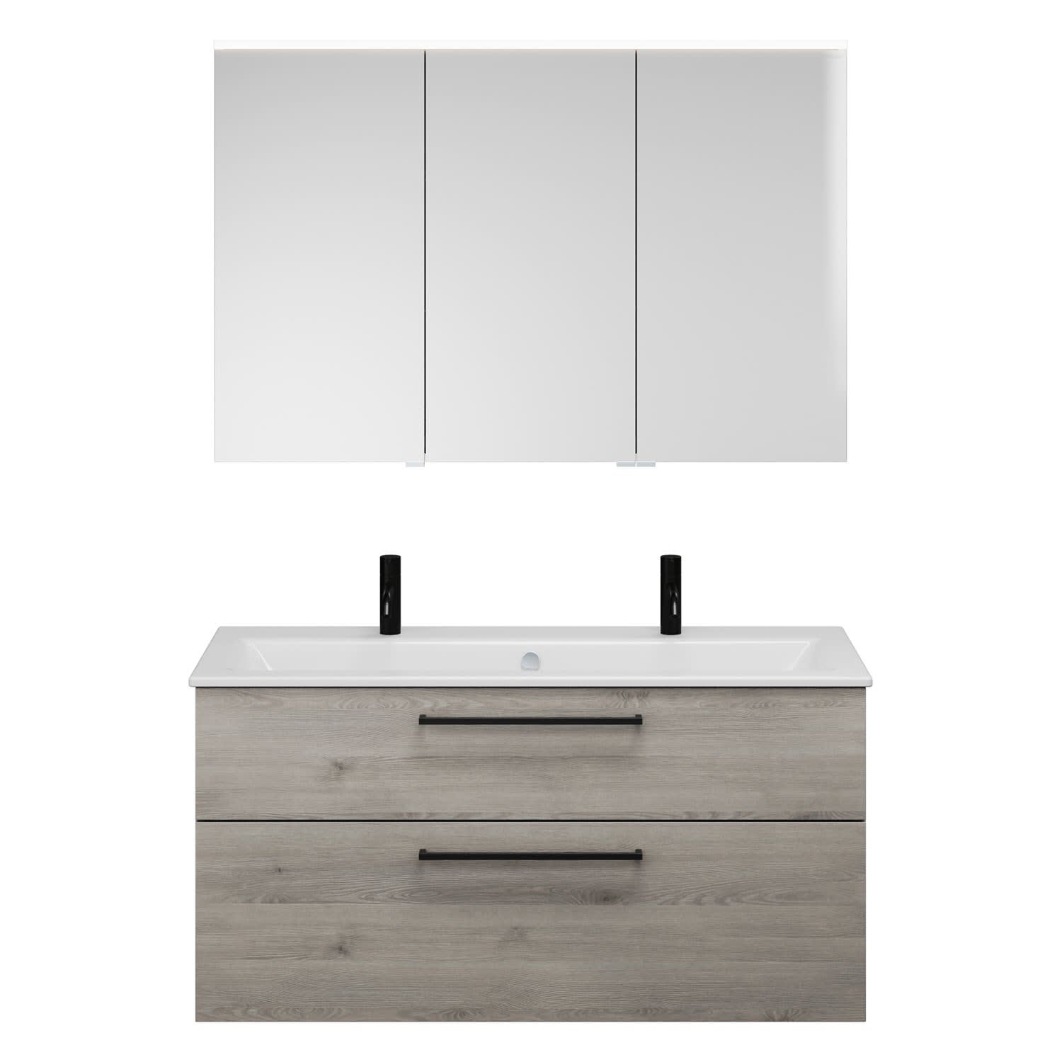 burgbad Eqio Badmöbel-Set 122 cm mit Keramik-Waschtisch Slim und Unterschrank mit Stangengriff G0234, mit Spiegelschrank