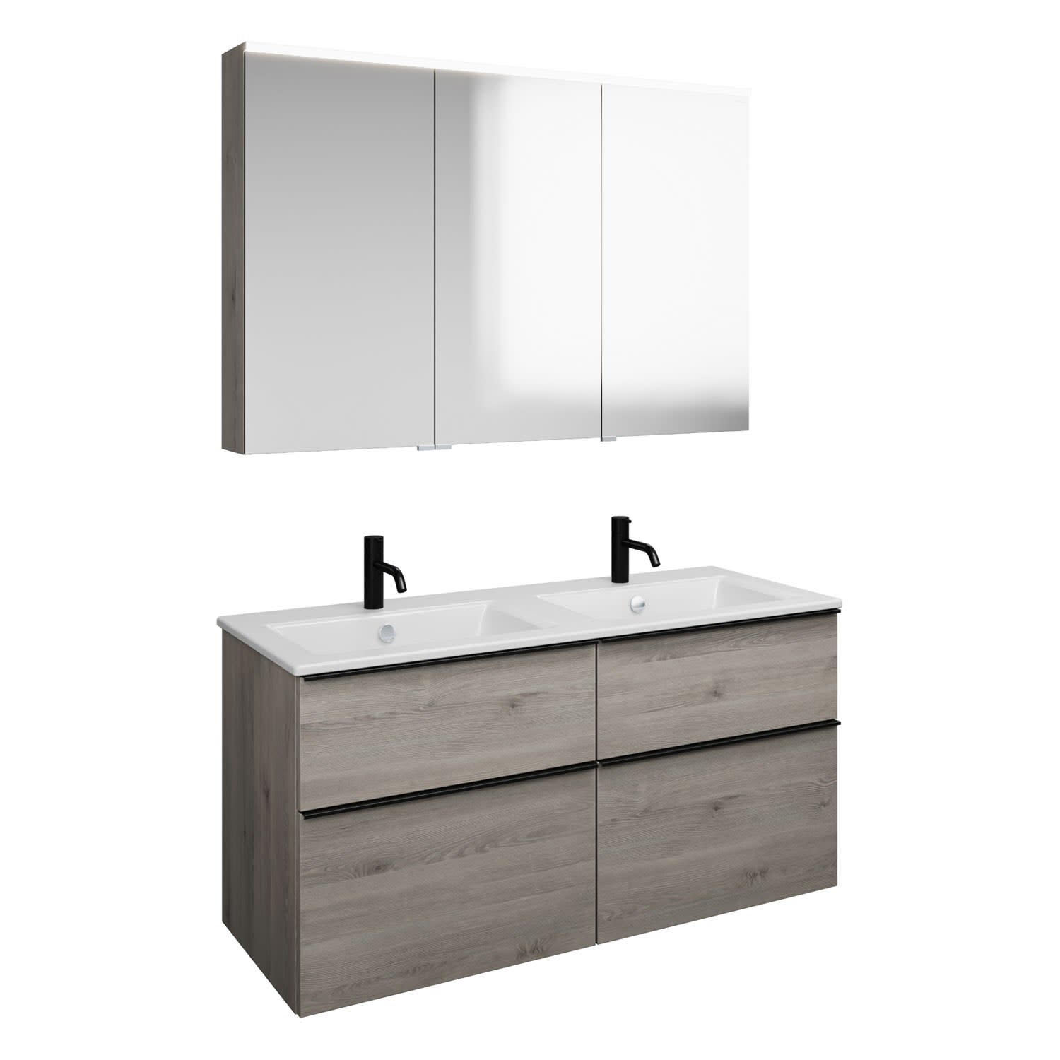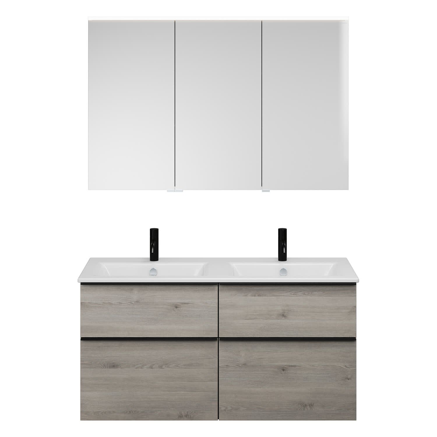 burgbad Eqio Badmöbel-Set 122 cm mit Keramik-Doppelwaschtisch Slim und Unterschrank mit Griffleiste G0252, mit Spiegelschrank