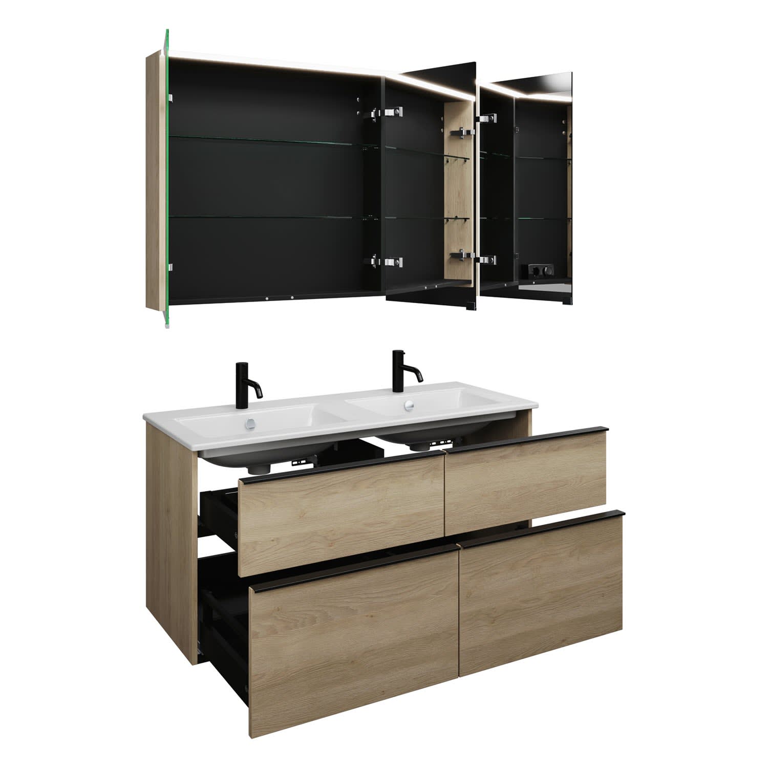 burgbad Eqio Badmöbel-Set 122 cm mit Keramik-Doppelwaschtisch Slim und Unterschrank mit Griffleiste G0252, mit Spiegelschrank