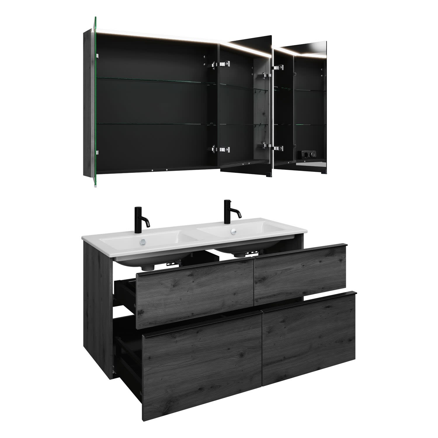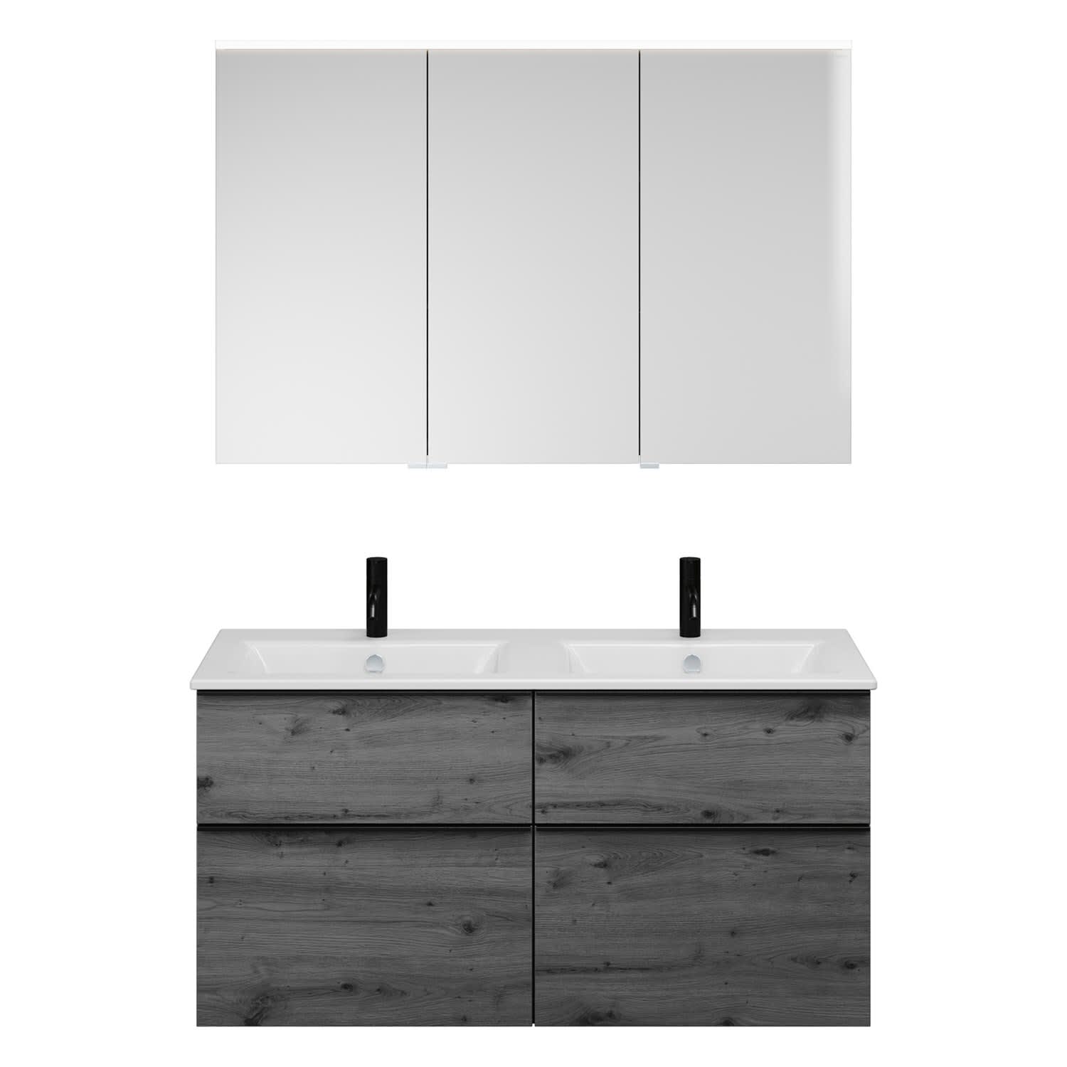 burgbad Eqio Badmöbel-Set 122 cm mit Keramik-Doppelwaschtisch Slim und Unterschrank mit Griffleiste G0252, mit Spiegelschrank
