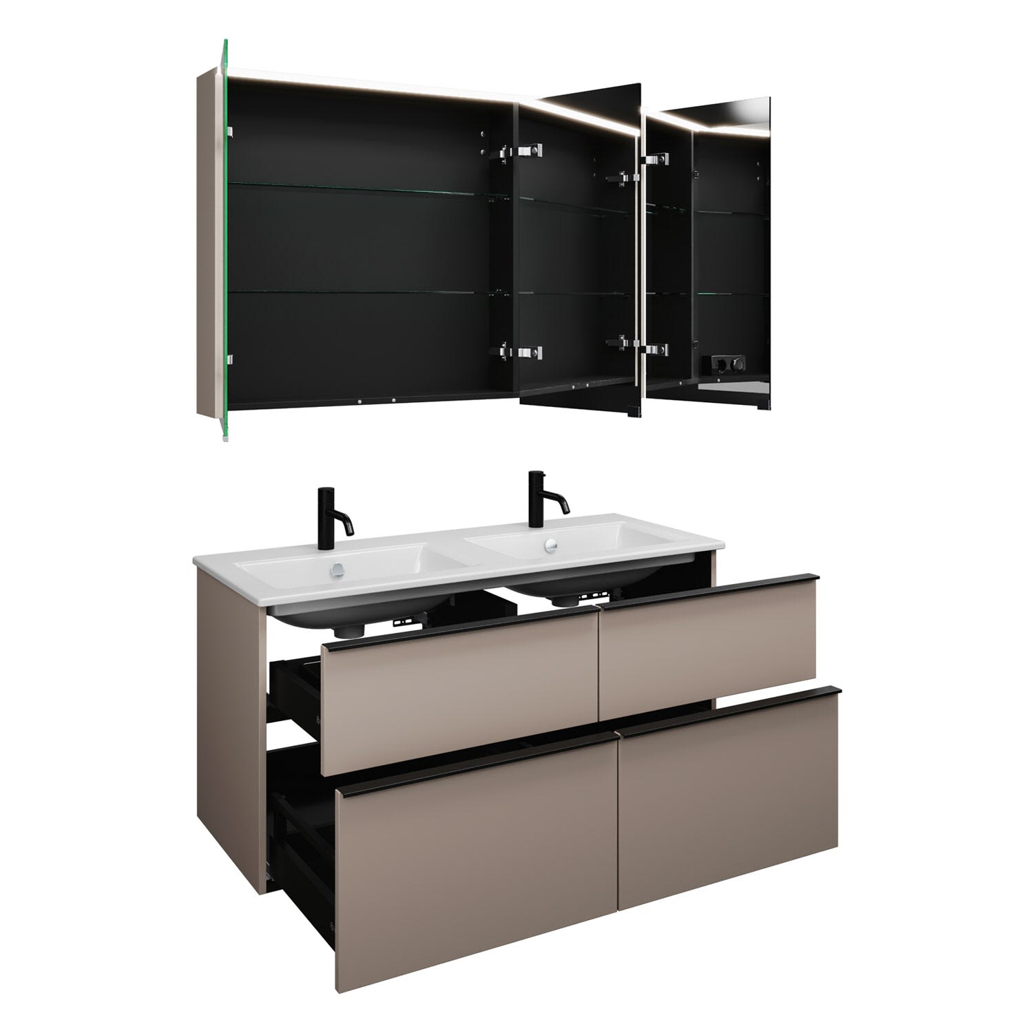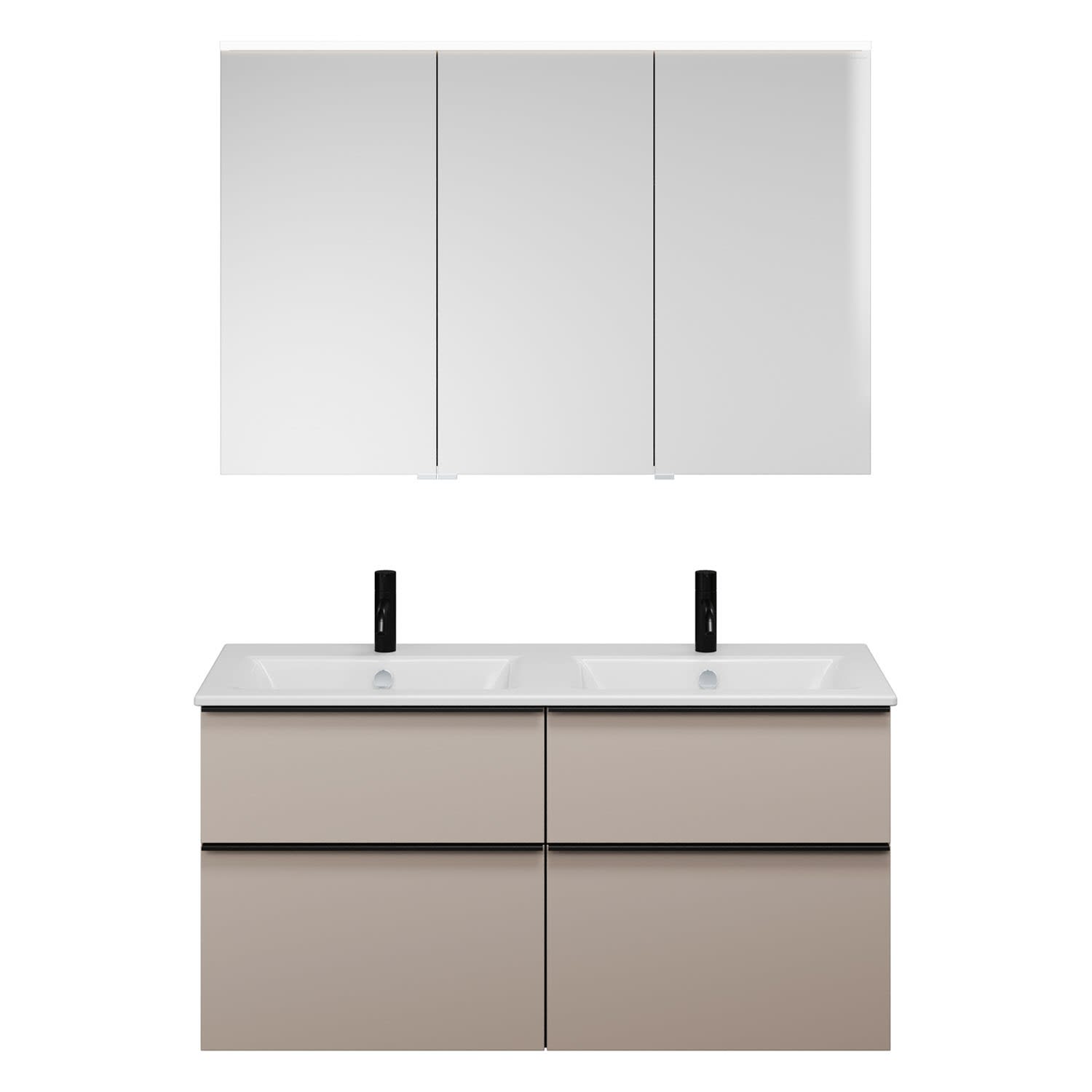 burgbad Eqio Badmöbel-Set 122 cm mit Keramik-Doppelwaschtisch Slim und Unterschrank mit Griffleiste G0252, mit Spiegelschrank