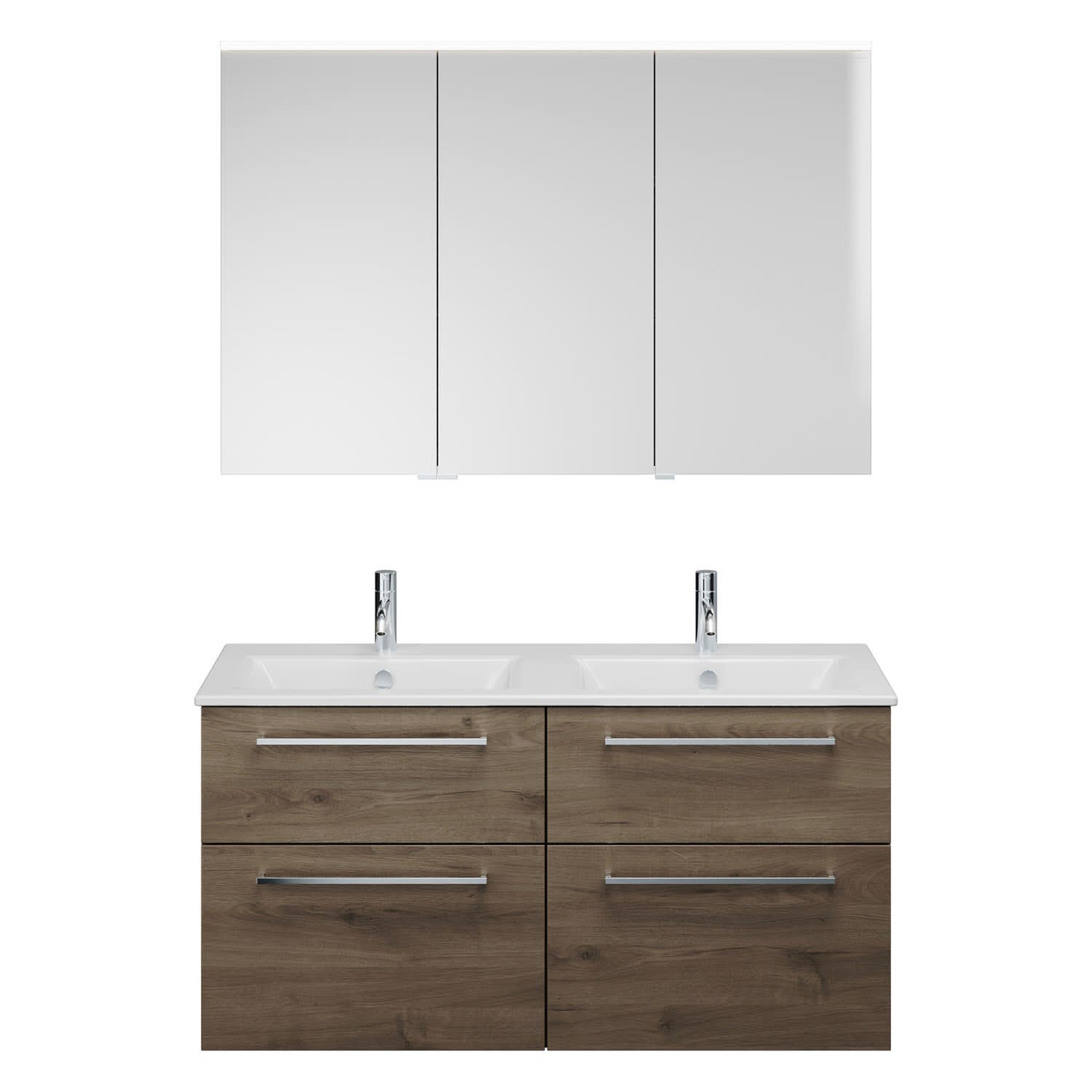 burgbad Eqio Badmöbel-Set 122 cm mit Keramik-Doppelwaschtisch Slim und Unterschrank mit Stangengriff P95, mit Spiegelschrank