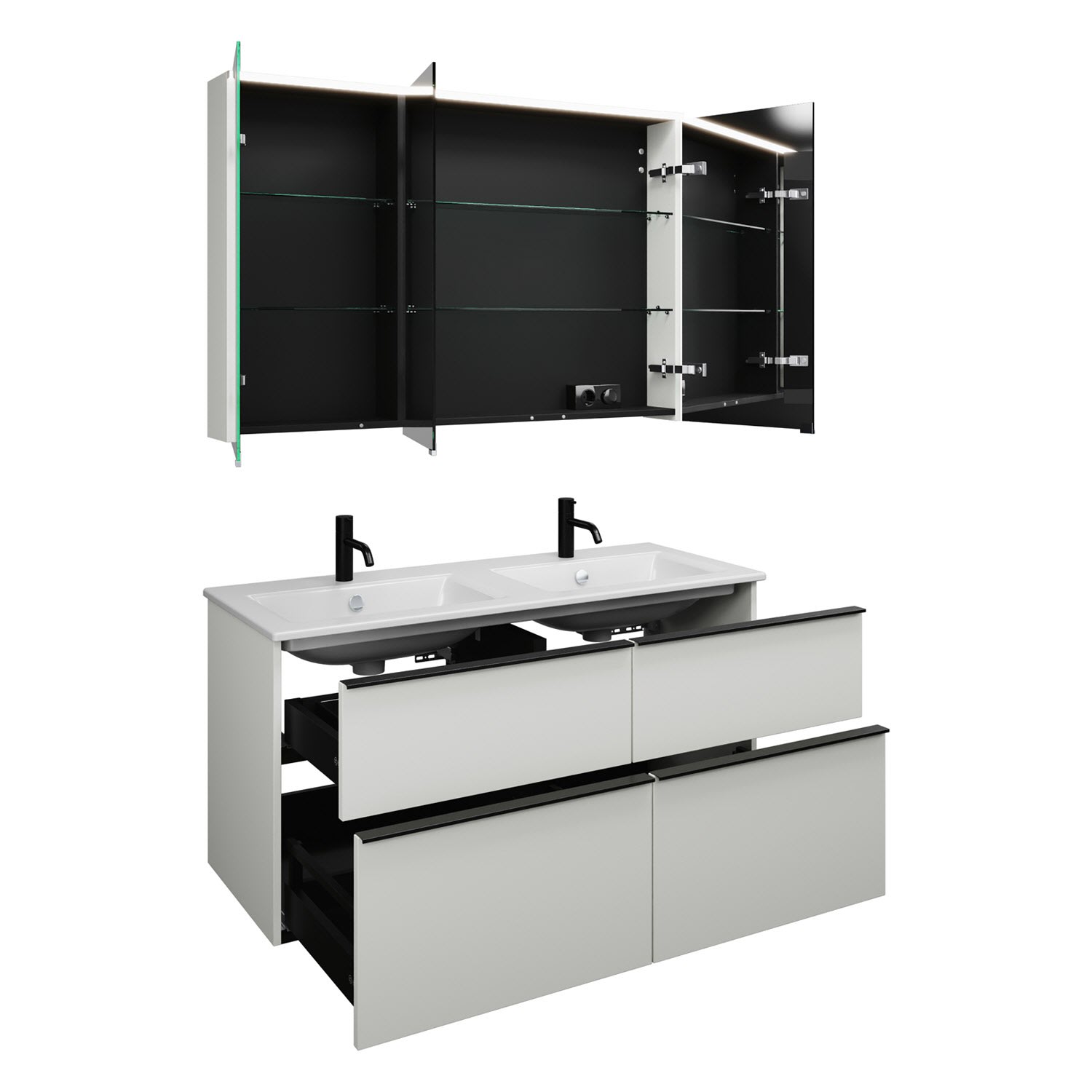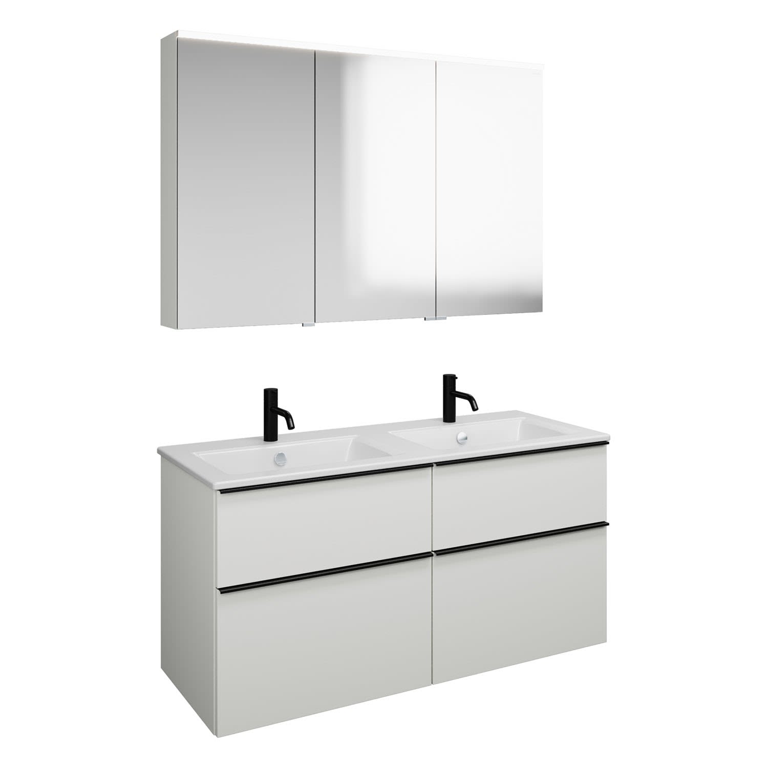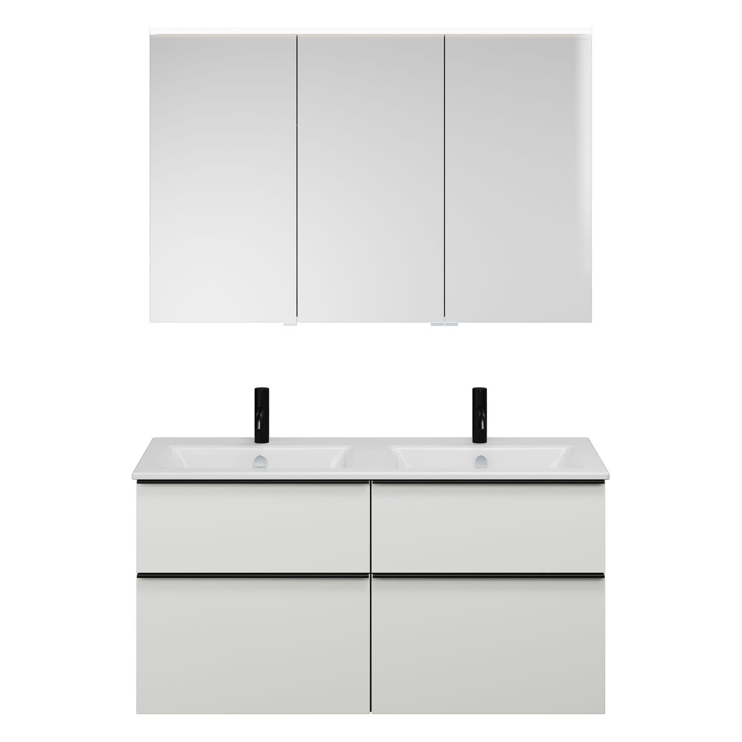 burgbad Eqio Badmöbel-Set 122 cm mit Keramik-Doppelwaschtisch Slim und Unterschrank mit Griffleiste G0252, mit Spiegelschrank