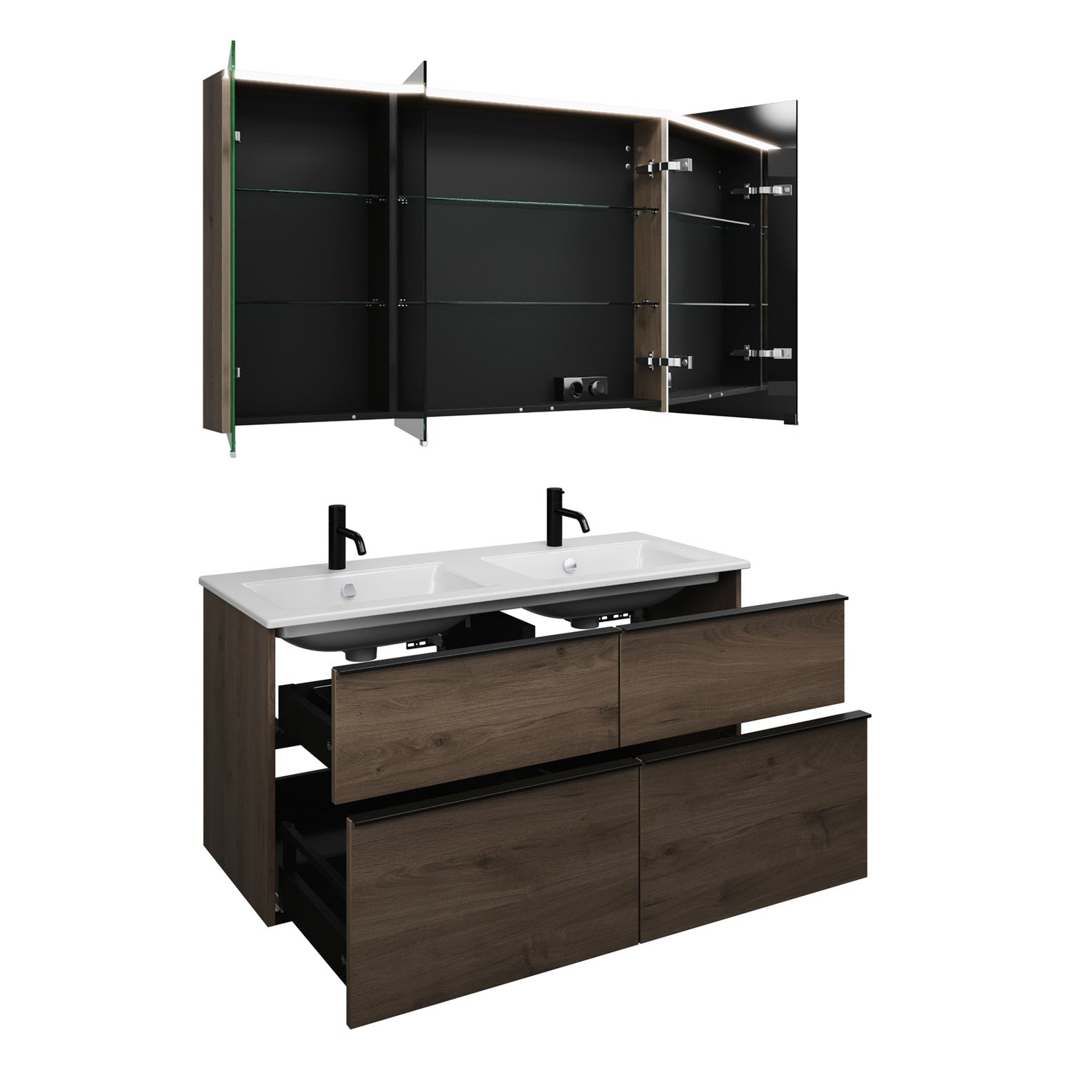 burgbad Eqio Badmöbel-Set 122 cm mit Keramik-Doppelwaschtisch Slim und Unterschrank mit Griffleiste G0252, mit Spiegelschrank