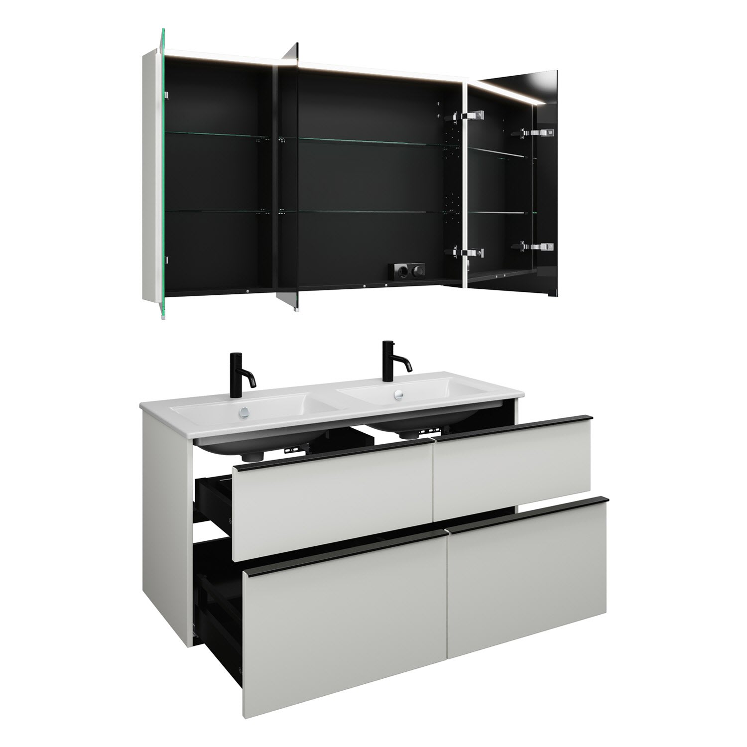 burgbad Eqio Badmöbel-Set 122 cm mit Keramik-Doppelwaschtisch Slim und Unterschrank mit Griffleiste G0252, mit Spiegelschrank