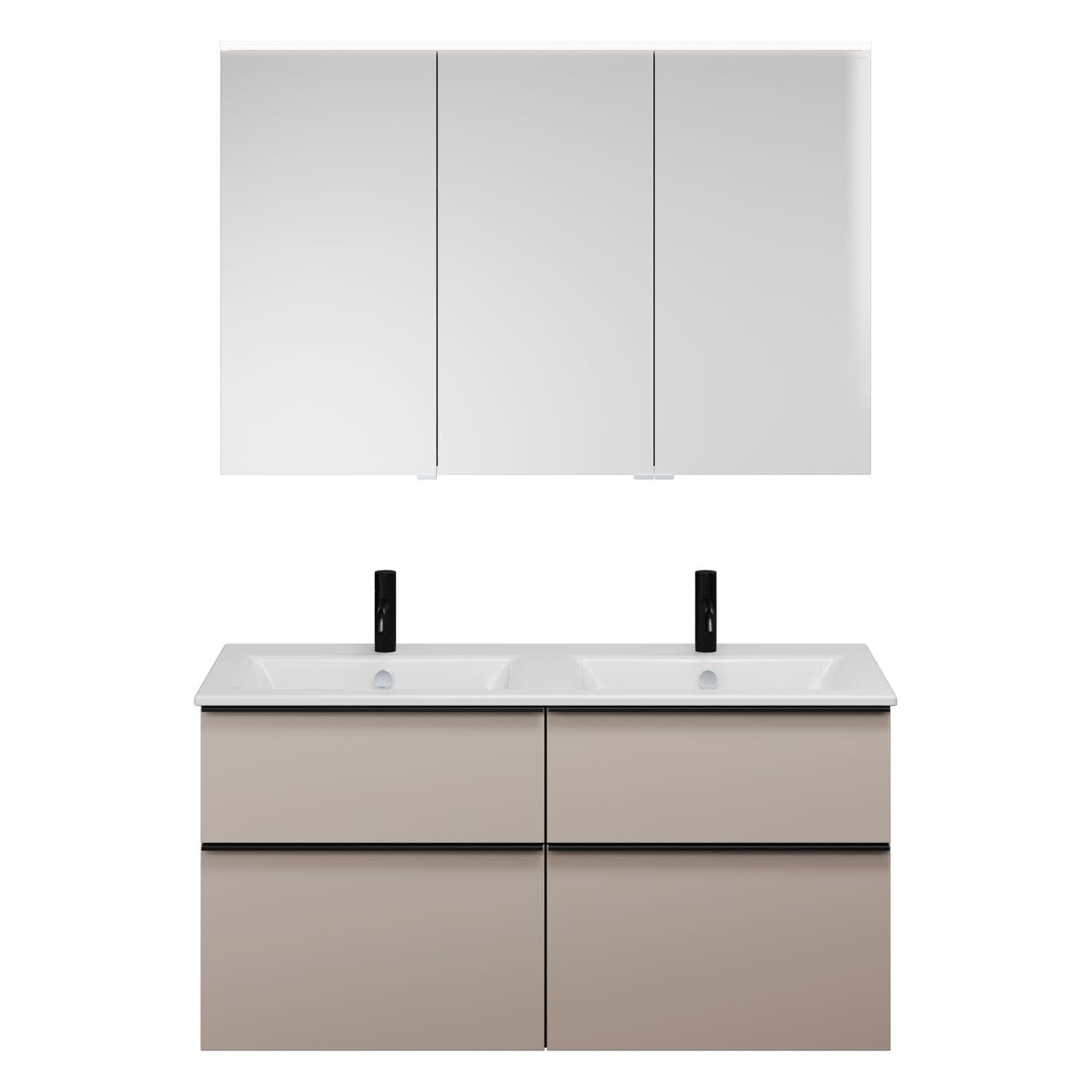 burgbad Eqio Badmöbel-Set 122 cm mit Keramik-Doppelwaschtisch Slim und Unterschrank mit Griffleiste G0252, mit Spiegelschrank