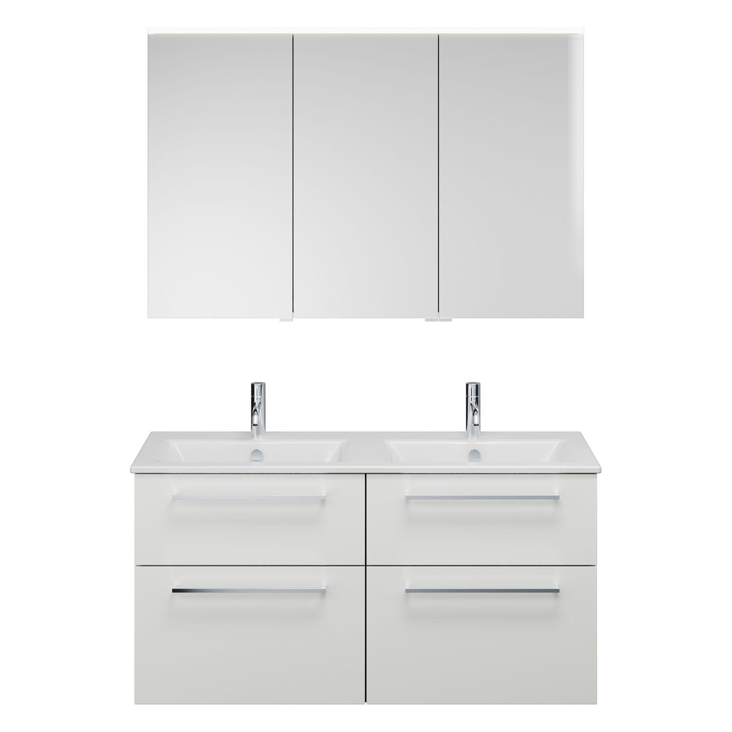burgbad Eqio Badmöbel-Set 122 cm mit Keramik-Doppelwaschtisch Slim und Unterschrank mit Stangengriff P95, mit Spiegelschrank