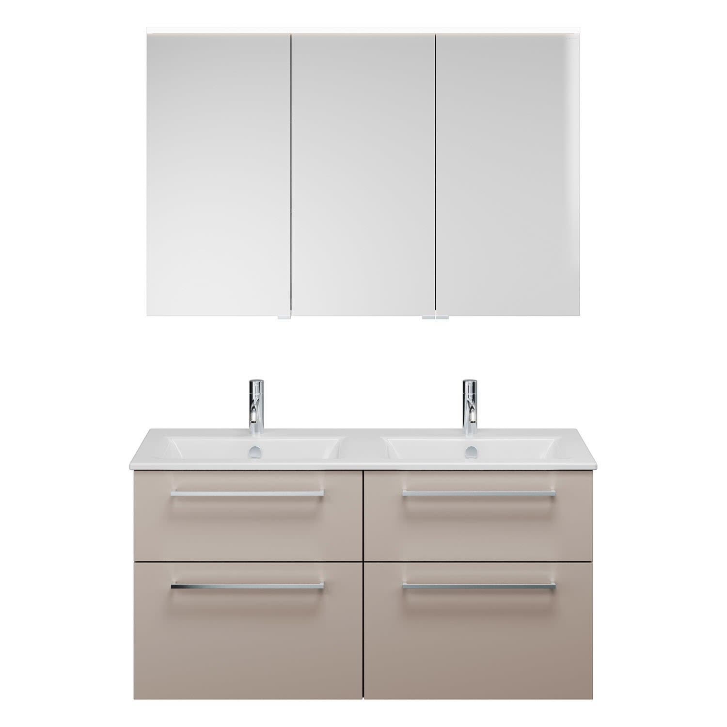 burgbad Eqio Badmöbel-Set 122 cm mit Keramik-Doppelwaschtisch Slim und Unterschrank mit Stangengriff P95, mit Spiegelschrank