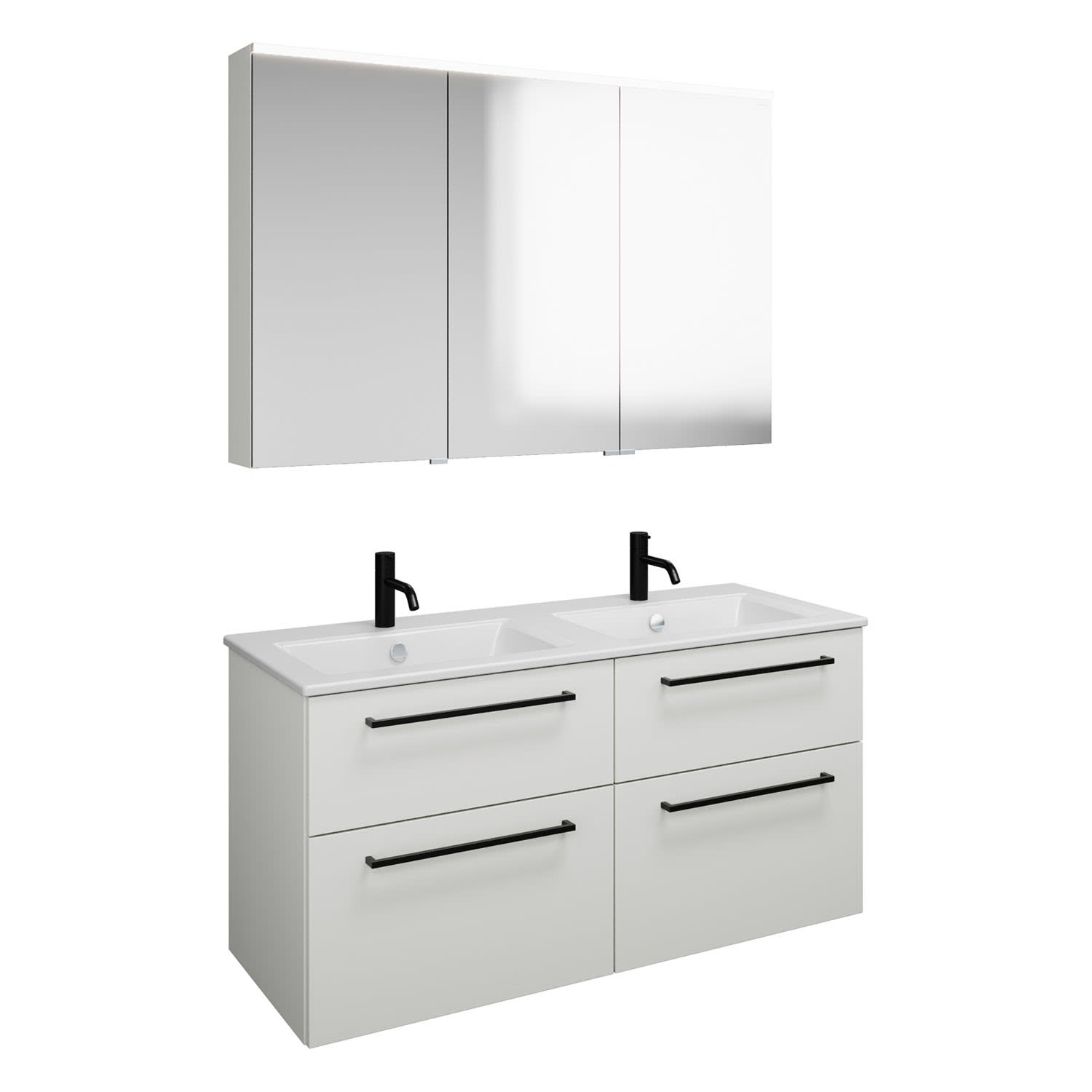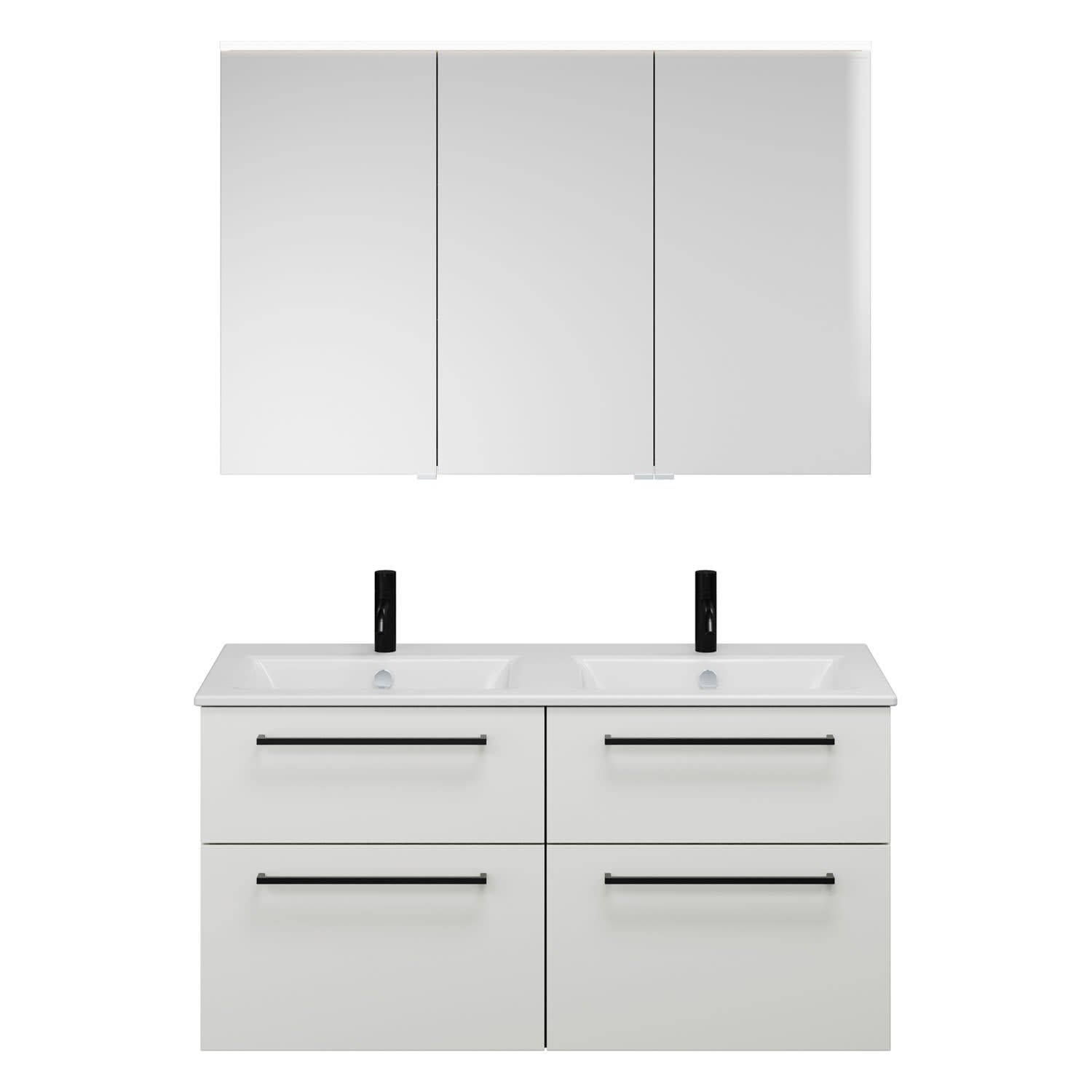 burgbad Eqio Badmöbel-Set 122 cm mit Keramik-Doppelwaschtisch Slim und Unterschrank mit Stangengriff G0234, mit Spiegelschrank